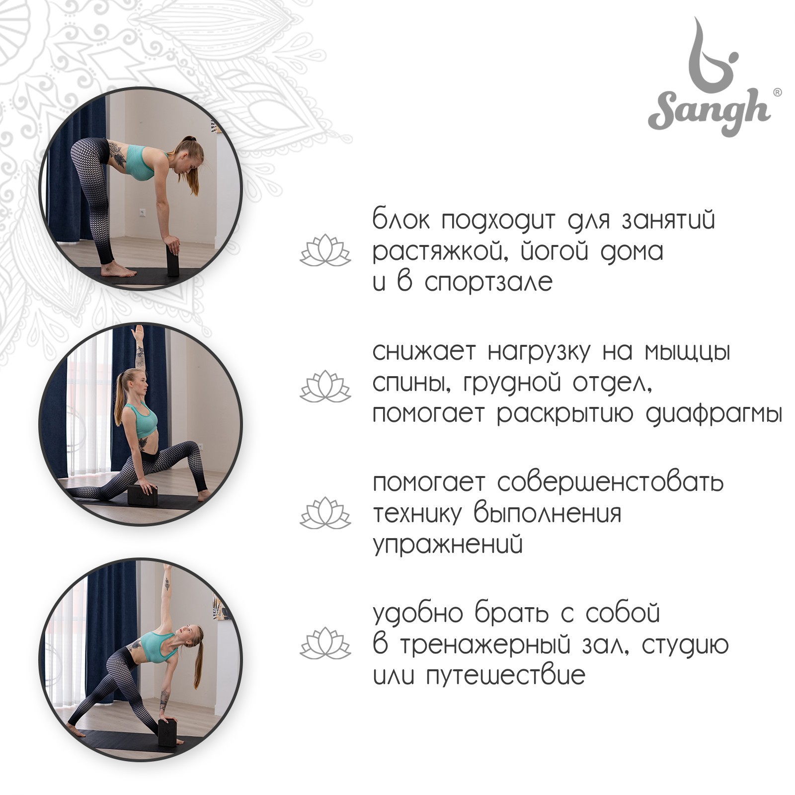 Блок для йоги Sangh, 23х15х8 см, цвет чёрный