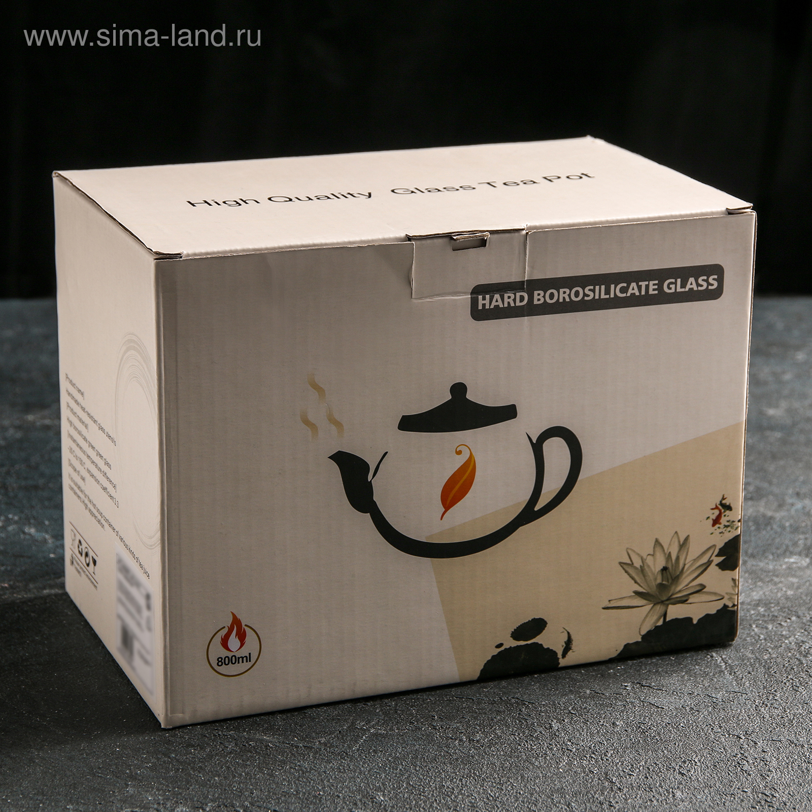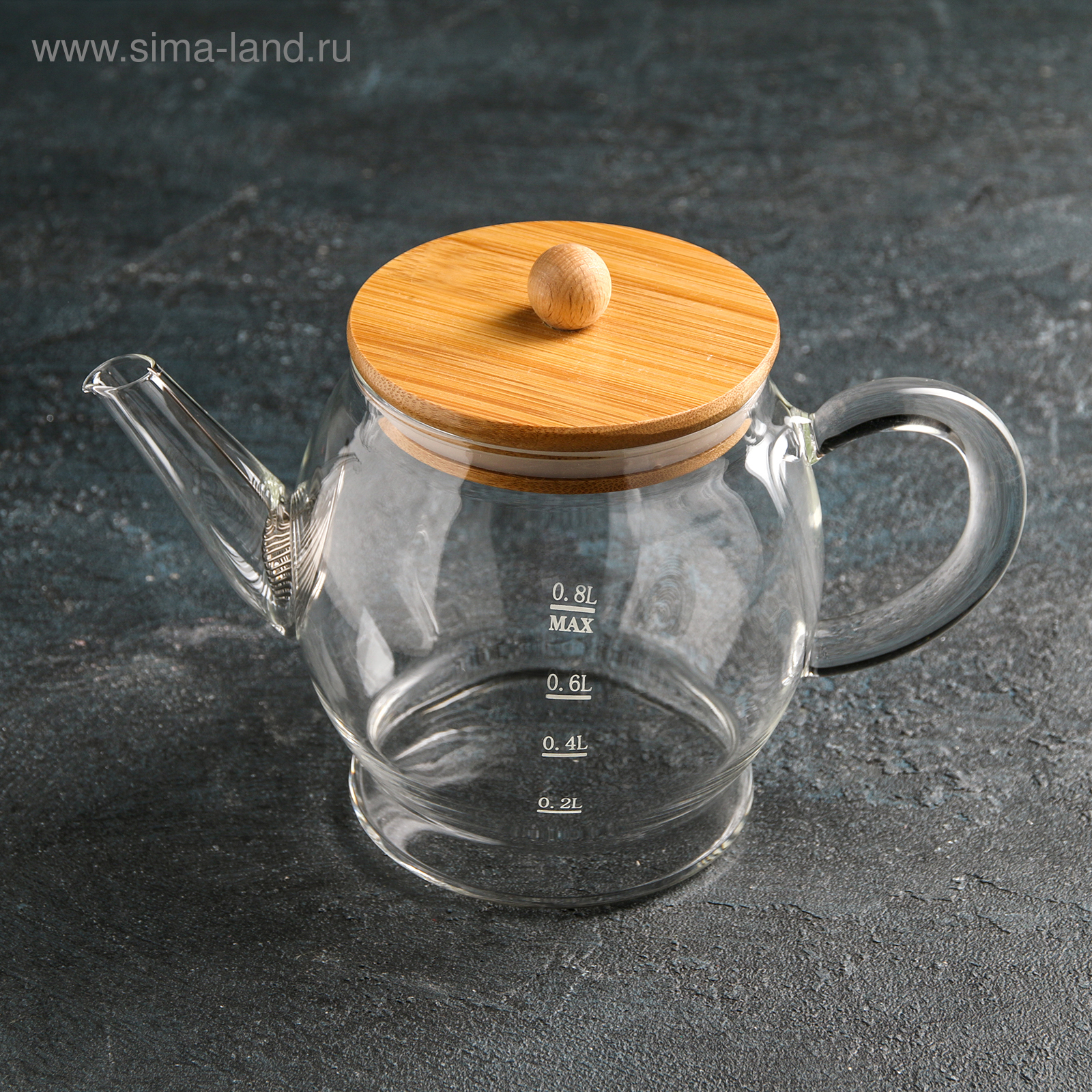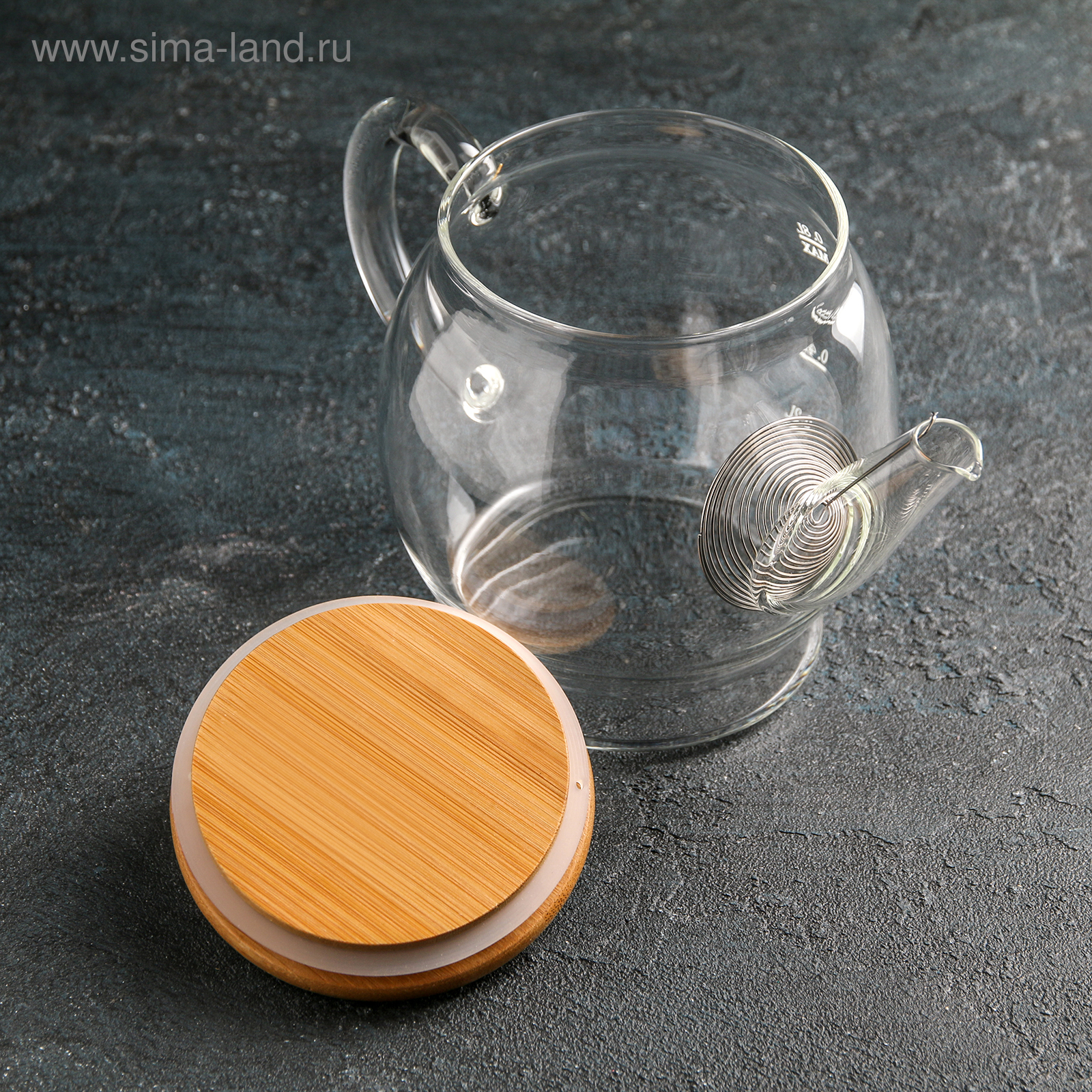 Чайник стеклянный заварочный с бамбуковой крышкой и металлическим фильтром «эко. бабл», 800 мл, 22x12,5x15 см