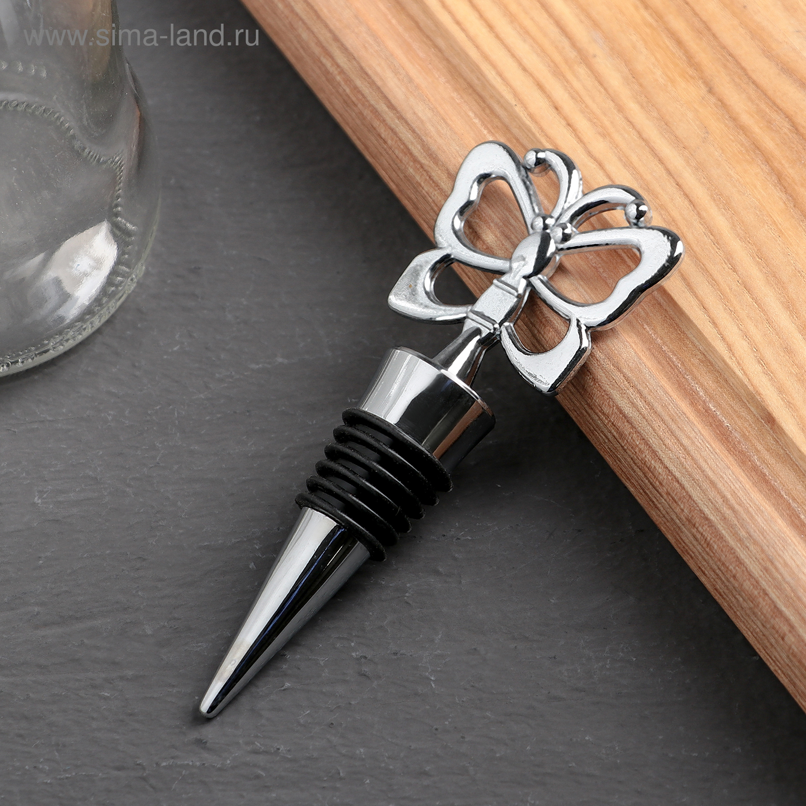 Пробка для бутылки «бабочка», 10,5 см. Как только вы открываете вино, из-за контакта с воздухом начинается его неизбежное интенсивное окисление. С помощью данного аксессуара вы сможете сохранить вкус и аромат праздничного напитка как можно дольше. Благодаря необычому дизайну пробка станет не только функциональным кухонным инструментом, но и ярким декоративным элементом сервировки стола. Преимущества изделия: Благодаря удобной форме, пробка подходит для разных видов бутылок. Крышка плотно прилегает к горлышку ёмкости, исключая выдыхание алкогольного напитка. За счёт свойств материала изделие не впитывает запахи и не окисляется. Цвет: Серебристый parts count: 0 tnved: 8309909000 Материал: Цинковый сплав Материал: Сталь Материал: Резина Вид пробки: Декоративная  развернуть описание ▼