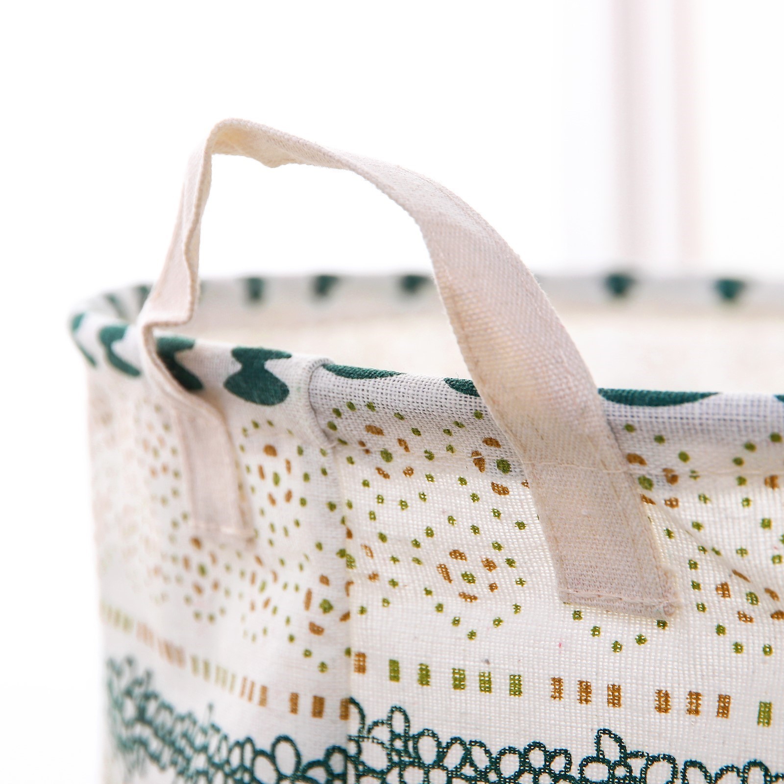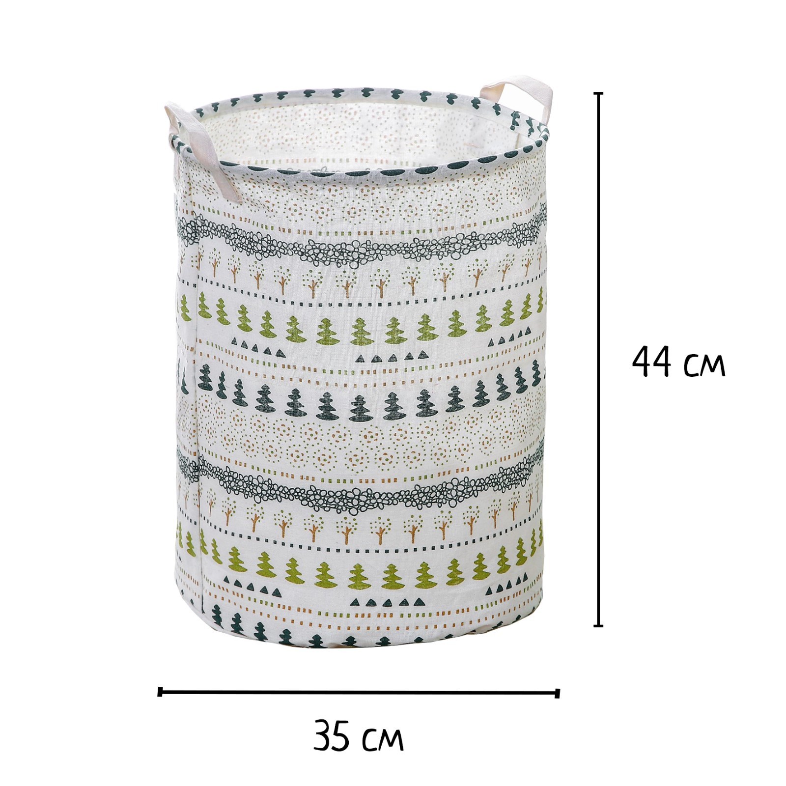 Корзина для игрушек "лес" 35x35x44 см. Цвет: Зелёный Цвет: Белый Форма: Цилиндрическая Ширина, см: 35 Высота, см: 44 Глубина, см: 44 parts count: 0 Тематика: Цветочно-растительная Крышка: Нет Материал: Текстиль Особенности: С ручками Основной материал: Текстиль Форма: Круг, шар, цилиндр  развернуть описание ▼