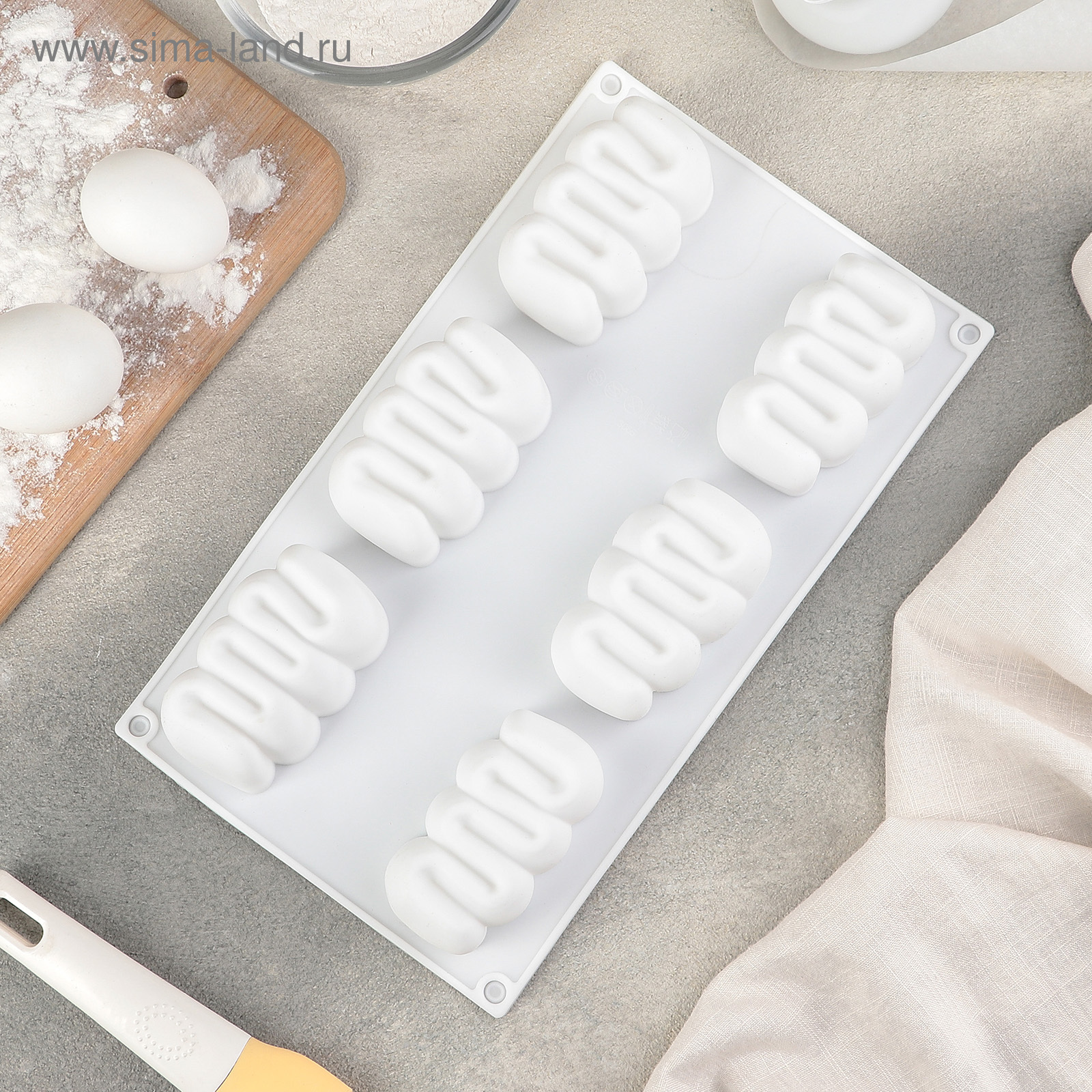 Форма для муссовых десертов и выпечки доляна «ванилла», 29,5x17x3,5 см, 6 ячеек (8x4,5 см), цвет белый. Муссовый десерт — новое направление в кондитерском искусстве, которое многим пришлось по вкусу. Для приготовления вам пригодится этот незаменимый помощник каждой хозяйки. Изделие очень прочное и гибкое — готовый десерт легко извлекается из формы. Он будет выглядеть красиво и аккуратно, не пригорит и не прилипнет к стенкам, лакомства выпекаются быстро и легко. Рекомендации к применению Перед первым использованием необходимо вымыть форму под тёплой водой. Поставьте изделие на горизонтальную поверхность, чтобы мусс или тесто распределились равномерно. После выпечки дайте форме полностью остыть, так десерт будет легче извлечь. Очистить изделие просто — достаточно промыть его в тёплой воде с добавлением моющего средства и просушить. Готовьте в удовольствие с силиконовой формой «Ванилла»! Большой выбор форм для муссовых десертов вы найдёте в специальном разделе. Цвет: Белый parts count: 0 Фасовка, шт.: 1 Количество ячеек: 6 Крышка: Нет Материал: Силикон Тип покрытия: Без покрытия Ячейки: Да Наличие палочек для форм: Нет Тип формы: Для муссовых десертов Разъёмная форма: Нет Для детей до 3 лет: Нет Можно мыть в посудомоечной машине: Нет Форма: Прямоугольник  развернуть описание ▼
