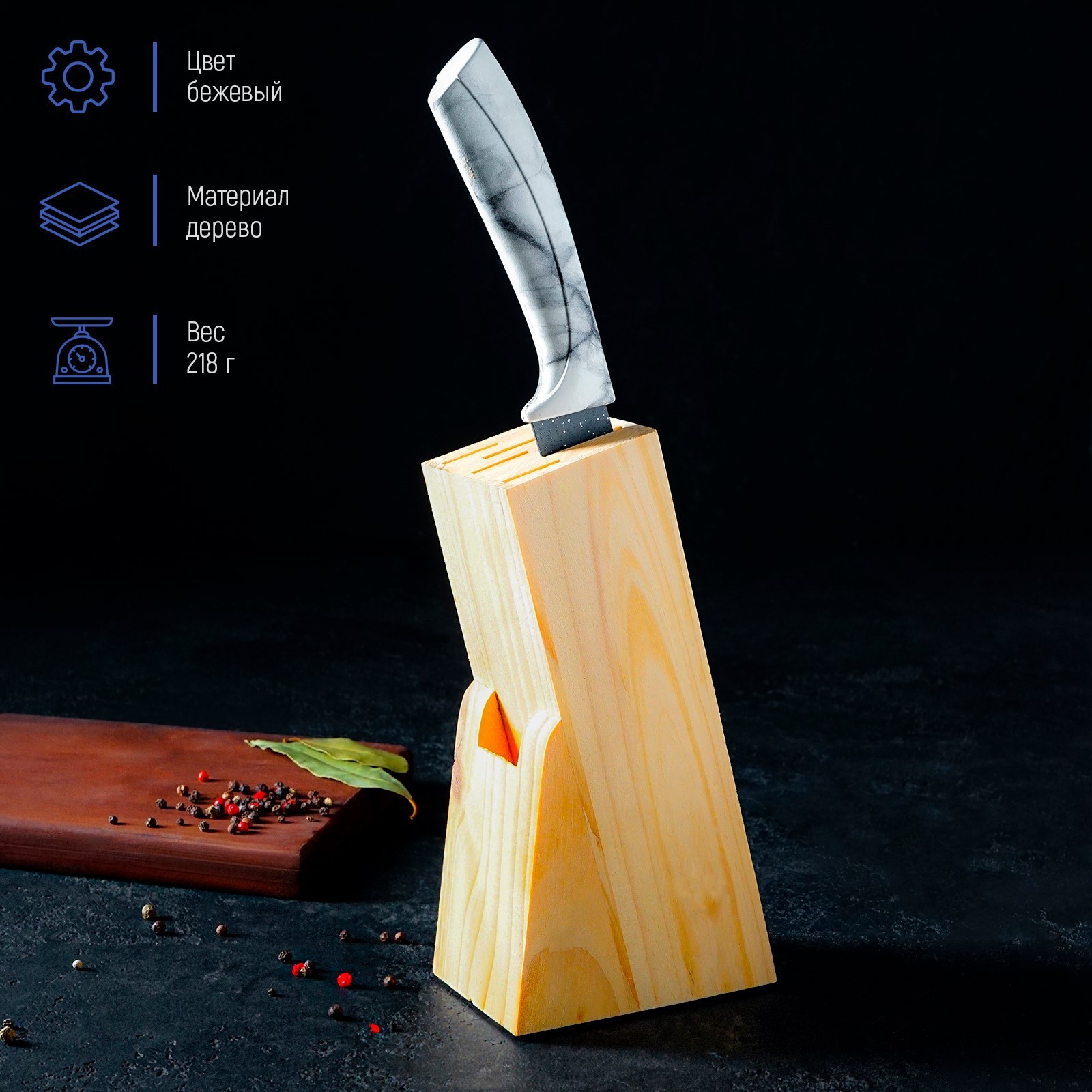 Подставка для ножей доляна, 11x6x20 см, дерево