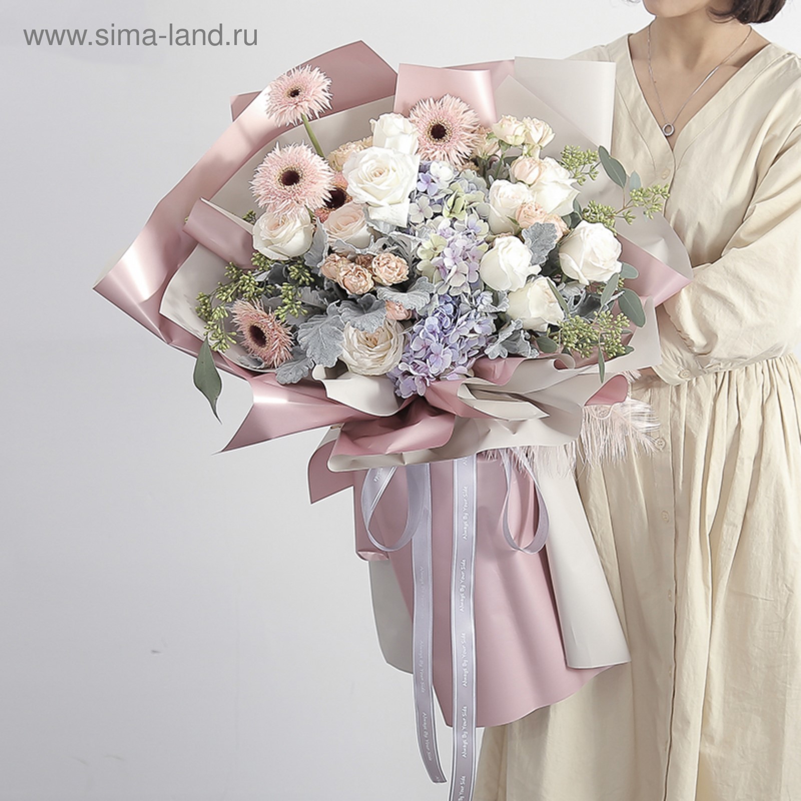 Пленка матовая для цветов, двухсторонняя, «зефир», тёмно розовый, 57 см 5 м