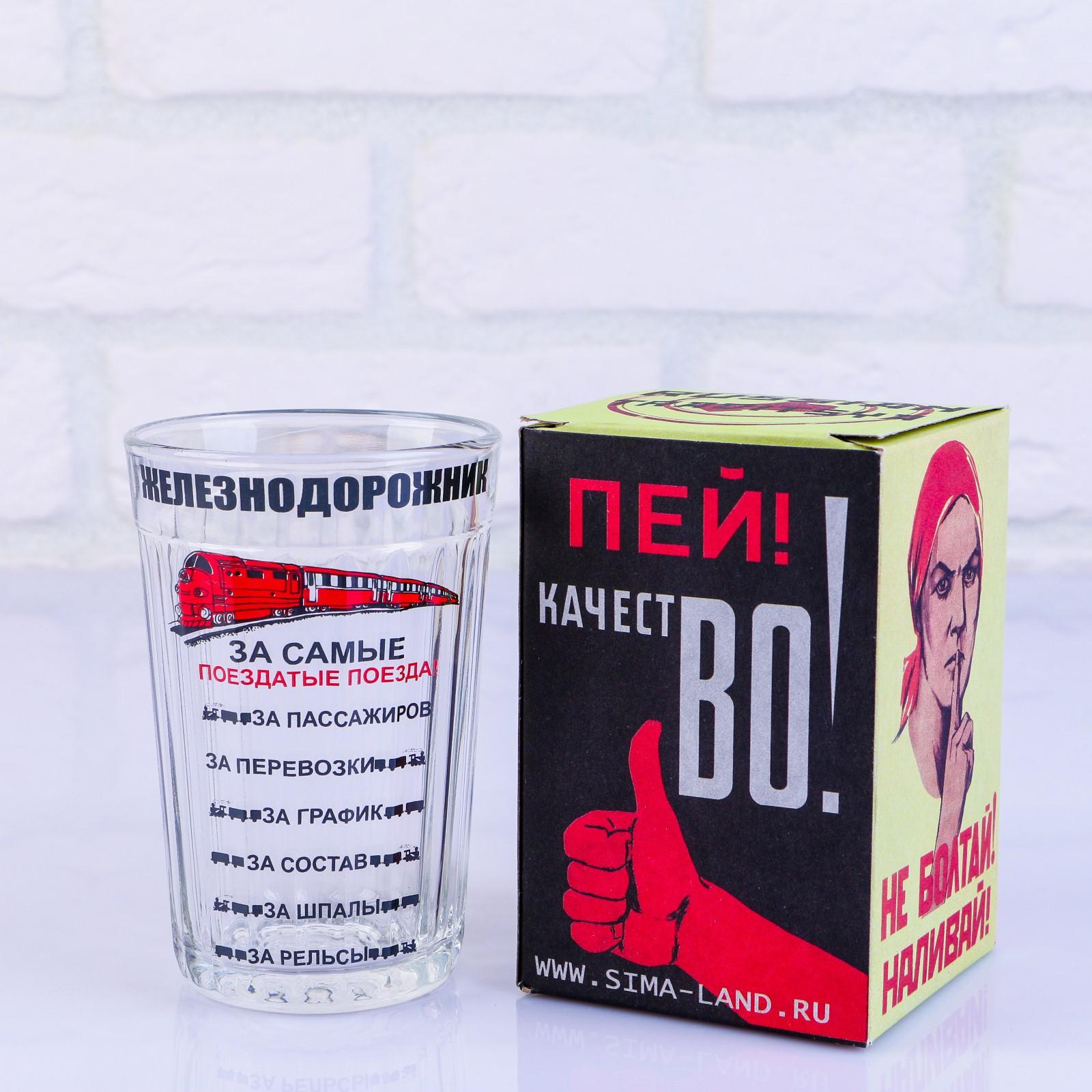 Стакан гранёный в подарочной упаковке "железнодорожнику" 250 мл