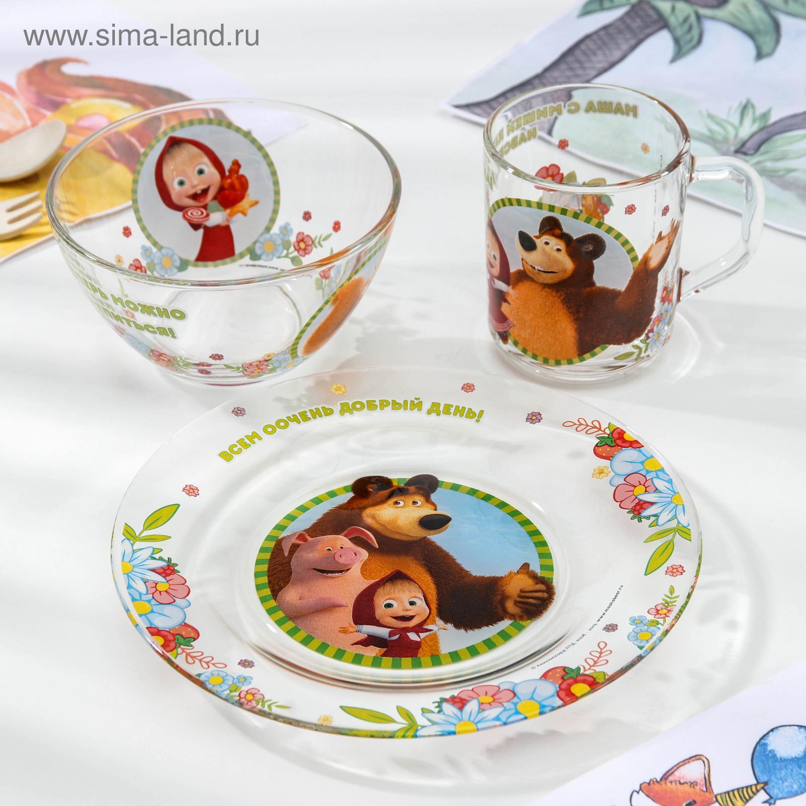 Набор посуды детский «маша и медведь. добрый день», 3 предмета: кружка 250 мл, салатник D=12,8 см, тарелка D=19,5 см
