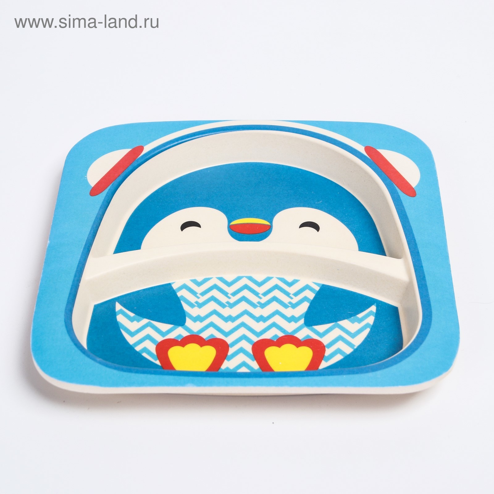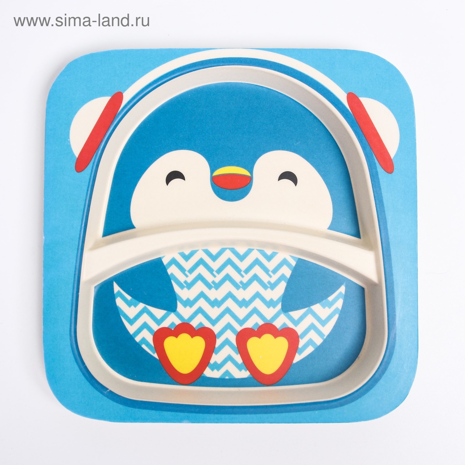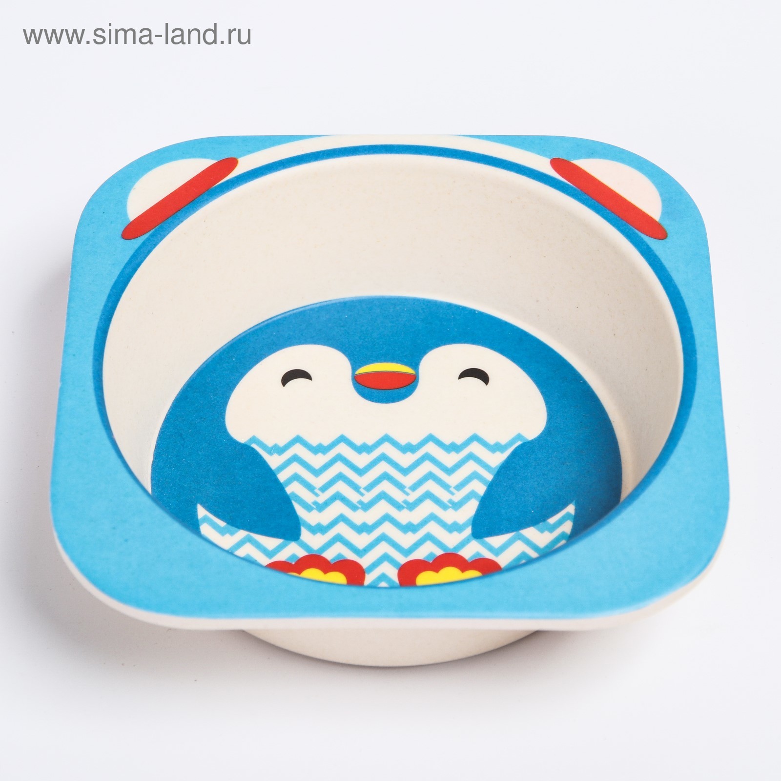 Набор детской бамбуковой посуды «пингвин», тарелка, миска, стакан, приборы, 5 предметов