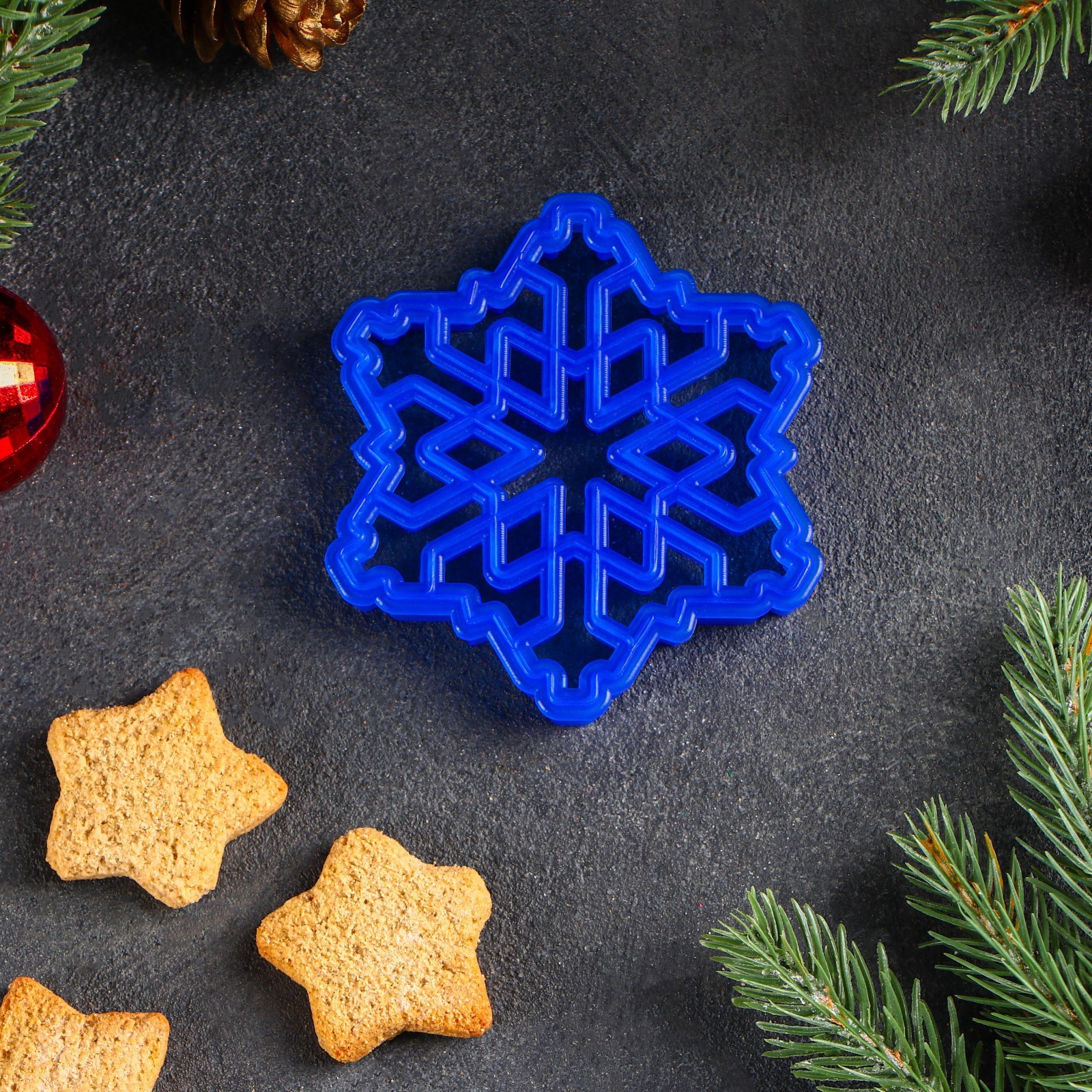 Форма для печенья «снежинка», вырубка, штамп, 9x9 см, цвет синий