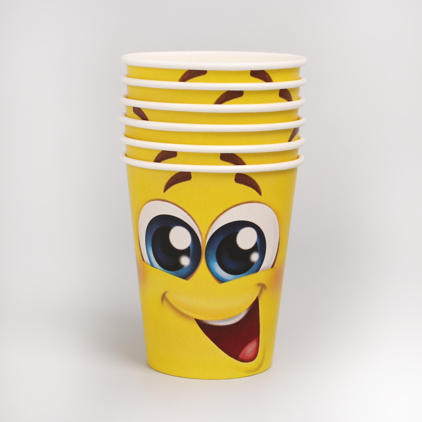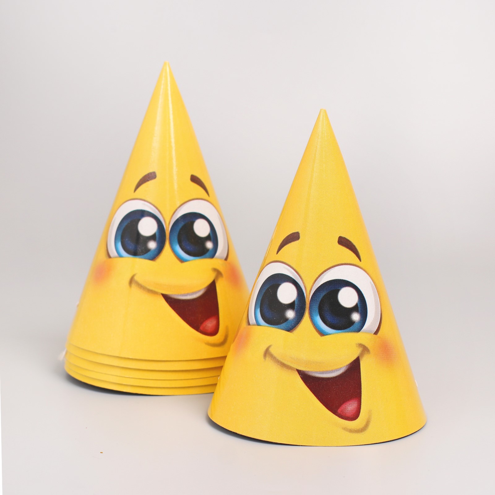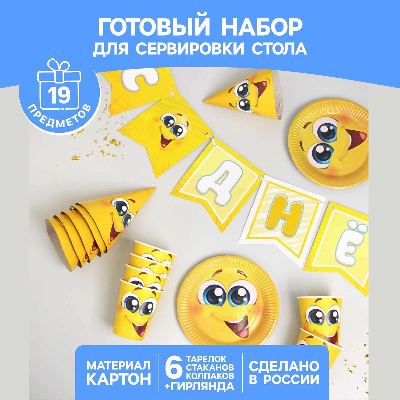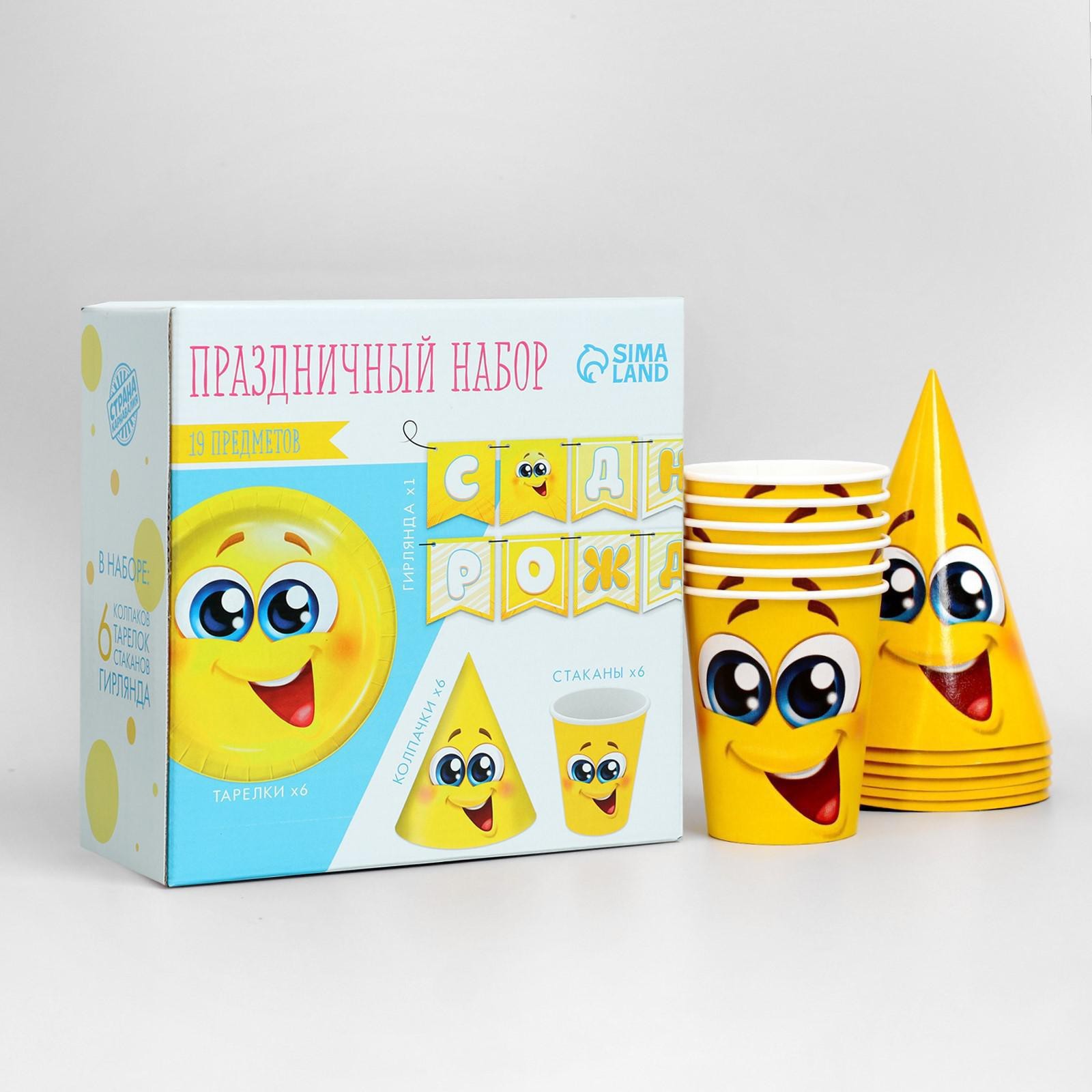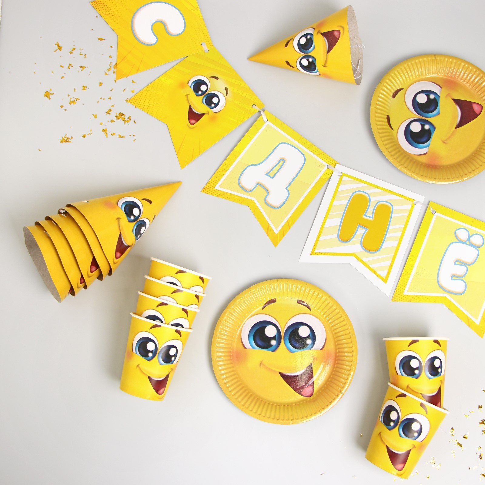 Набор бумажной посуды одноразовый смайлы с улыбкой», 6 тарелок , 1 гирлянда , 6 стаканов, 6 колпаков