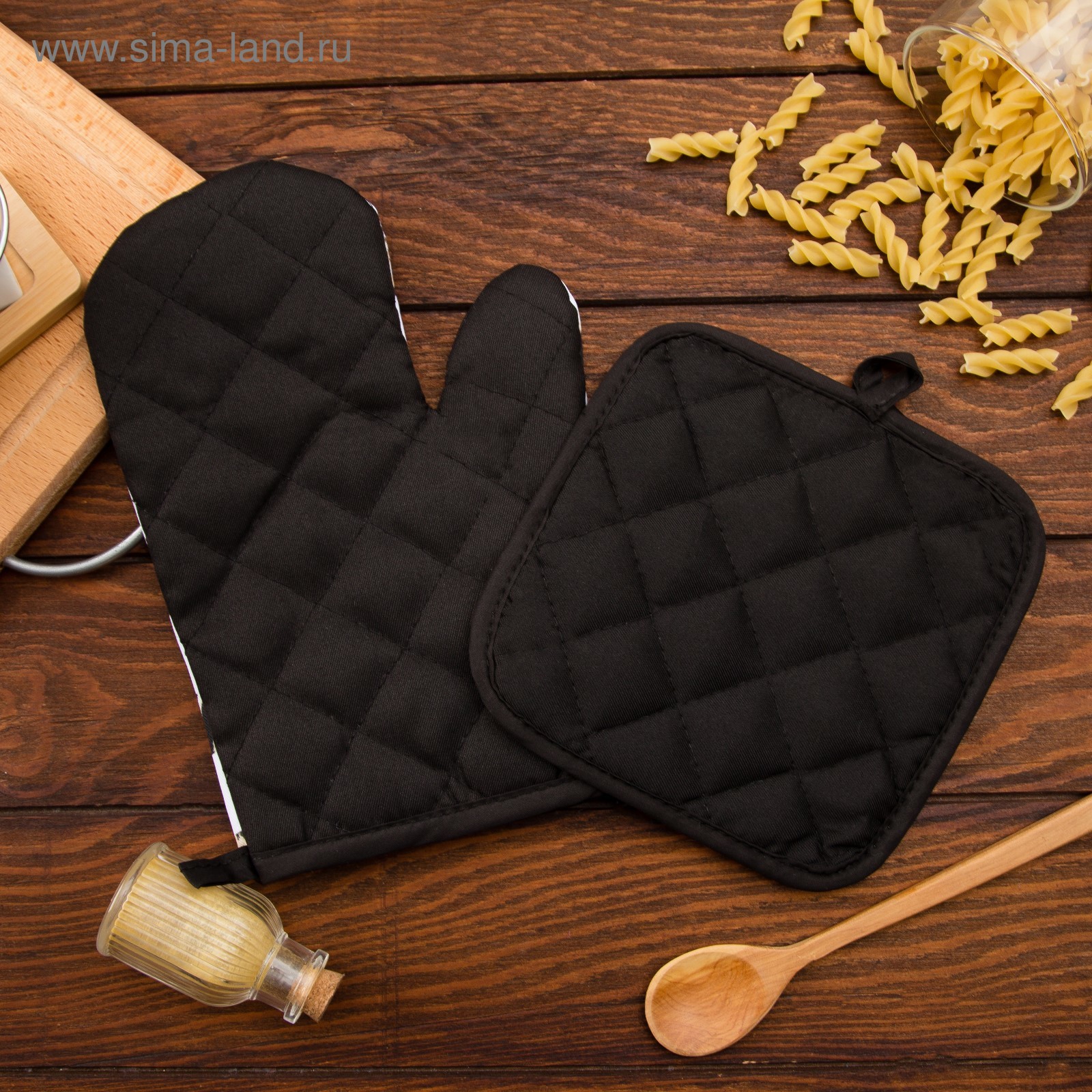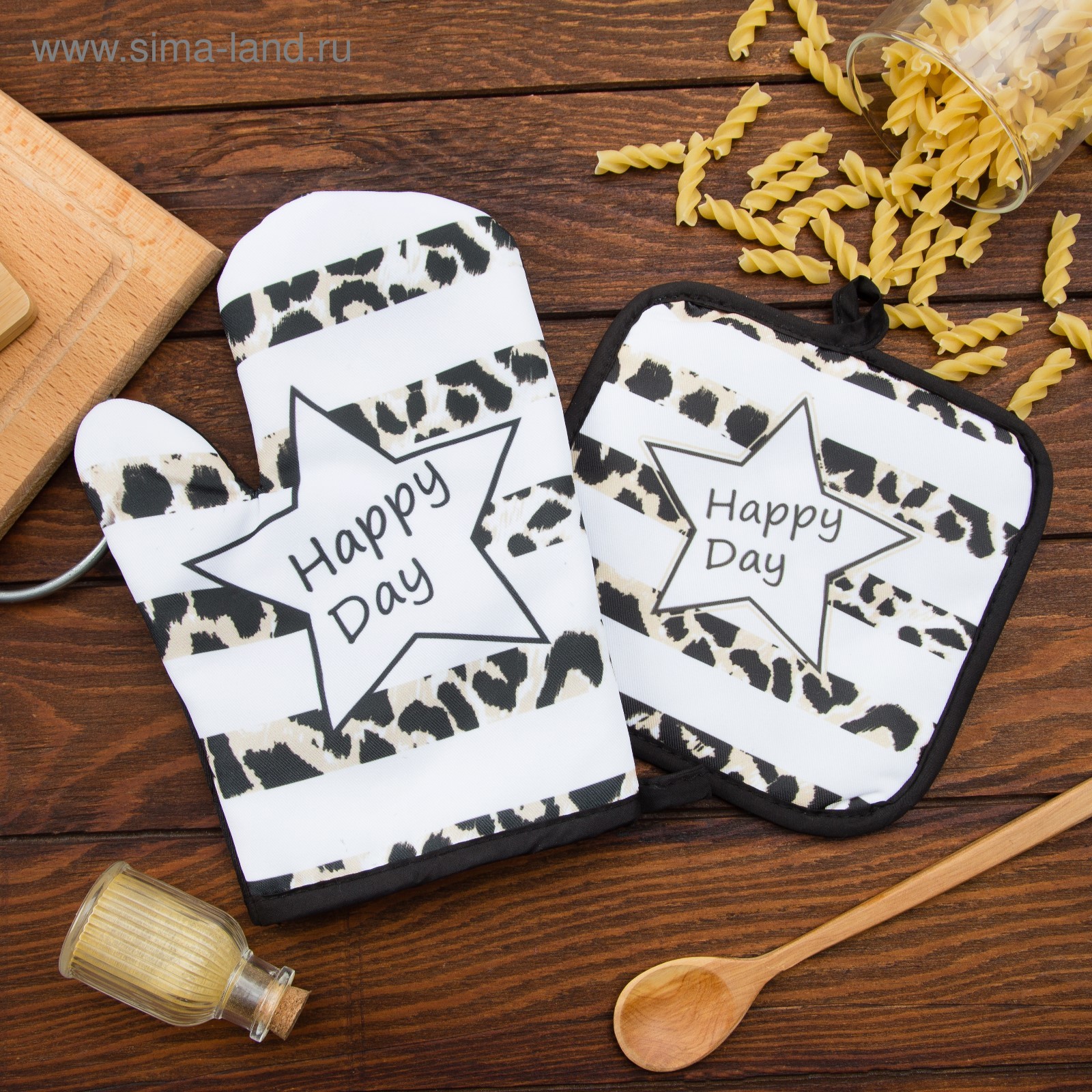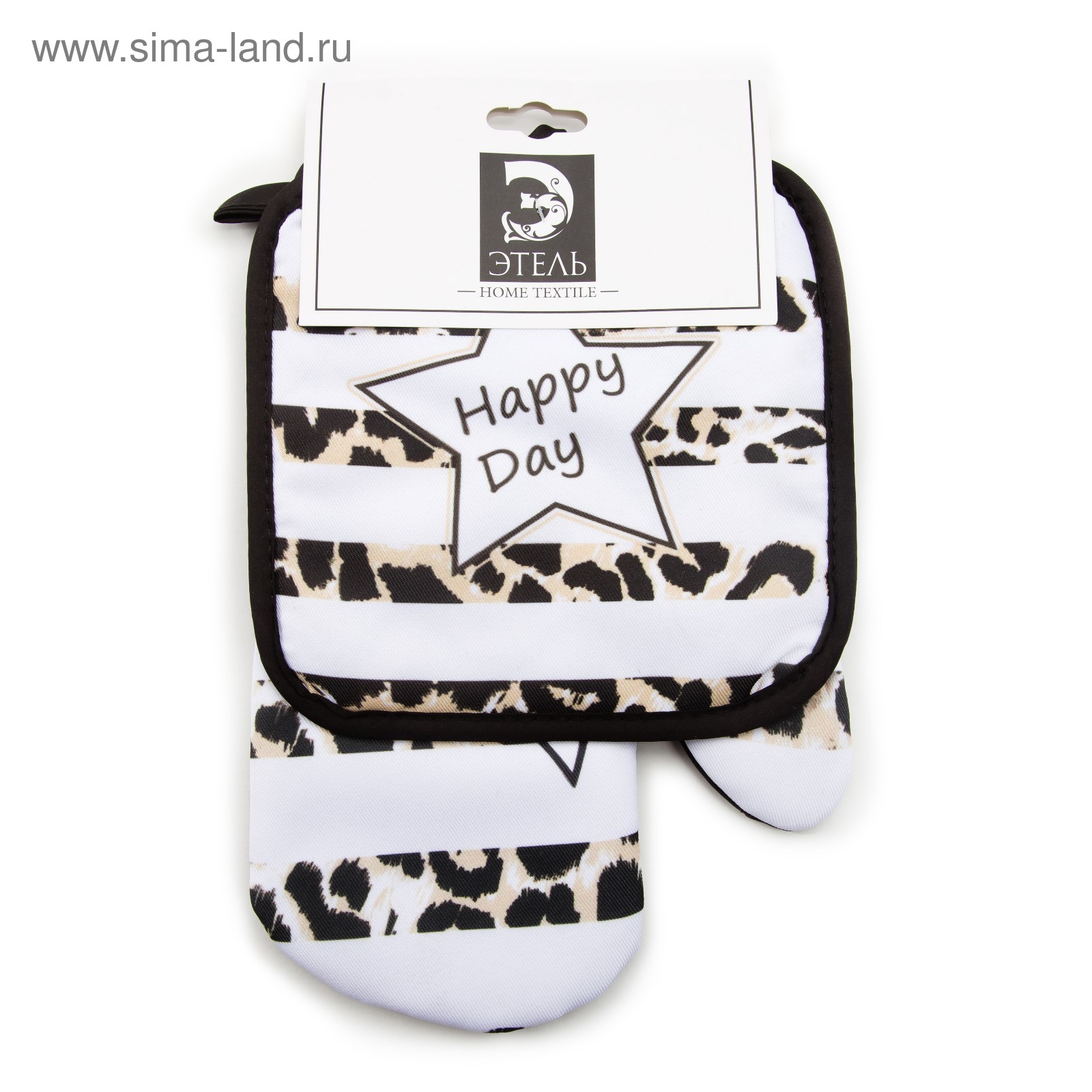 Кухонный набор (2 предмета) этель Lovelife Happy, прихватка 17х17 см, рукавичка 26х16 см, 100% п/э