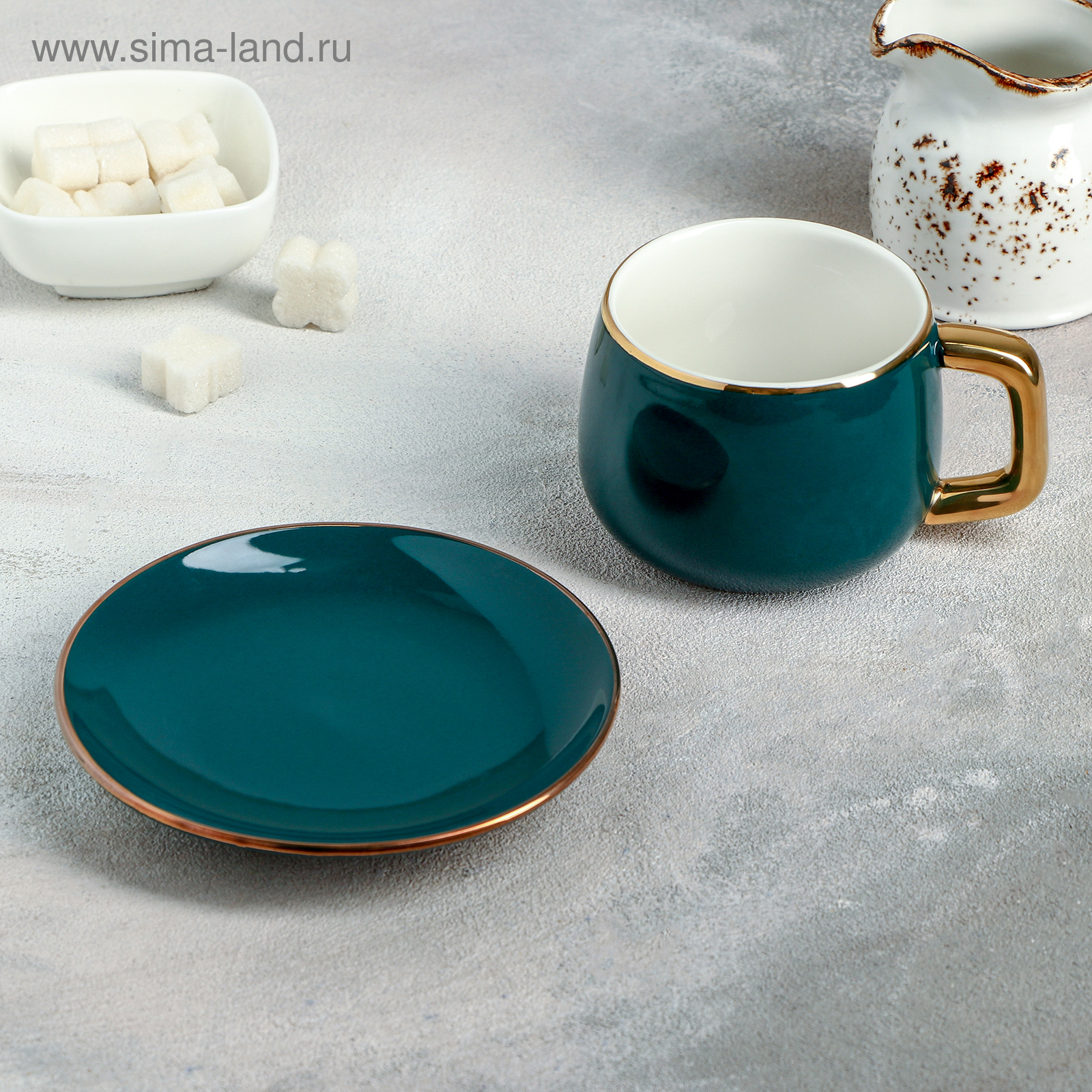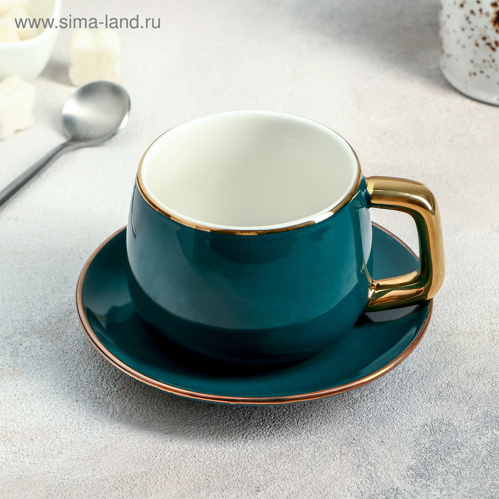 Чайная пара керамическая «изумруд», 2 предмета: чашка 300 мл, блюдце D=13,5 см