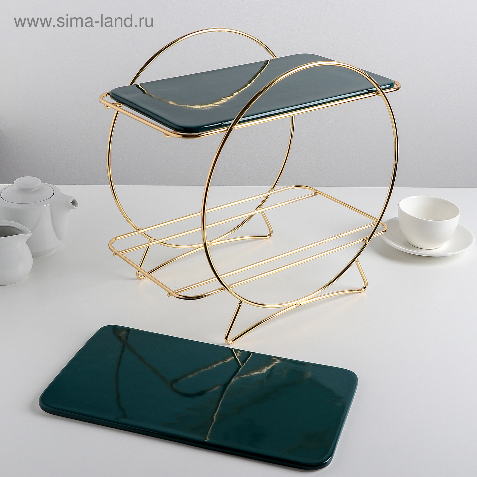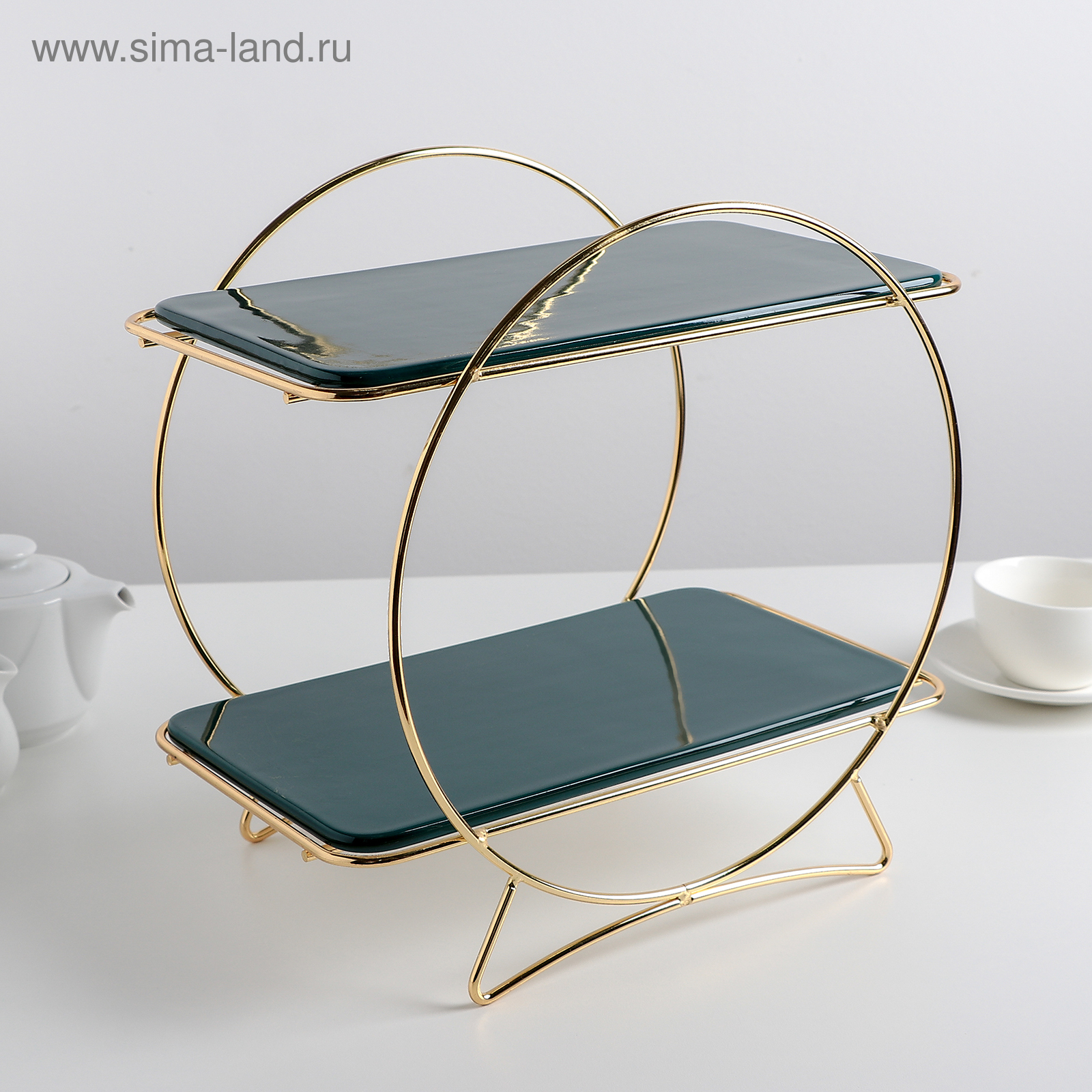 Блюдо керамическое 2-х ярусное «изумруд», 32x19x31 см, цвет изумрудный