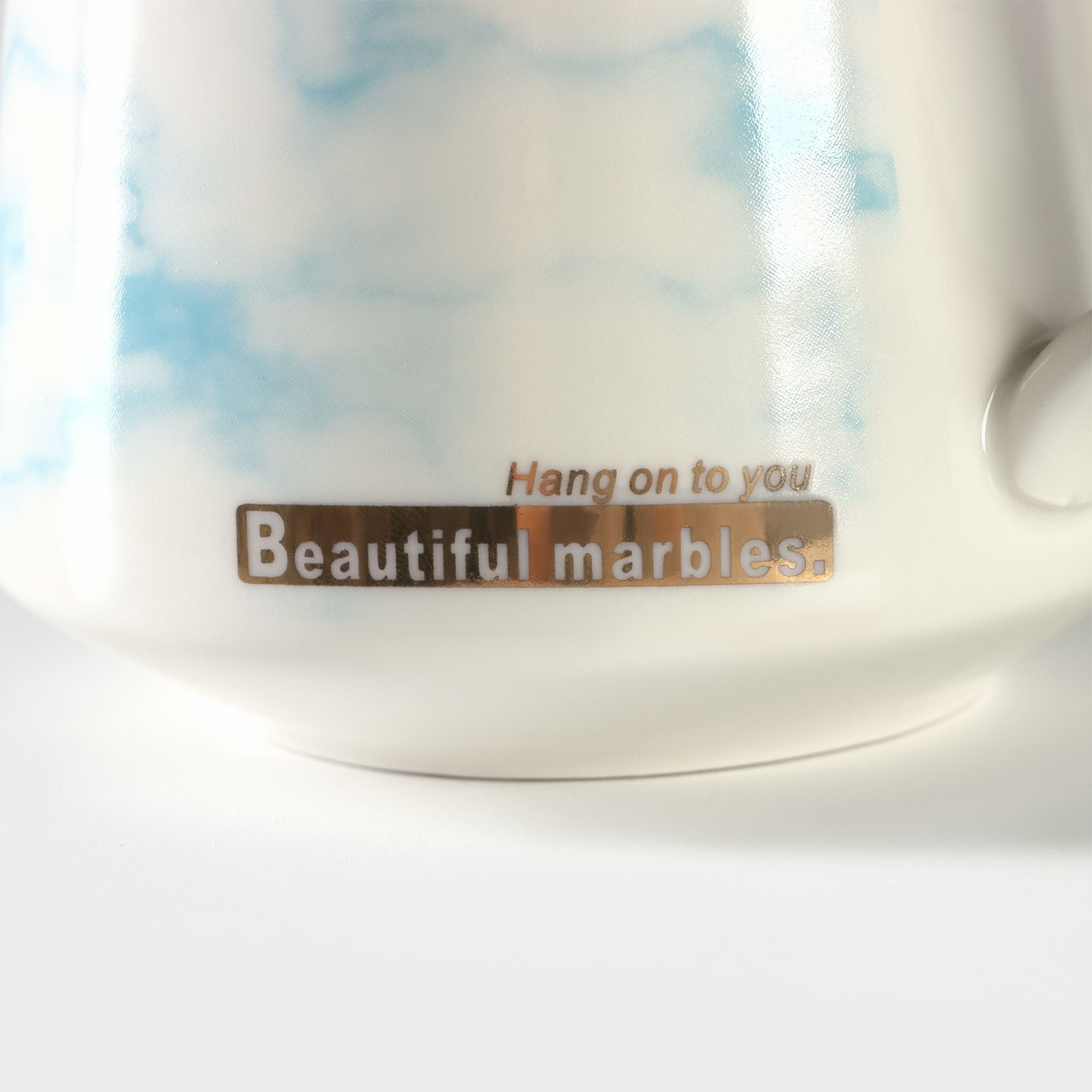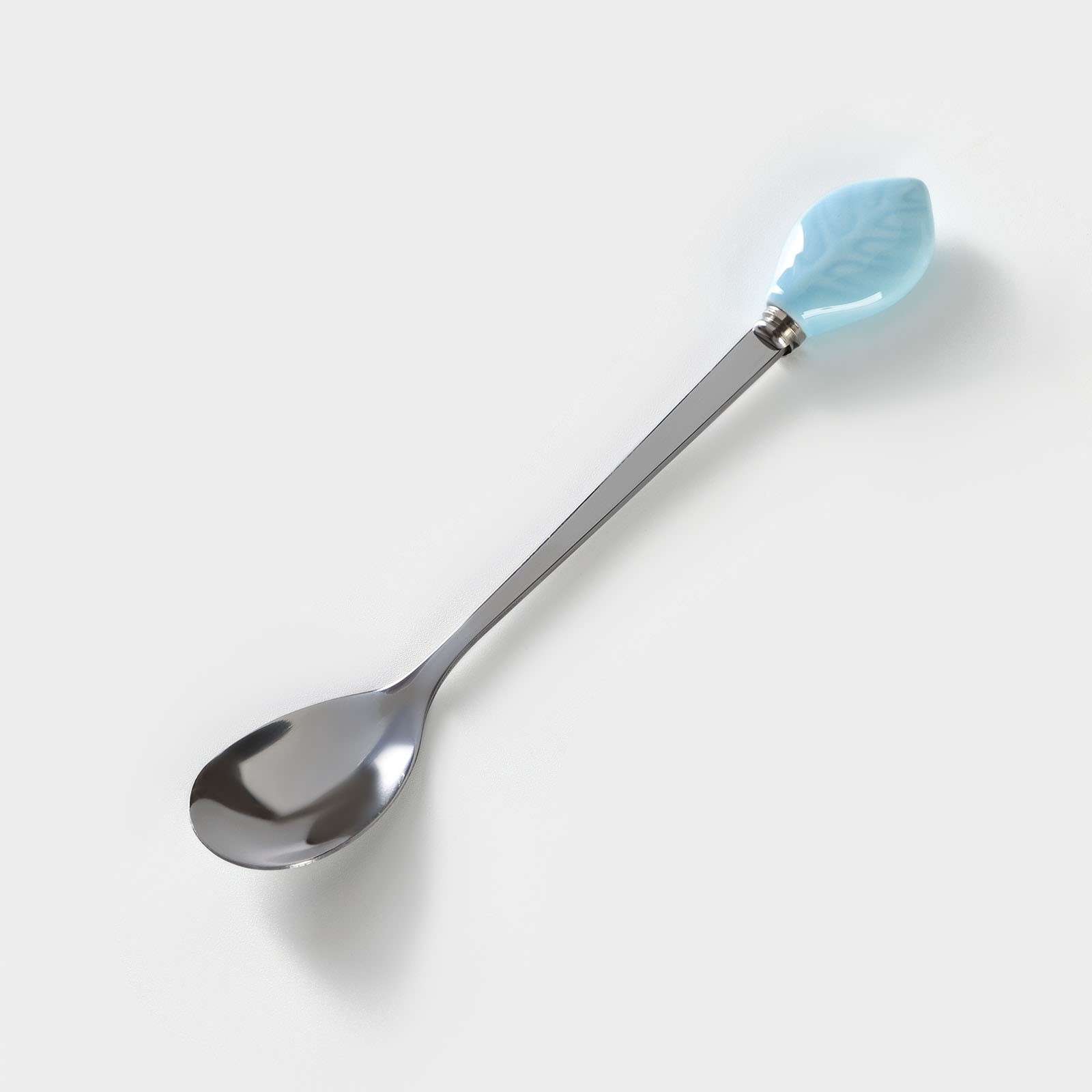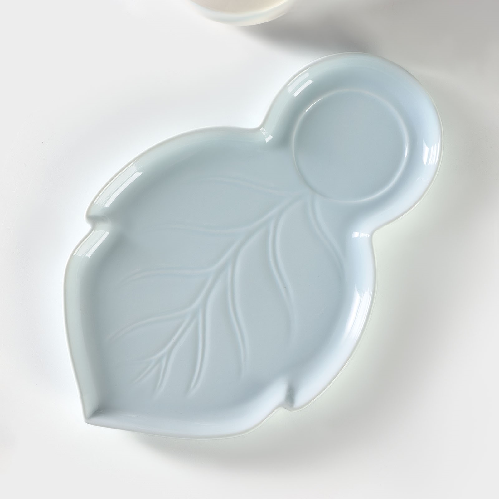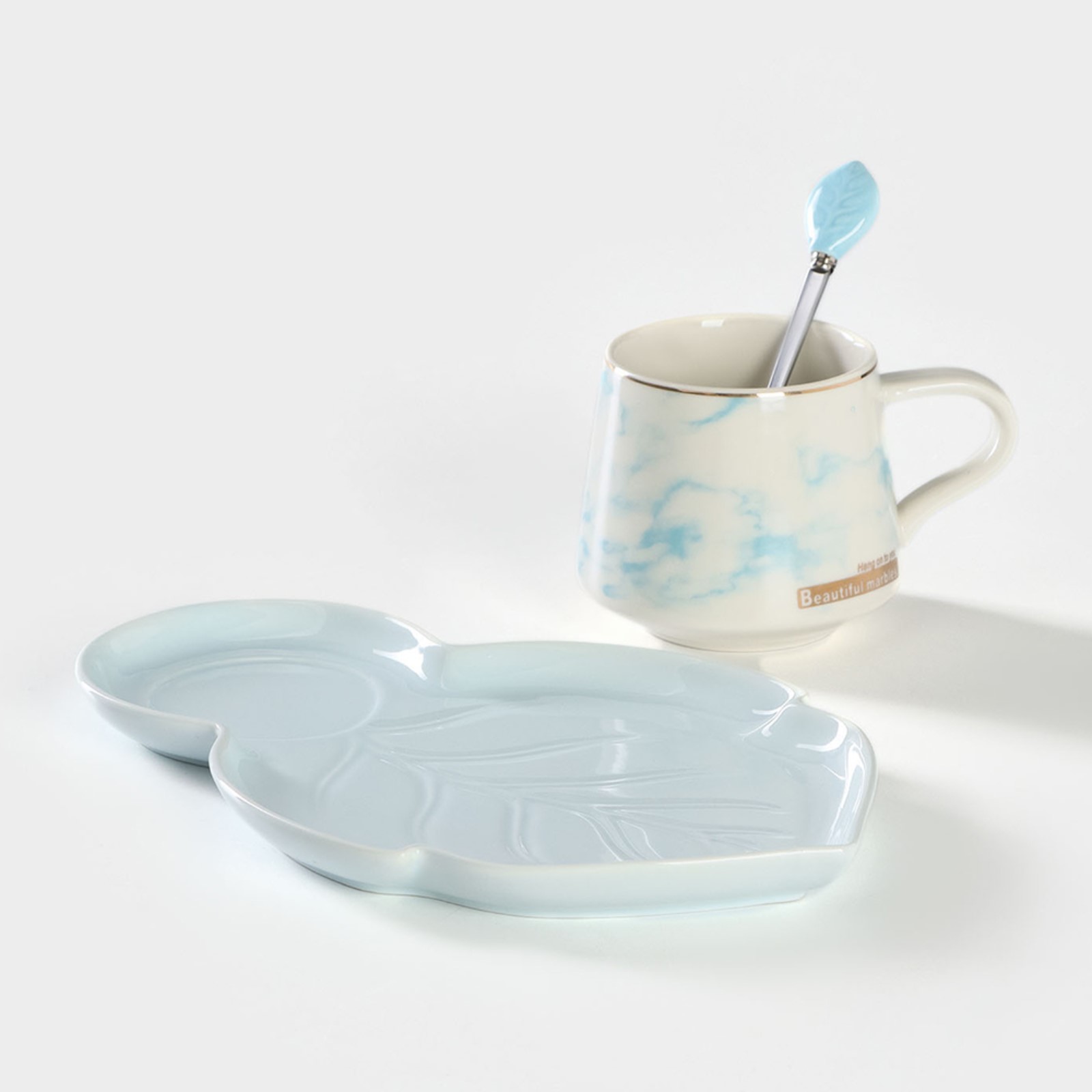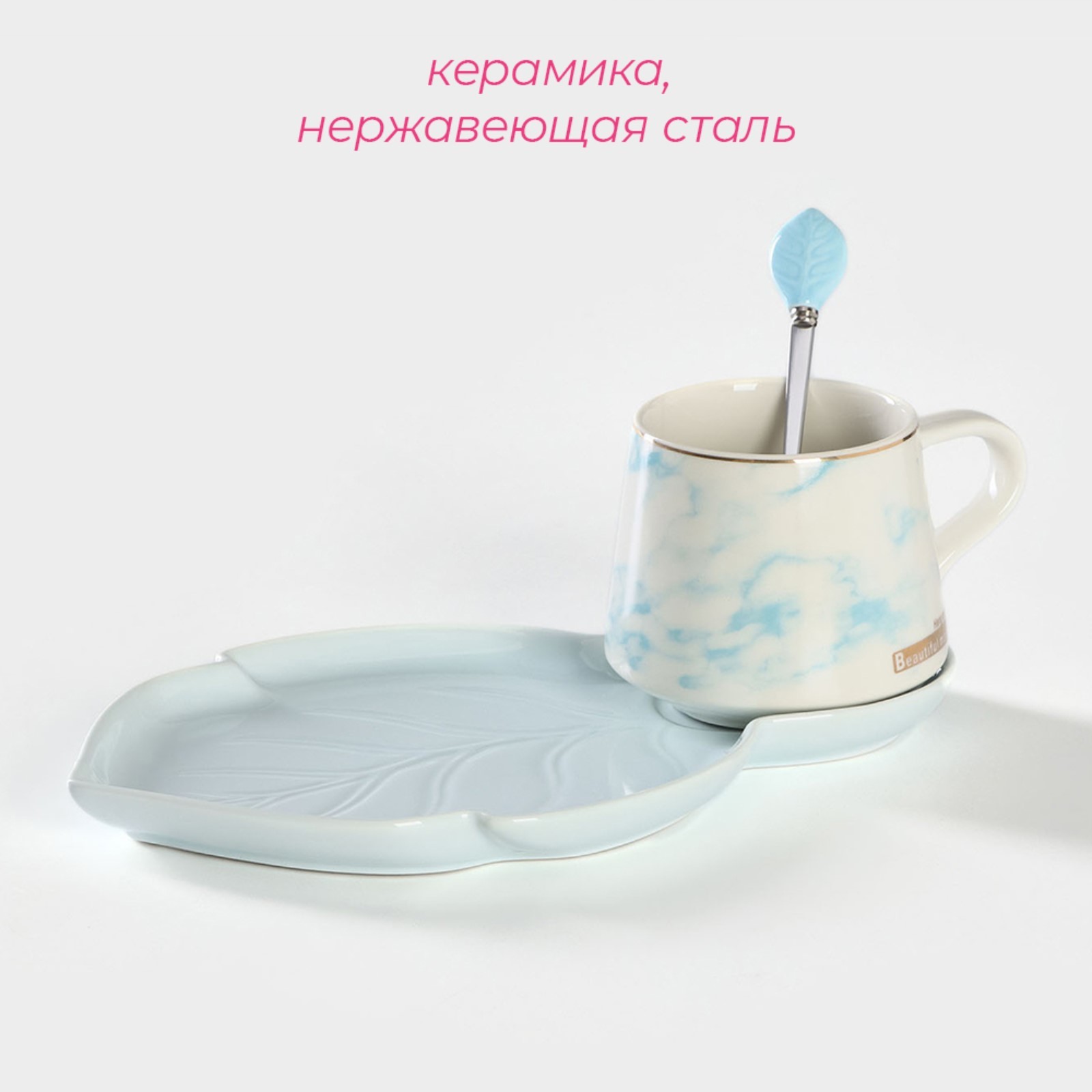 Чайная пара керамическая «листочек», 3 предмета: чашка 320 мл, блюдце 25,5x16 см, ложка, цвет голубой