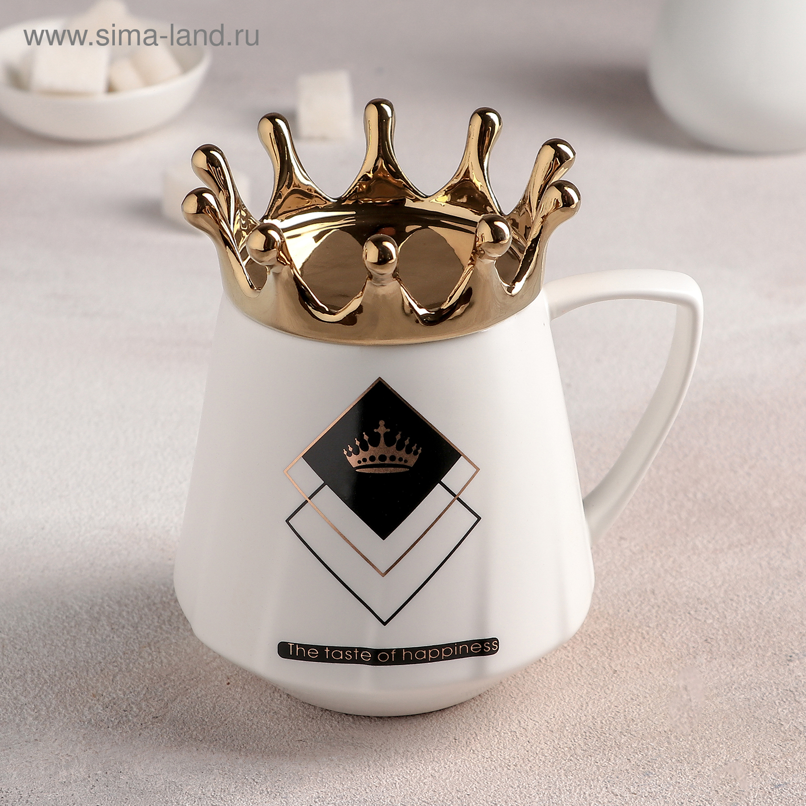 Кружка керамическая с крышкой «корона», 400 мл, рисунок микс