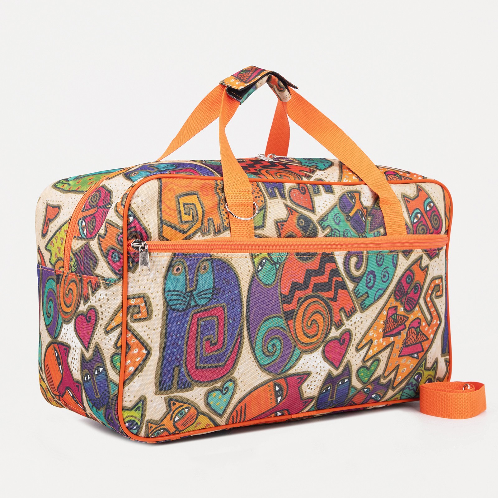 Сумка дорожная на молнии, наружный карман, длинный ремень, цвет оранжевый/разноцветный