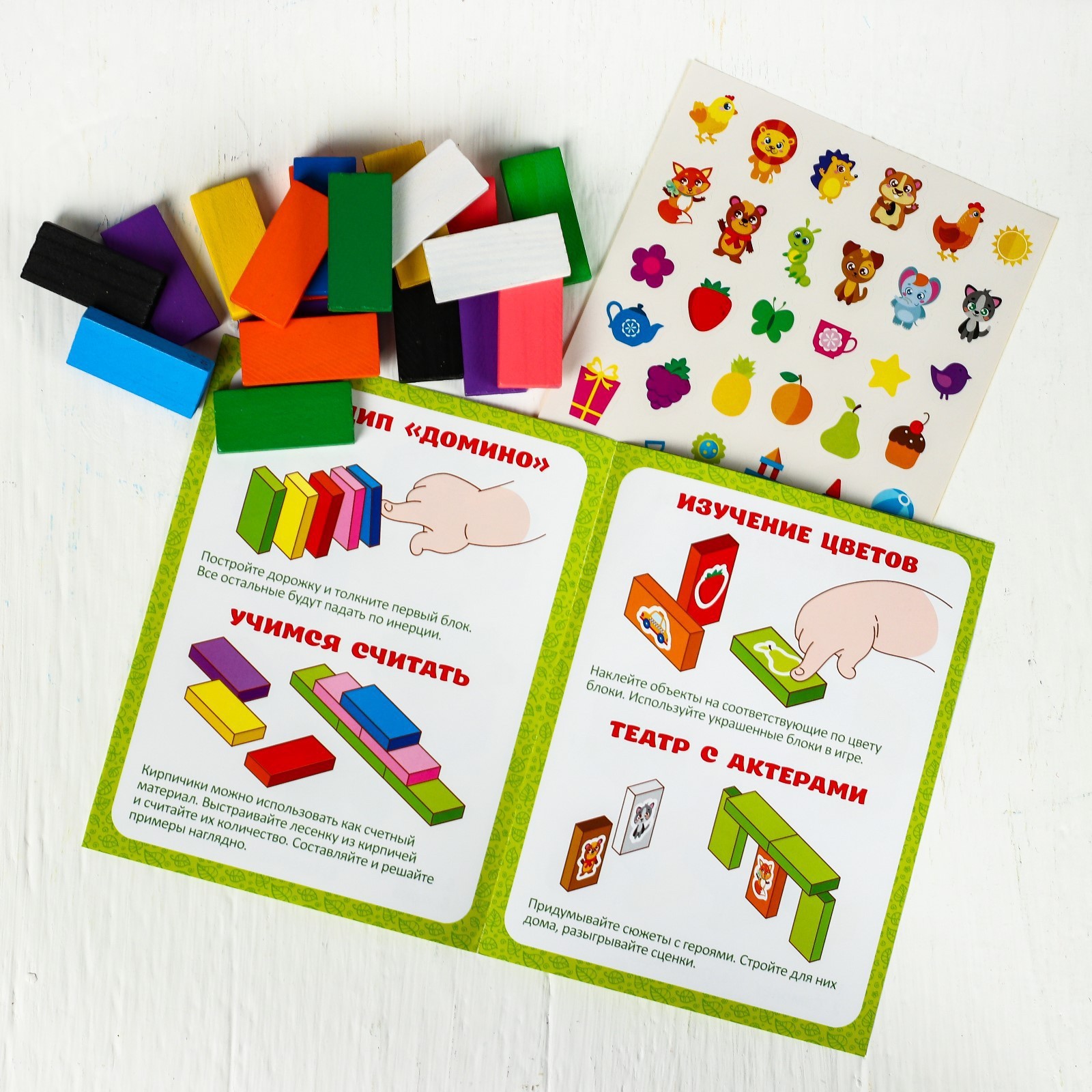 Конструктор деревянный «кирпичики» размер плашки: 2 4.4 0.7 см. Деревянный конструктор «Кирпичики» — это универсальная игрушка для детей от 3 лет, которая помогает изучать цвета, формы и основы счёта через увлекательную игру. С его помощью ребёнок сможет строить замки, создавать сюжеты и развивать важные навыки. Особенности набора 120 деталей из натурального дерева, безопасных и приятных на ощупь.Размер плашки: 2 4.4 0.7 см — идеально подходит для маленьких рук.Яркие цвета и геометрические формы стимулируют интерес к обучению.В комплекте наклейки для создания персонажей и театральных постановок.Почему этот конструктор полезенx Развивает моторику: работа с мелкими деталями улучшает координацию движений.Учит цветам и формам: ребёнок учится различать и сопоставлять элементы.Помогает освоить счёт: конструктор можно использовать как наглядный материал для обучения математике.Стимулирует воображение: возможность создавать собственные сюжеты развивает творческое мышление.Как играть с конструкторомx Для малышей набор станет первым шагом в изучении цветов и форм. Дошкольники смогут использовать его для строительства замков, создания театральных постановок или просто для весёлой игры. Придумывайте с ребёнком увлекательные истории, стройте дома и города — возможности ограничены только фантазией! Конструктор «Кирпичики» — это не просто игрушка, а инструмент для развития, который надолго увлечёт вашего ребёнка и станет частью его игрового мира. Для кого:Унисекс|Возраст:От 3 лет|Количество элементов:120|Материал:Дерево|Вид:Из кирпичиков|Тематика конструктора:Геометрические фигуры|Развитие навыков:Моторика|Развитие навыков:Счёт|Развитие навыков:Фигуры, цвета|Страна:Китай  развернуть описание ▼