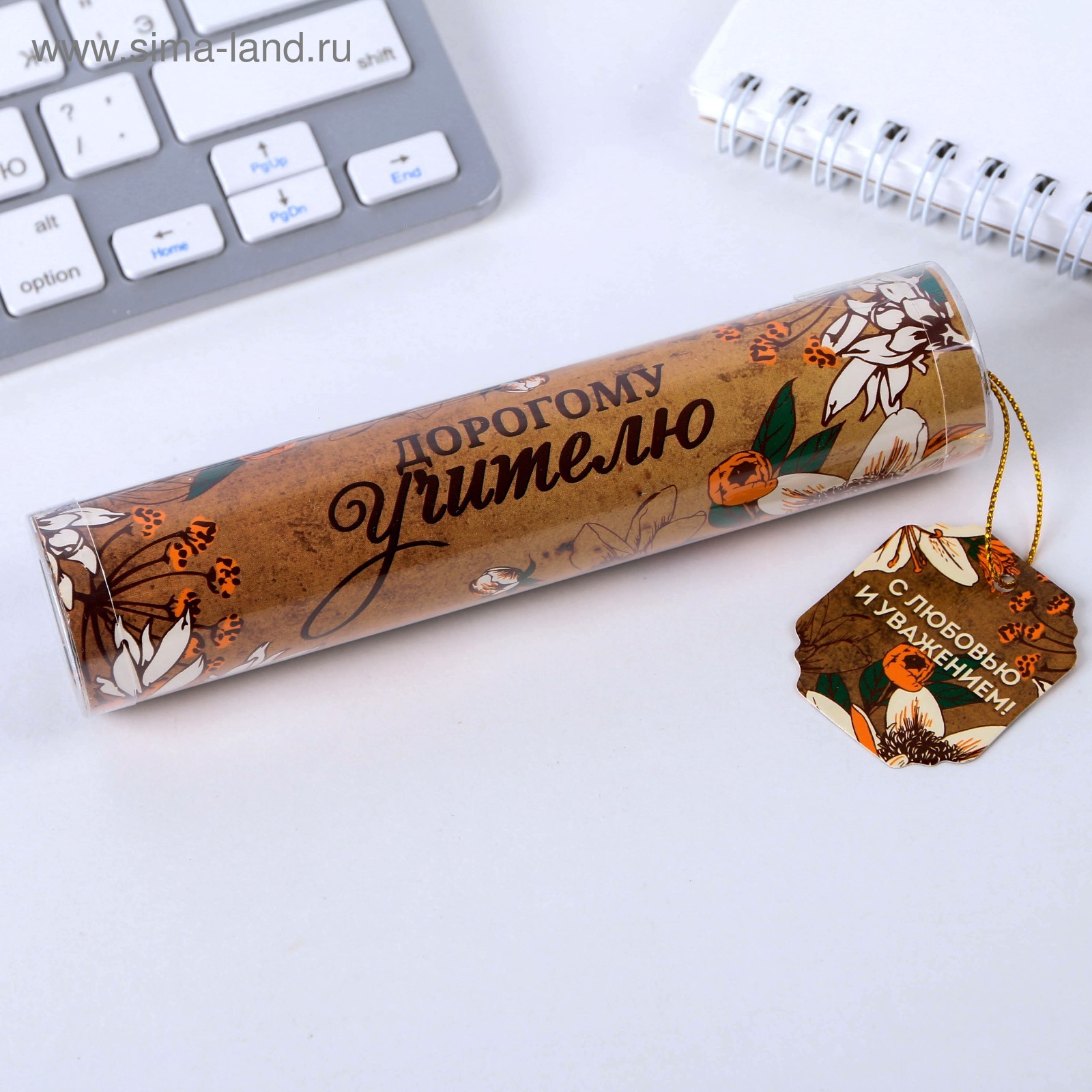 Ручка шариковая в тубусе, пластик, синяя паста, 1.0 мм «дорогому учителю!»