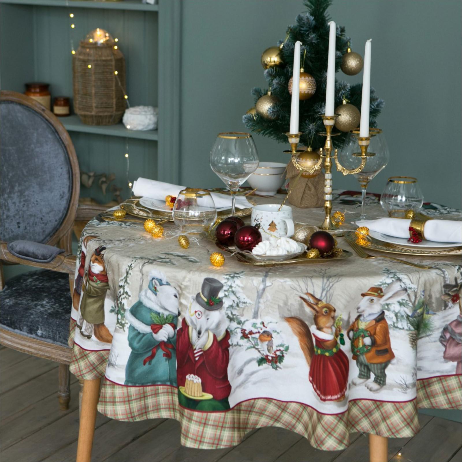 Скатерть "этель" Winter Holidays D=220см +/-3см с гмво, 100% хлопок, саржа 190гр/м2