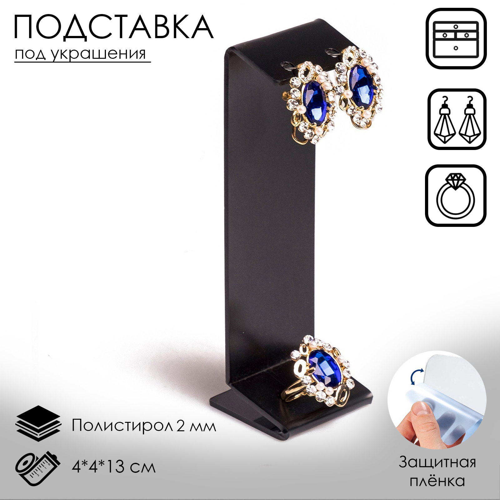 Подставка под серьги, кольцо, 4 4 13 см, 2 мм, цвет черный, в защитной плёнке