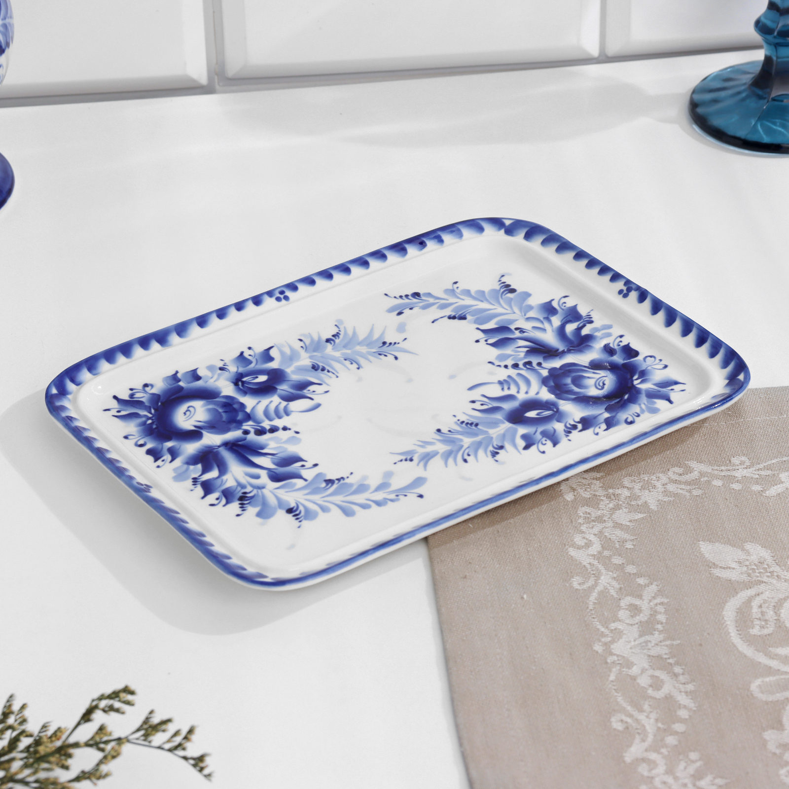 Поднос «цветочный», 23х17х2 см, гжель.