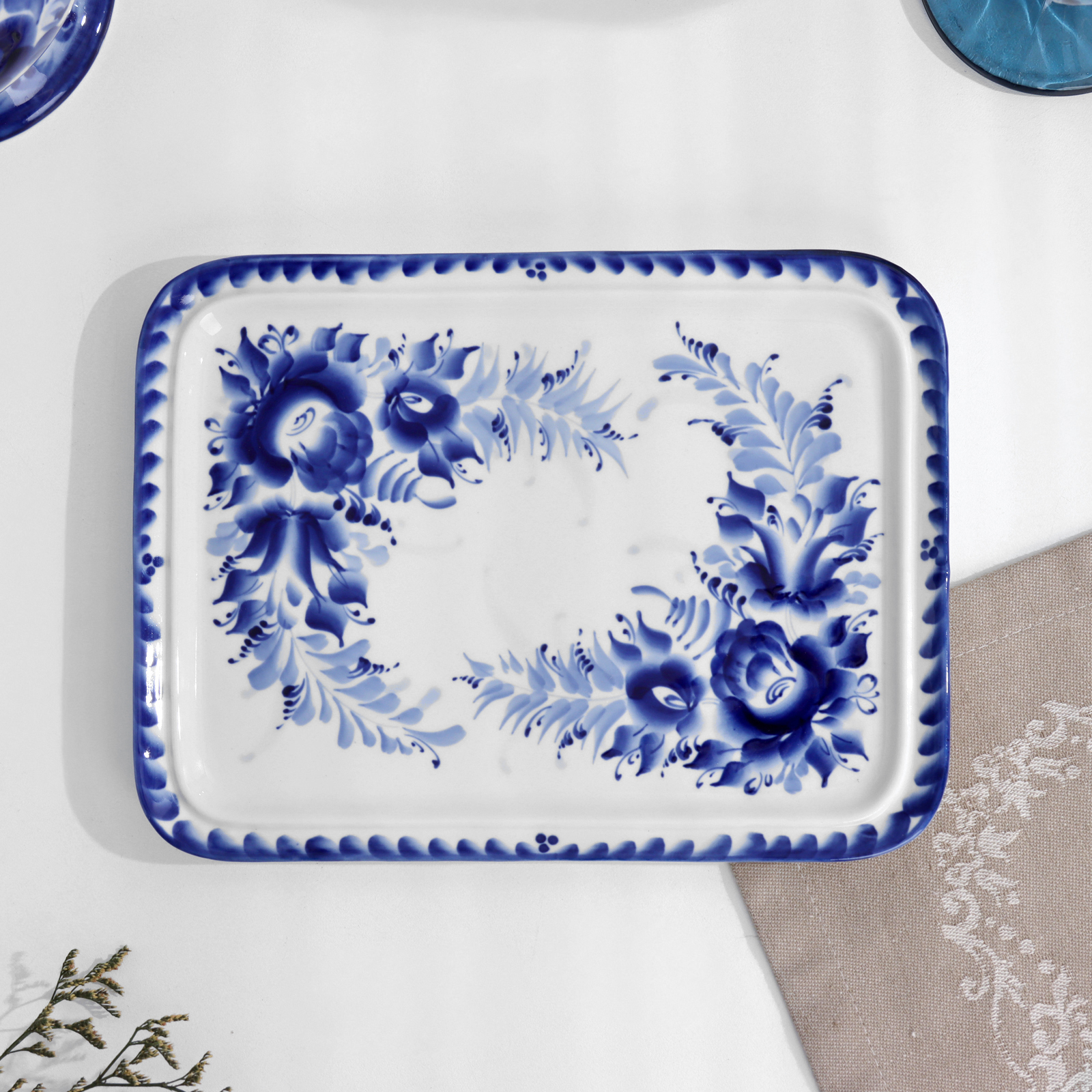 Поднос «цветочный», 23х17х2 см, гжель