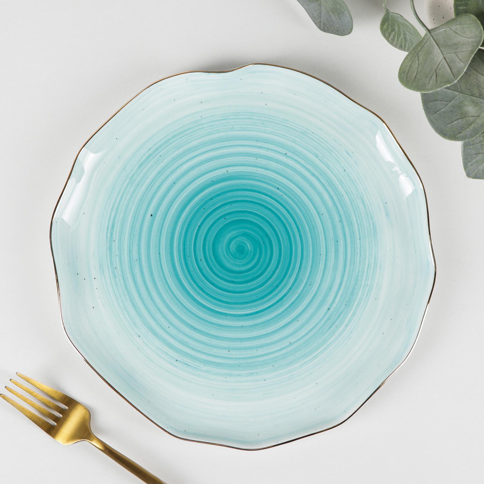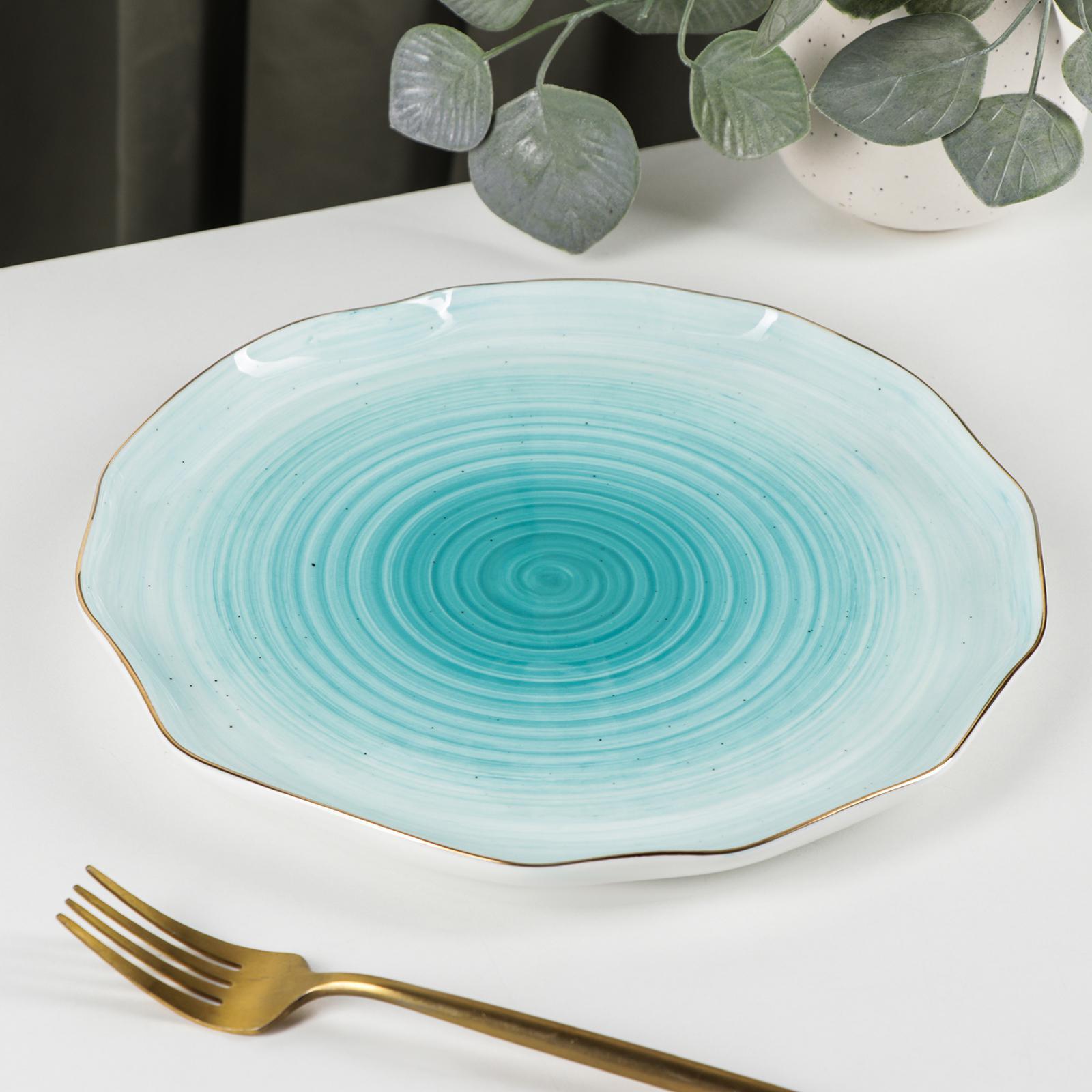 Тарелка фарфоровая обеденная доляна «млечный путь», D=25 см, цвет бирюзовый