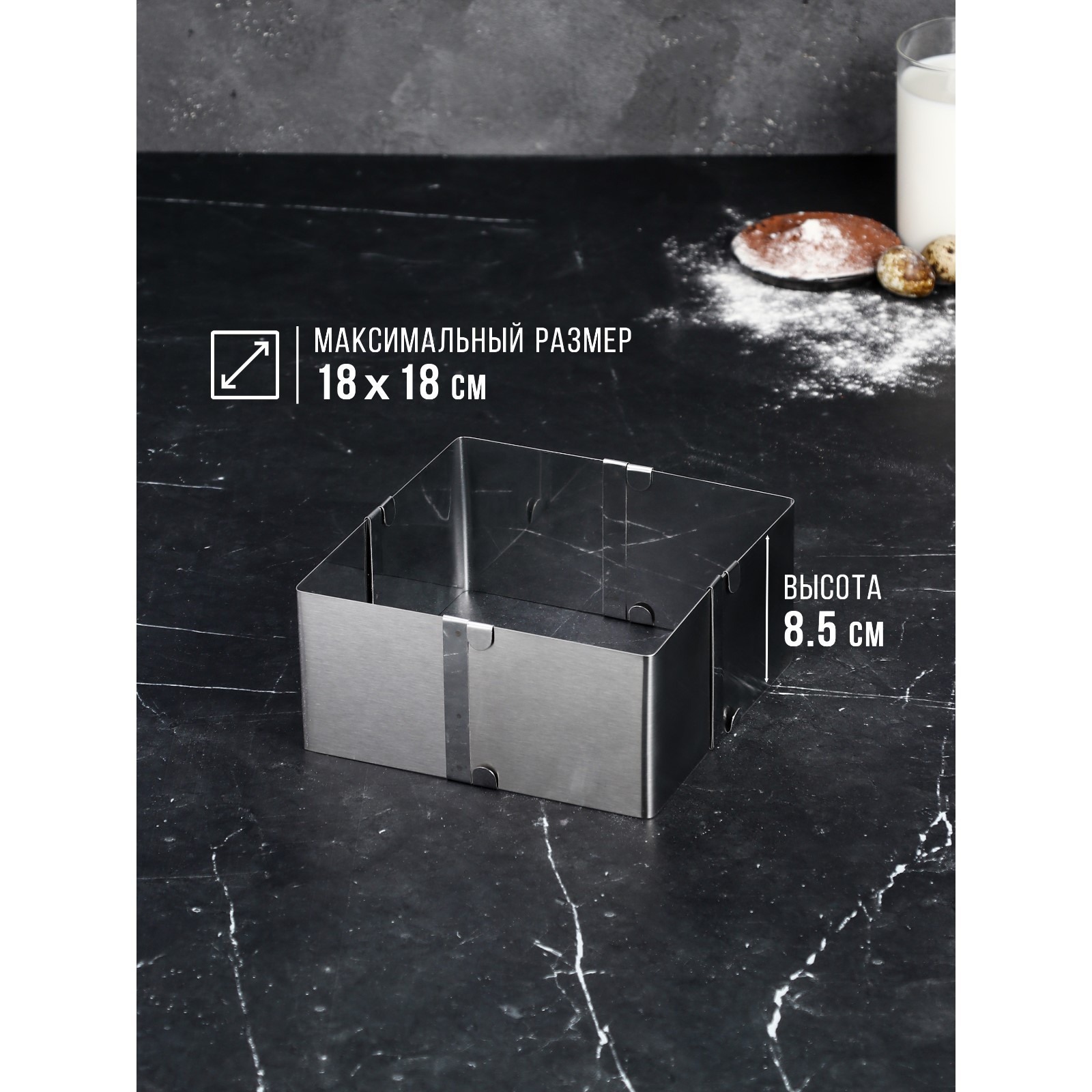 Форма для выпечки с регулировкой размера «квадратная», H-8,5 см, 10х10 - 18х18 см