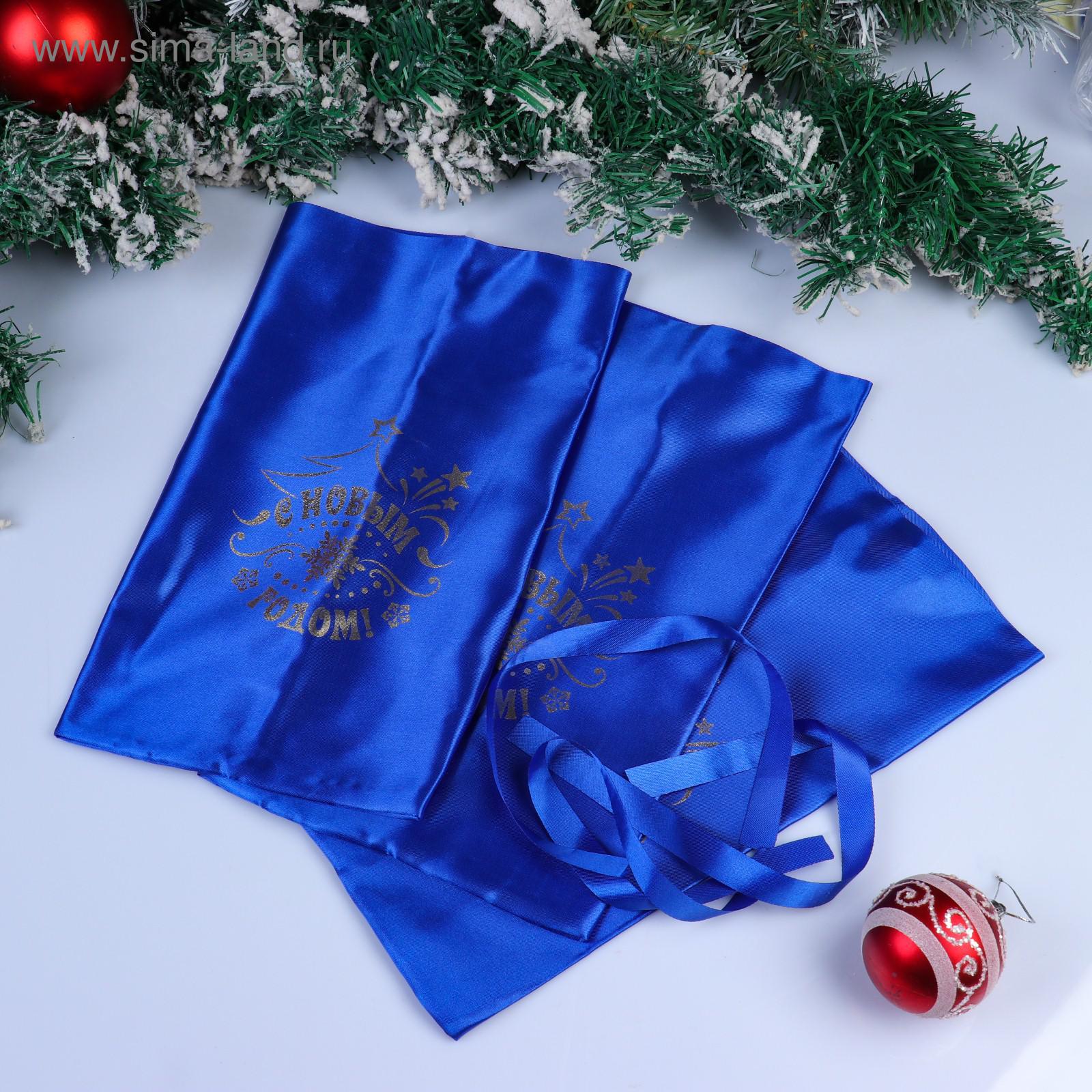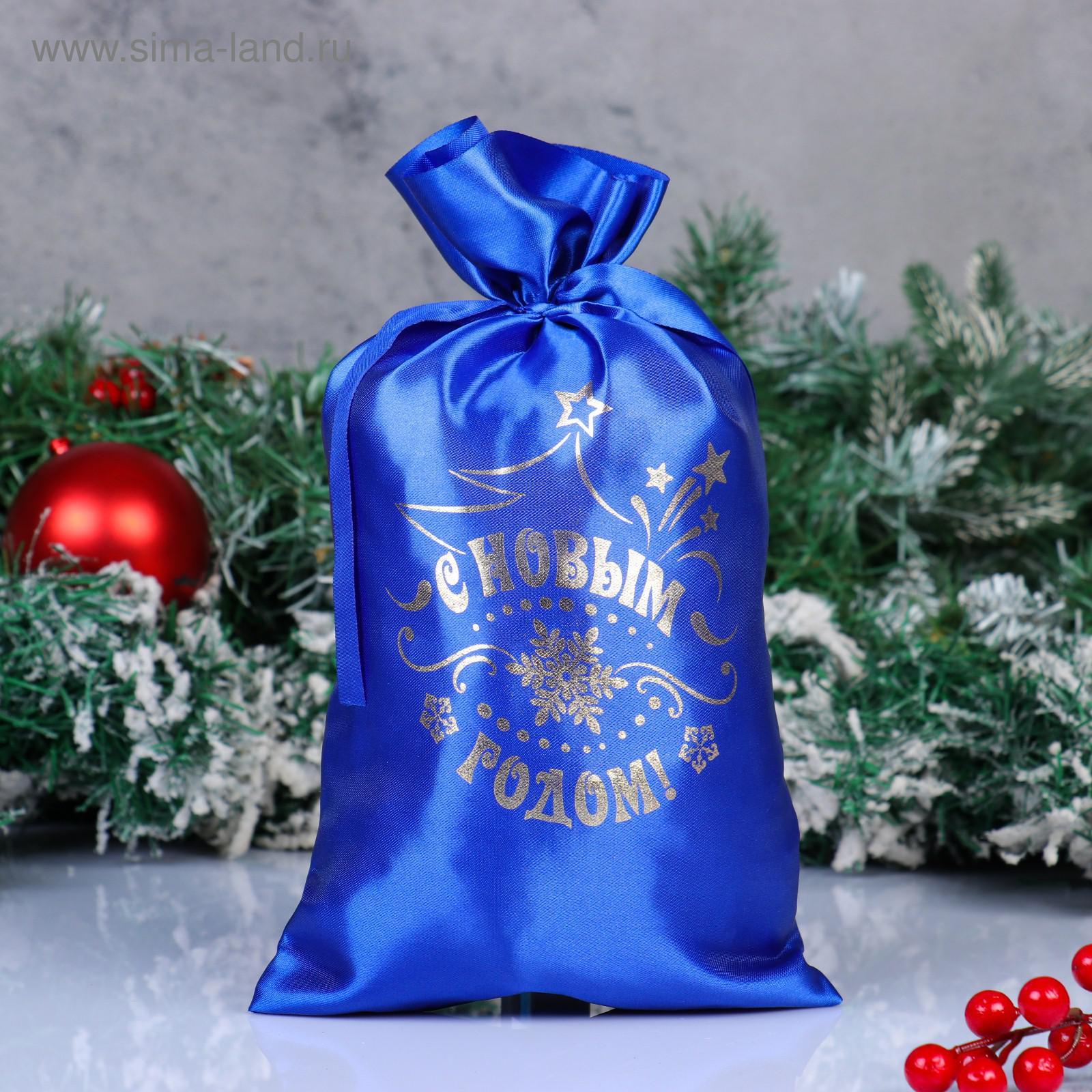 Мешок «с новым годом!», атлас, с завязками, синий, 20 х 30 см
