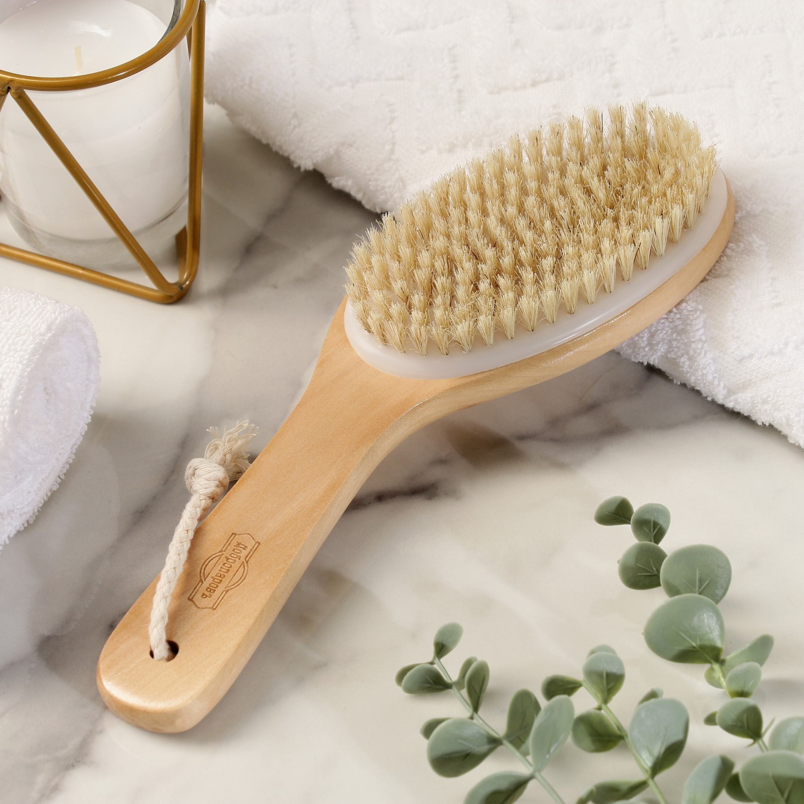 Щётка массажная для тела из натуральной щетины, с ручкой, гладкая