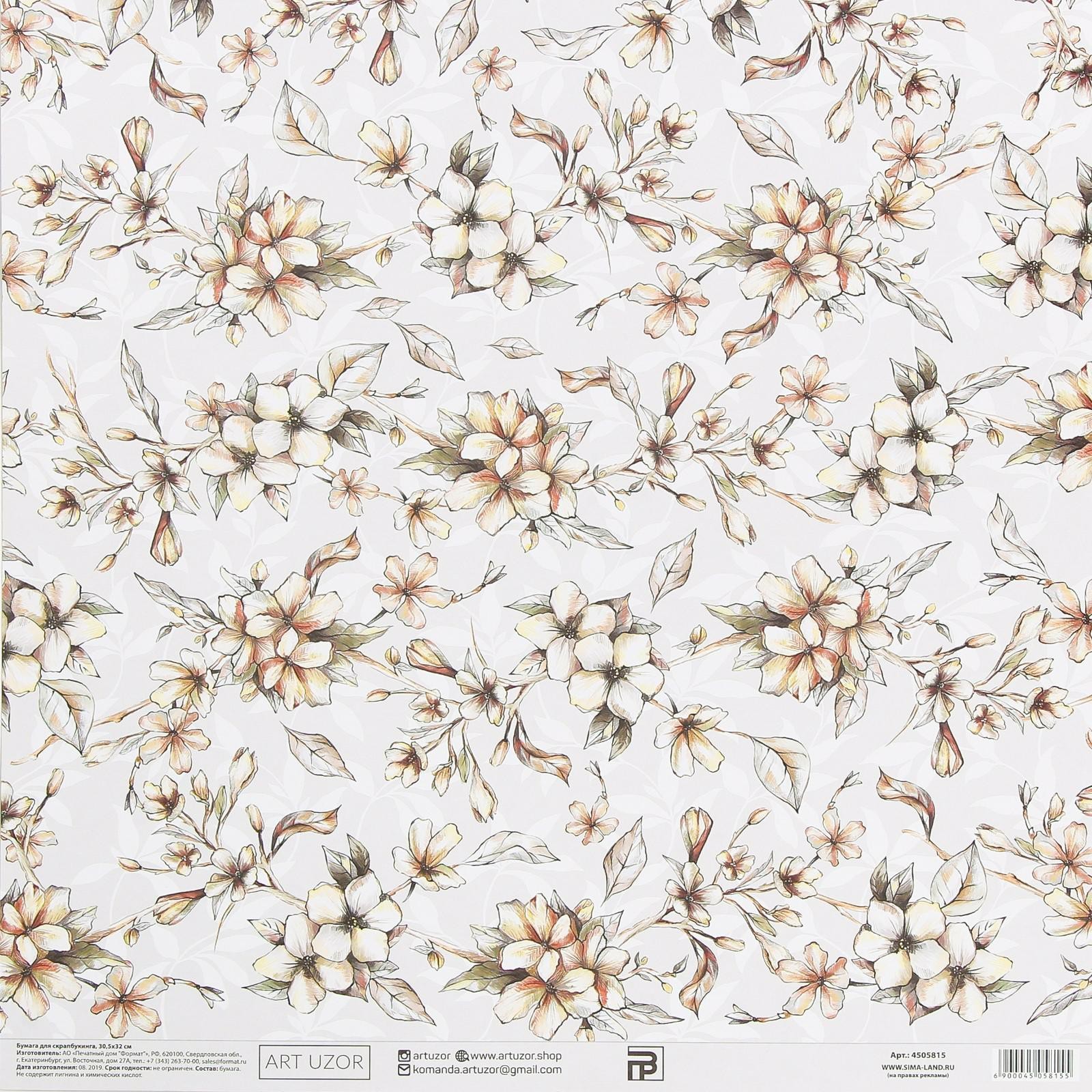 Бумага для скрапбукинга «нежные свадебные цветы», 30,5 х 32 см, 190 г/м