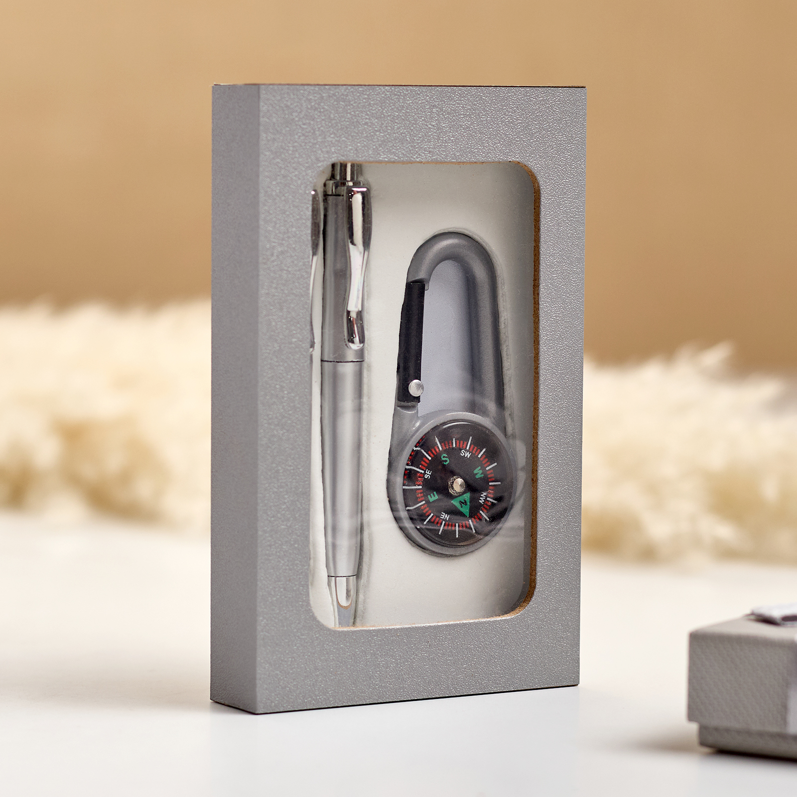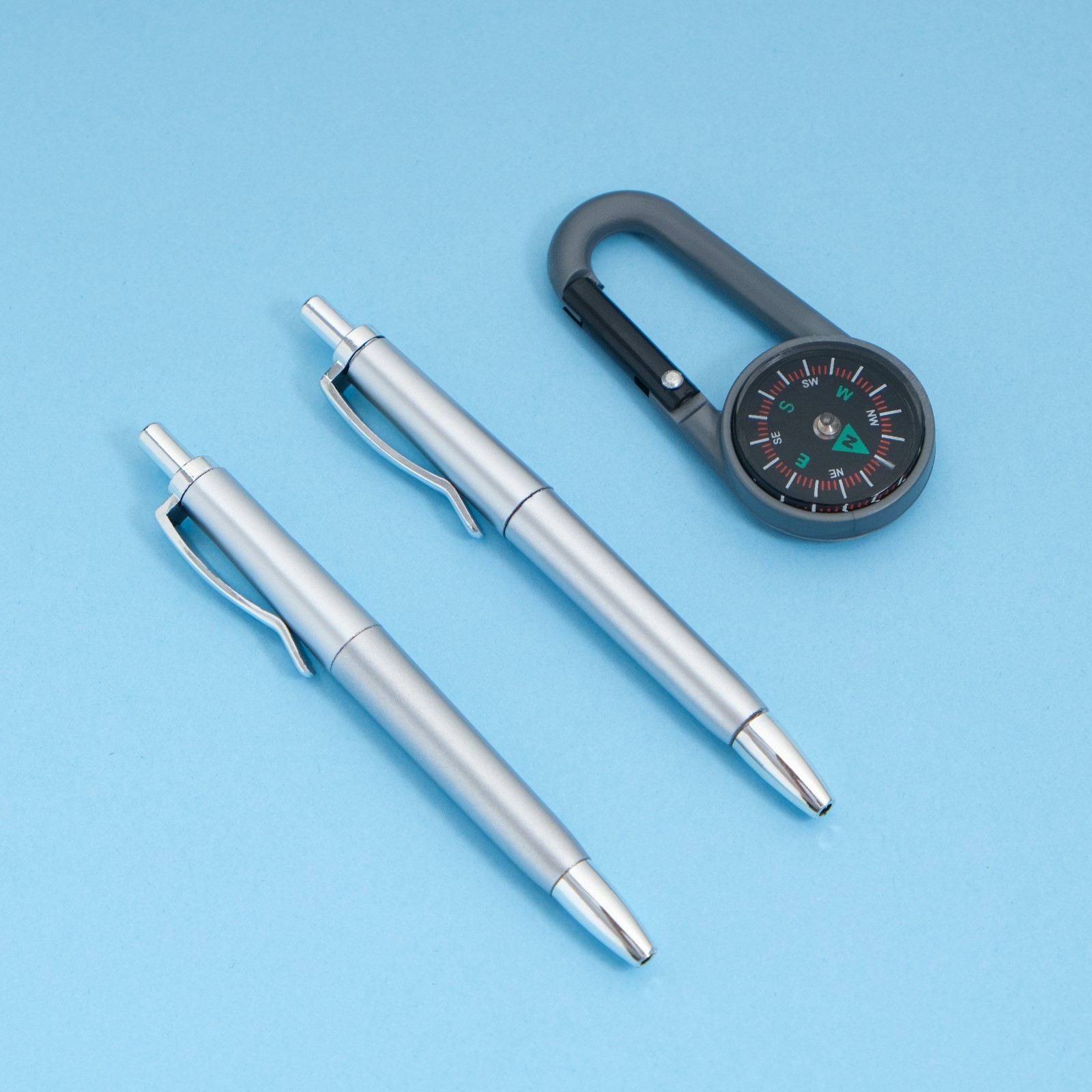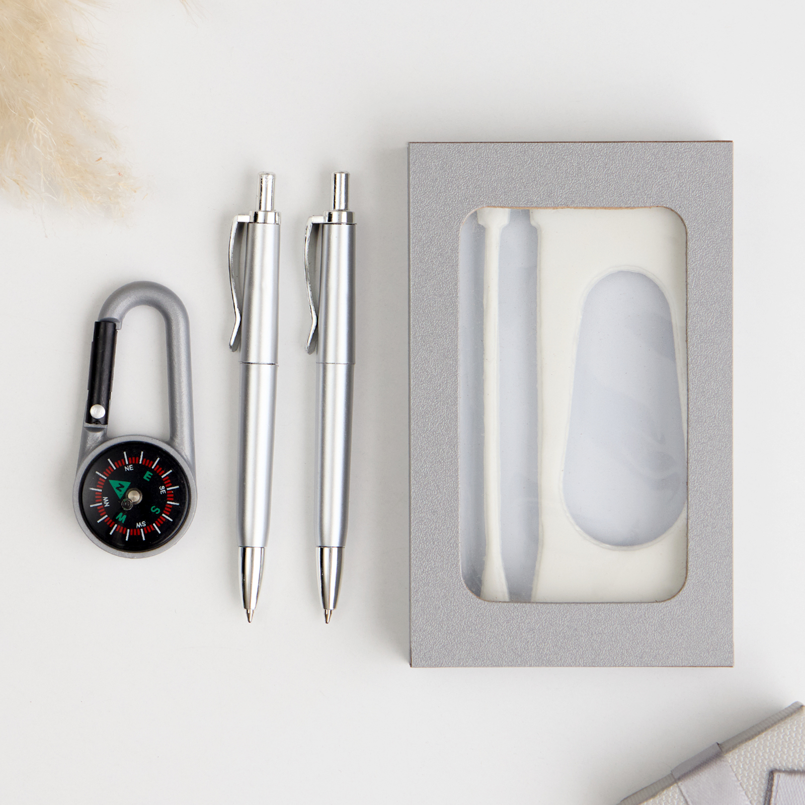 Набор подарочный 3 в 1, 2 ручки, карабин-компас. Цвет:Хромированный|Для кого:Для мужчины|В наборе, шт.:3|Вид упаковки:Коробка картонная|Символ года:Нет|Тематика праздника:Универсальная тематика|Тематика праздника:23 Февраля|Тематика праздника:Новый год|Адресат:Без адресата|Материал:Пластик|Материал:МДФ|Материал:Металл|Составляющие набора:Компас|Составляющие набора:Ручка|Составляющие набора:Брелок|Возраст:Для детей|Возраст:Для взрослых|Страна:Китай  развернуть описание ▼