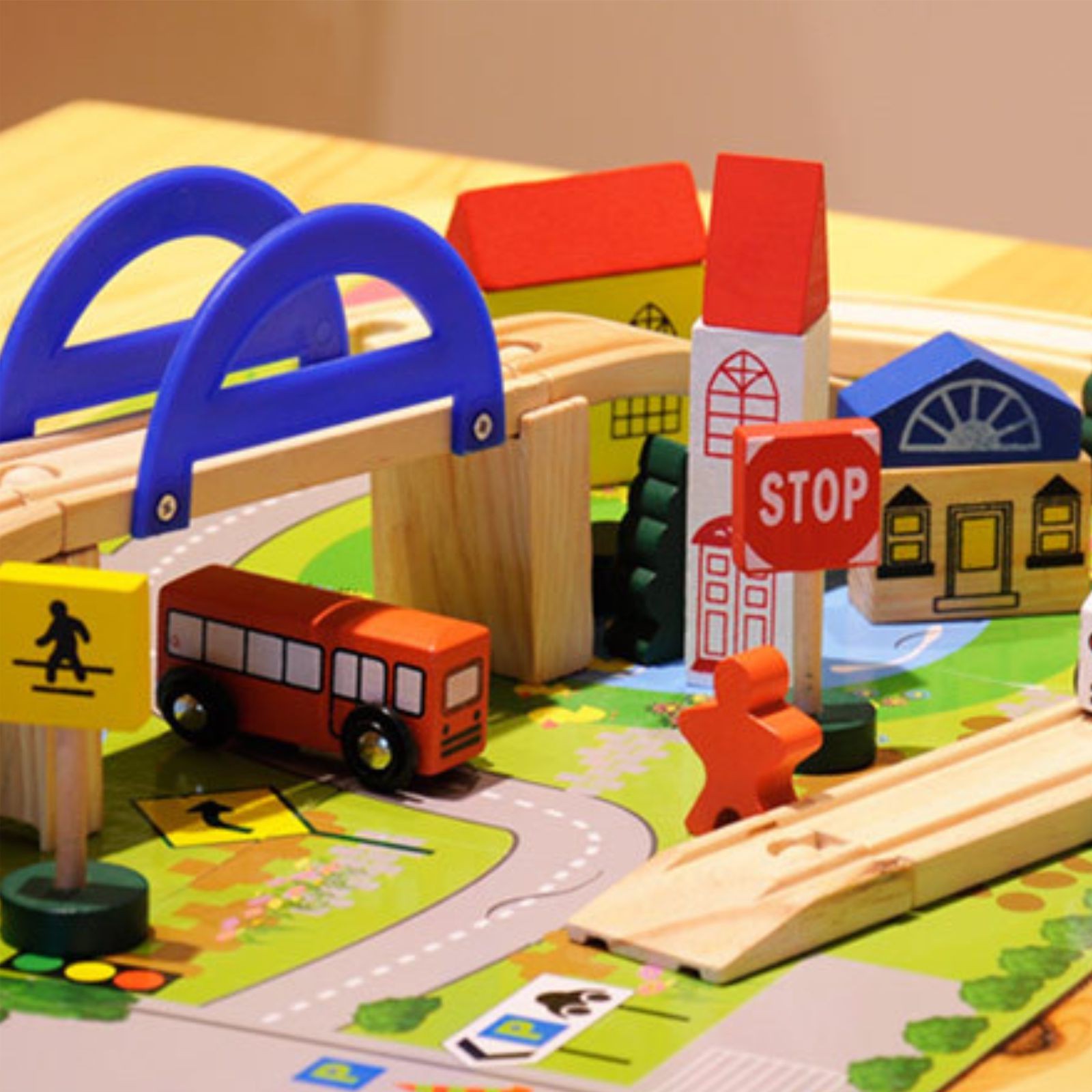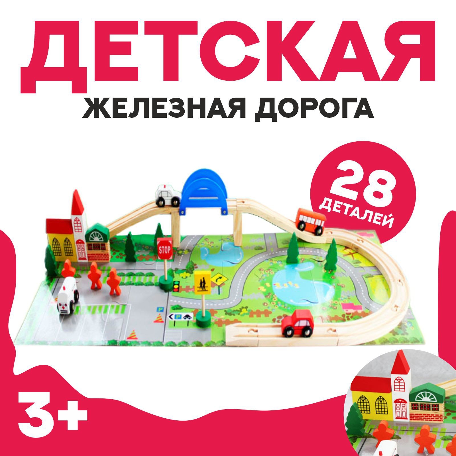 Железная дорога «сказка». Железная дорога — это красочный набор для сюжетных игр. Большое количество декораций и фигурок позволяет собрать действующий комплекс круговой дороги. Малыш сможет создавать собственные сюжетные линии. Например, перевозить пассажиров на озеро, в магазинчик и др. Детали дорожного полотна выполнены из дерева, что гарантирует долговечность. Набор совместим с комплектами KidKraft, Brio и «Томас и его друзья». В наборе: игровой коврик-пазл с сюжетным рисунком,28 элементов,4 машинки без двигателя,3 фигурки людей.Рекомендовано для детей от 3 лет. Тип питания:Без источника питания|Вид транспорта:Легковая машинка|Вид транспорта:Автобус|Назначение транспорта:Общественный|Цвет:Разноцветный|Для кого:Для мальчика|Возраст:От 3 лет|Количество вагонов:4|Количество элементов:28|Вид упаковки:Коробка картонная|Тематика праздника:Универсальная тематика|Материал:Металл|Материал:Дерево|Развитие навыков:Сюжетные игры|Дополнительные функции:Развивающая|Тип управления:Без механизма|Вид поезда:Мультяшный|Особенности:Мост|Материал путей:Дерево|Среда перемещения транспорта:Наземный транспорт|Страна:Китай  развернуть описание ▼
