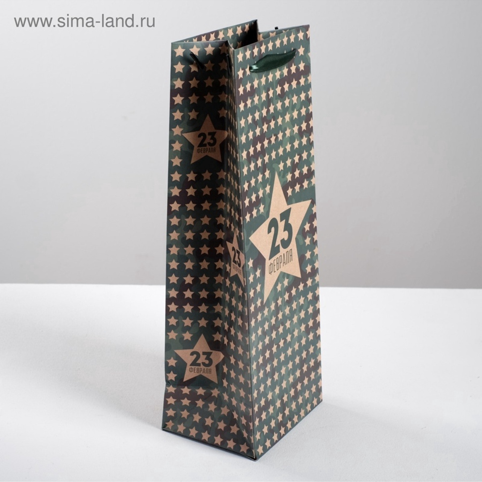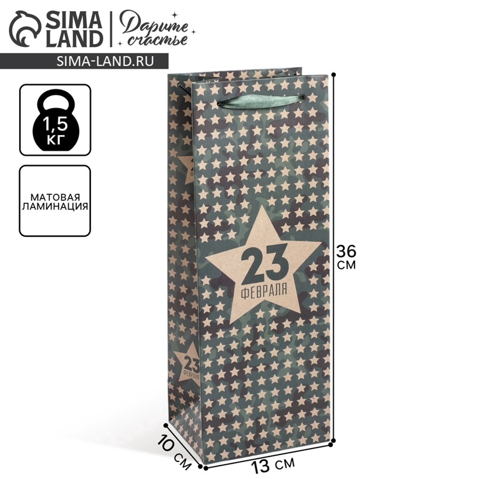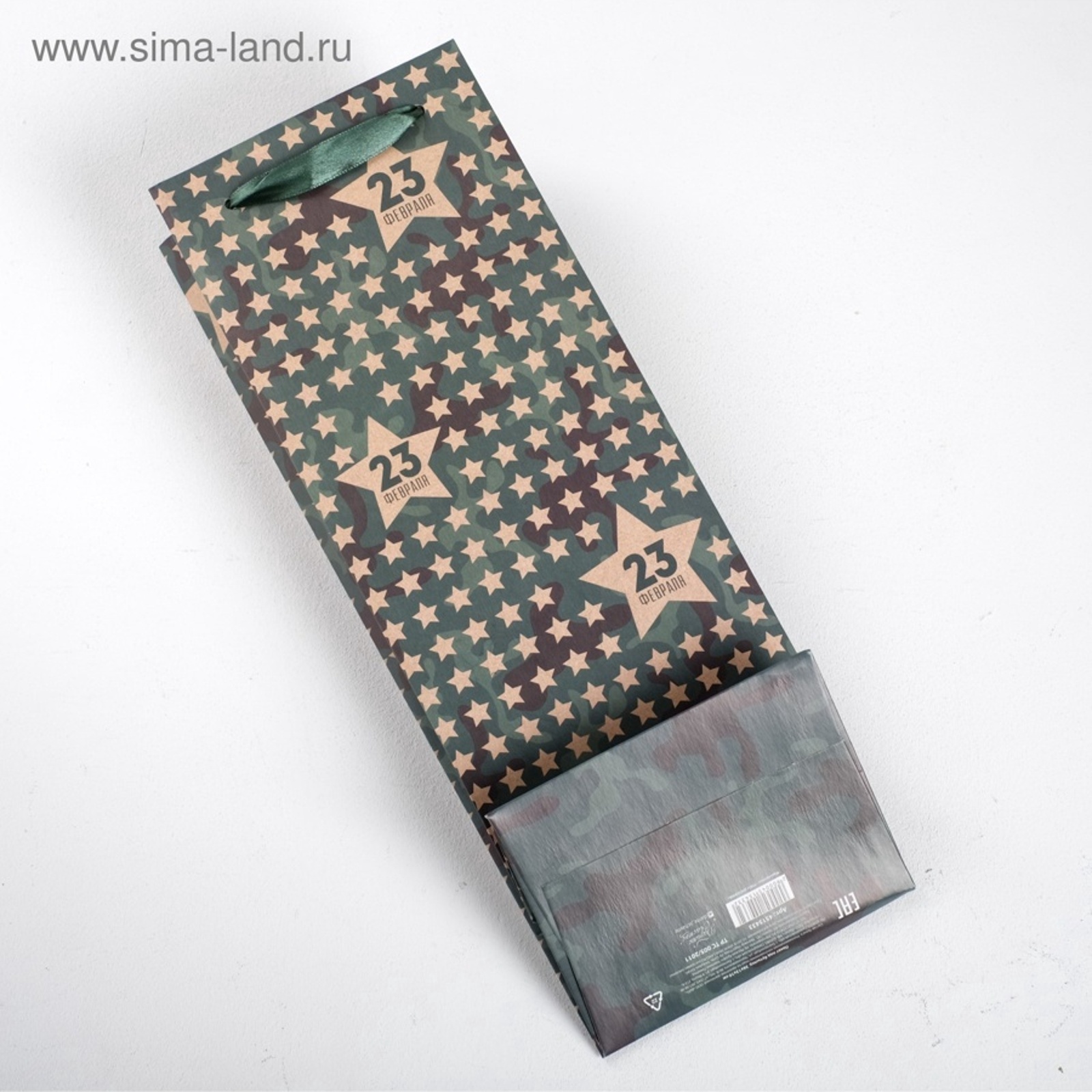 Пакет подарочный под бутылку, упаковка, «23 февраля», 36 х 13 х 10 см