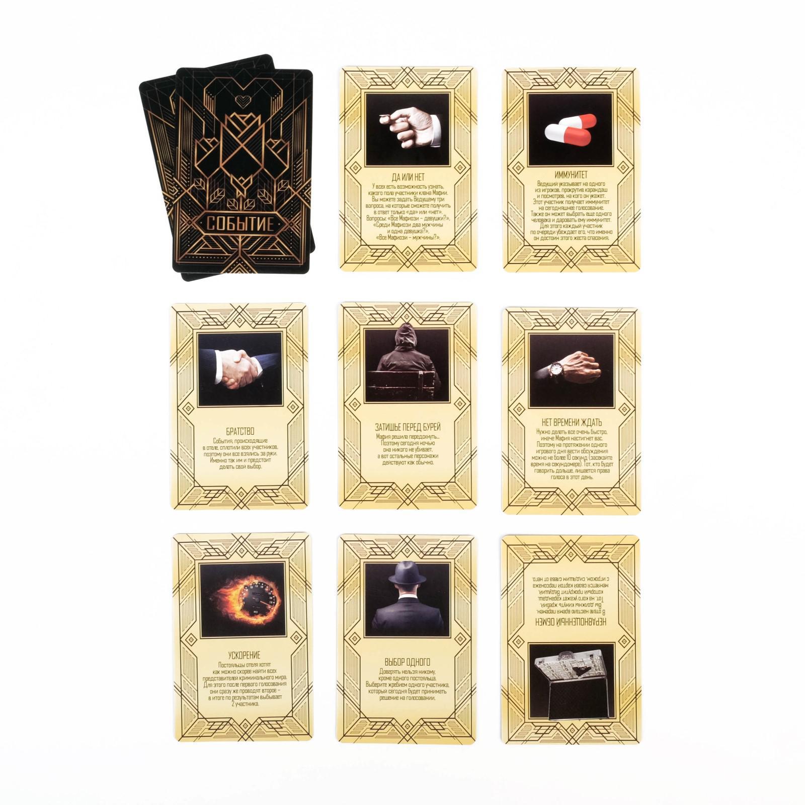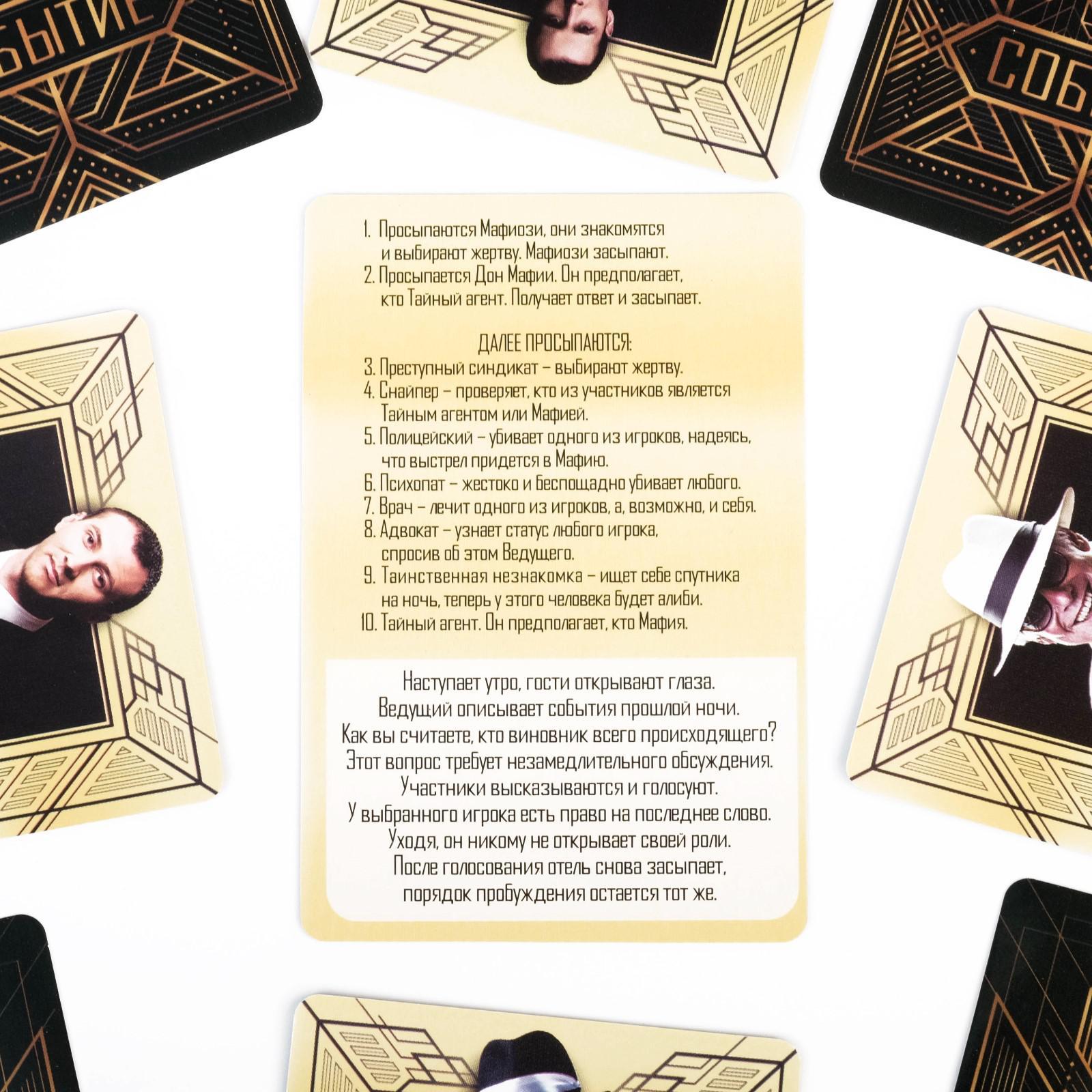 Ролевая игра «luxury мафия» с масками, 36 карт, 16+. Перед вами самая популярная психологическая игра, которая предлагает стать участником разборок в отеле «Континенталь». Что там произошлоx Самый опасный клан Мафии и Преступный синдикат устроили охоту друг на друга и простых постояльцев отеля. Как же остаться в живыхx Будьте Бдительны и сохраняйте спокойствие! Среди вас есть и Блюстители порядка, которые готовы прийти на помощь в любое время. Состав: 26 карточек персонажей10 карточек событий5 сценариев для Ведущегоправила игры10 масок для игрыКоллекция:Luxury|Возраст:От 16 лет|Количество карточек:36|Материал:Пластик|Материал:Картон|Материал:Бумага|Количество игроков:От 6 игроков|Время игры:40 минут|Жанр игры:Коммуникативная|Жанр игры:Мафия|Количество игроков:6 - 10|Материал:Картон|Страна:Китай  развернуть описание ▼