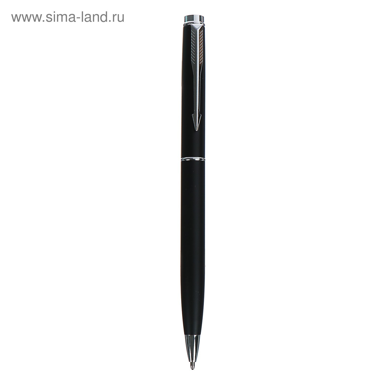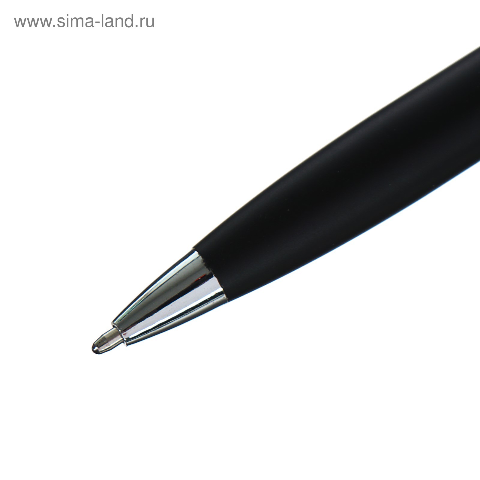 Ручка подарочная шариковая поворотная корпус чёрный матовый лого, стержень синий 0.7 мм, металлический корпус