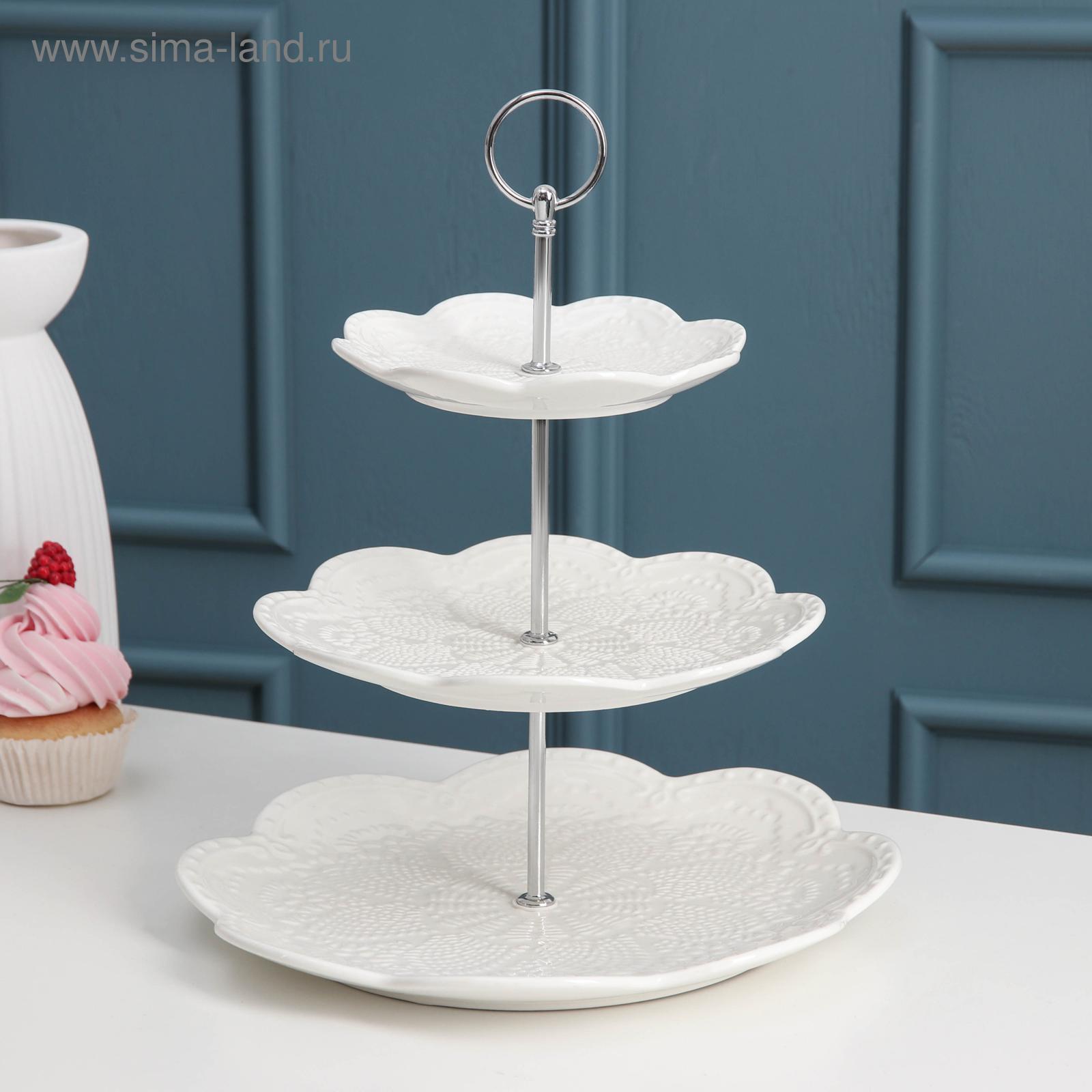 Блюдо фарфоровое 3-х ярусное доляна «сьюзен», D=15,5/25,5/27 см, цвет белый