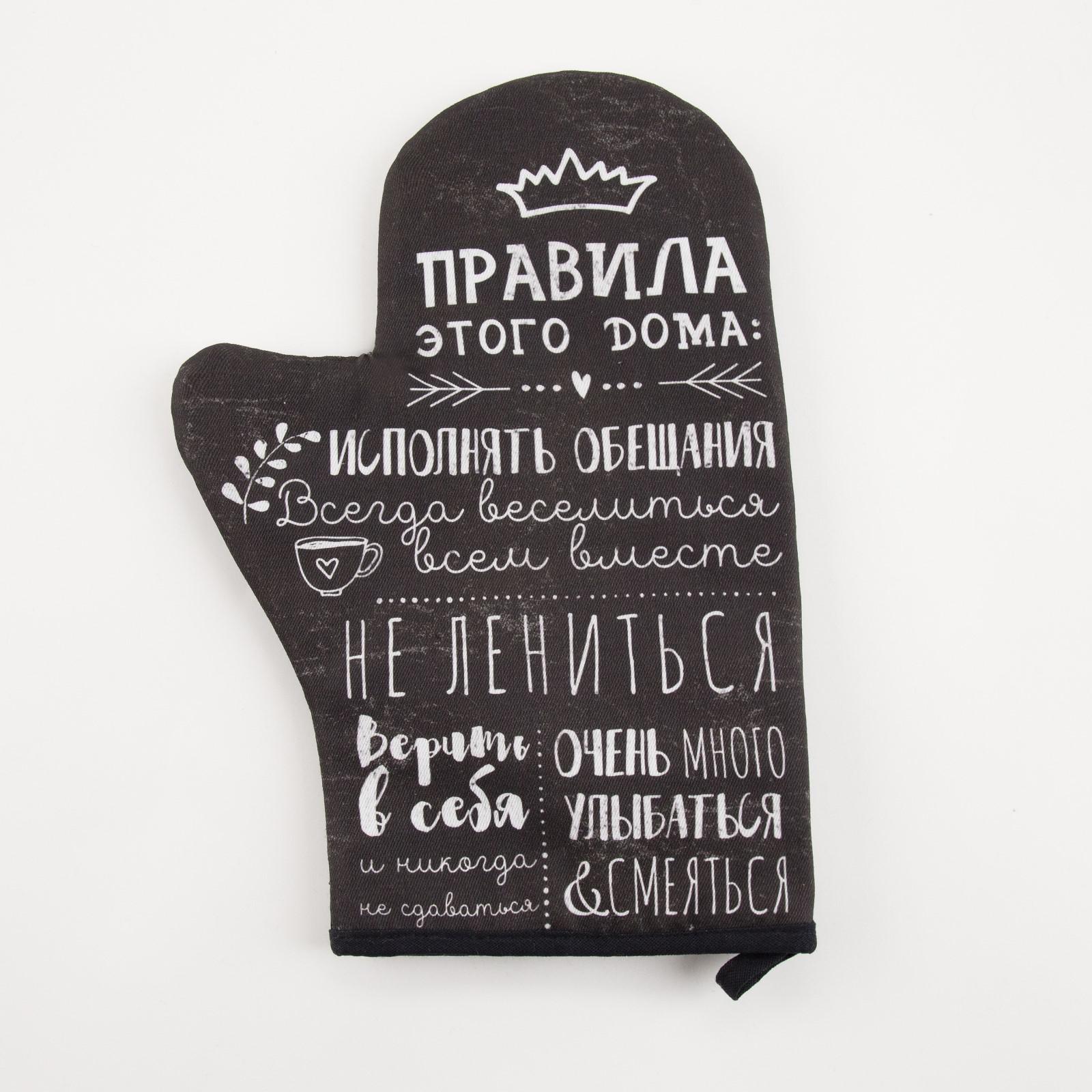 Варежка-прихватка «правила дома» саржа, 20х28 см, 100% х/л, ватин 250г/м2