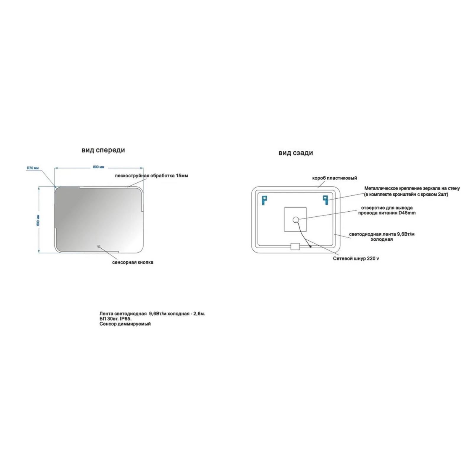 Зеркало Raison Led с сенсором, 800х600 мм злп485