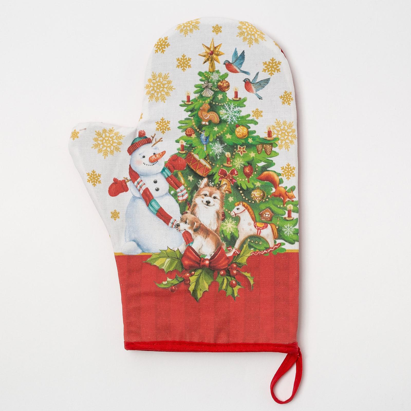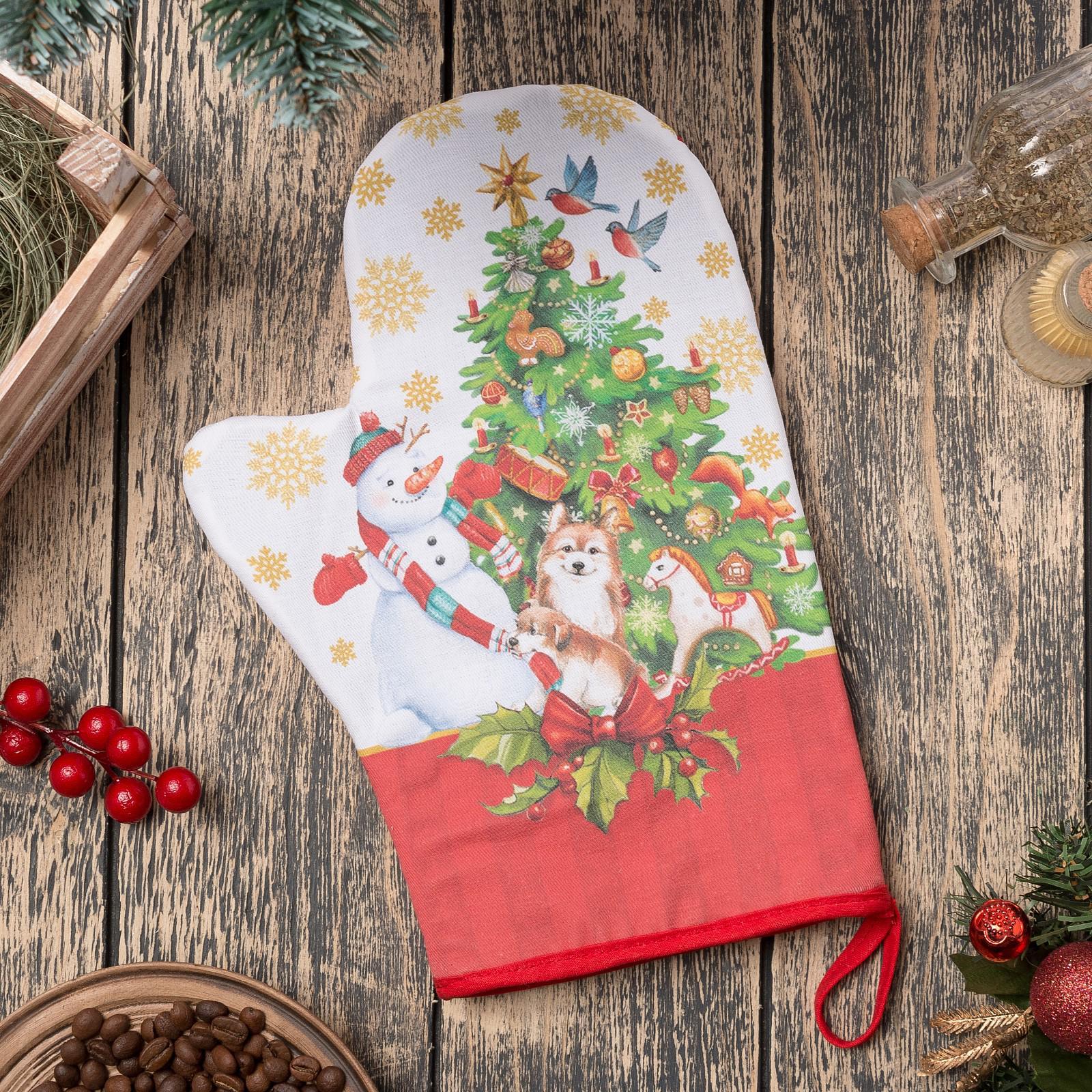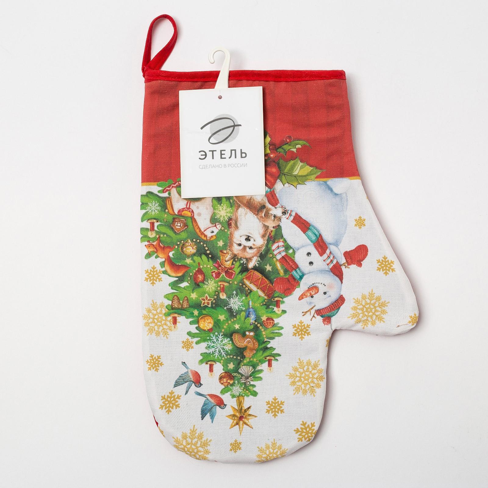 Варежка-прихватка "новогодние игрушки" 20х28см,саржа, 100% х/л, ватин 250г/м2