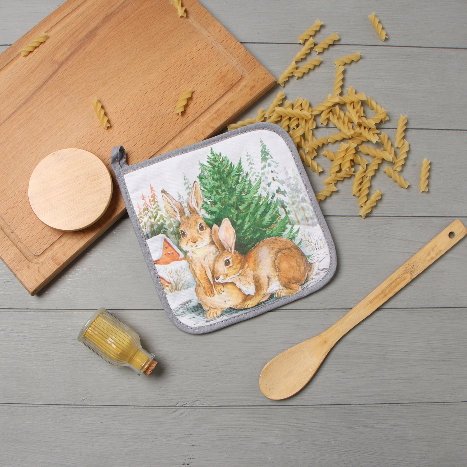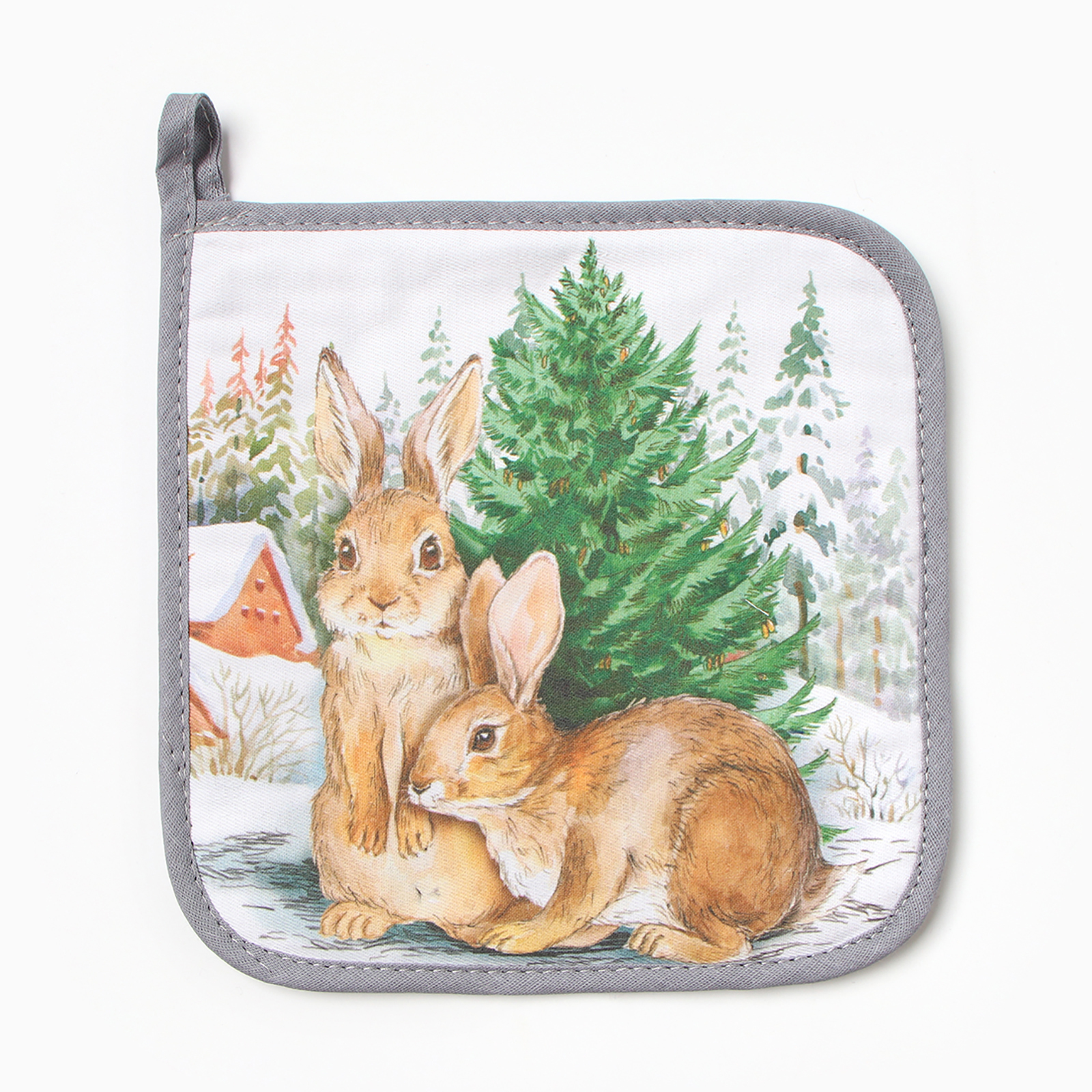 Прихватка "новогодние зайчики" саржа, 19х19см,100% х/л,ватин 250г/м2