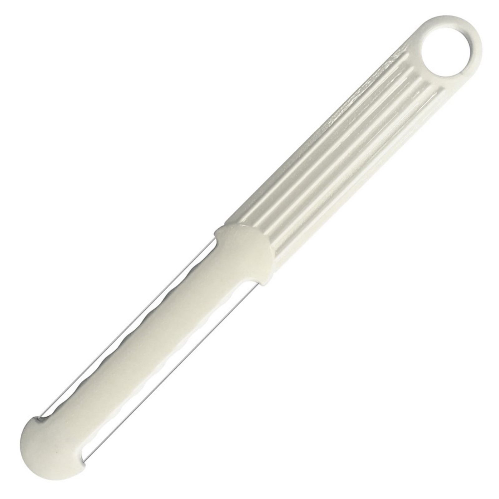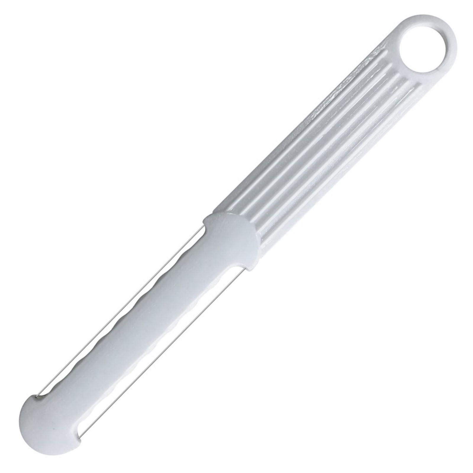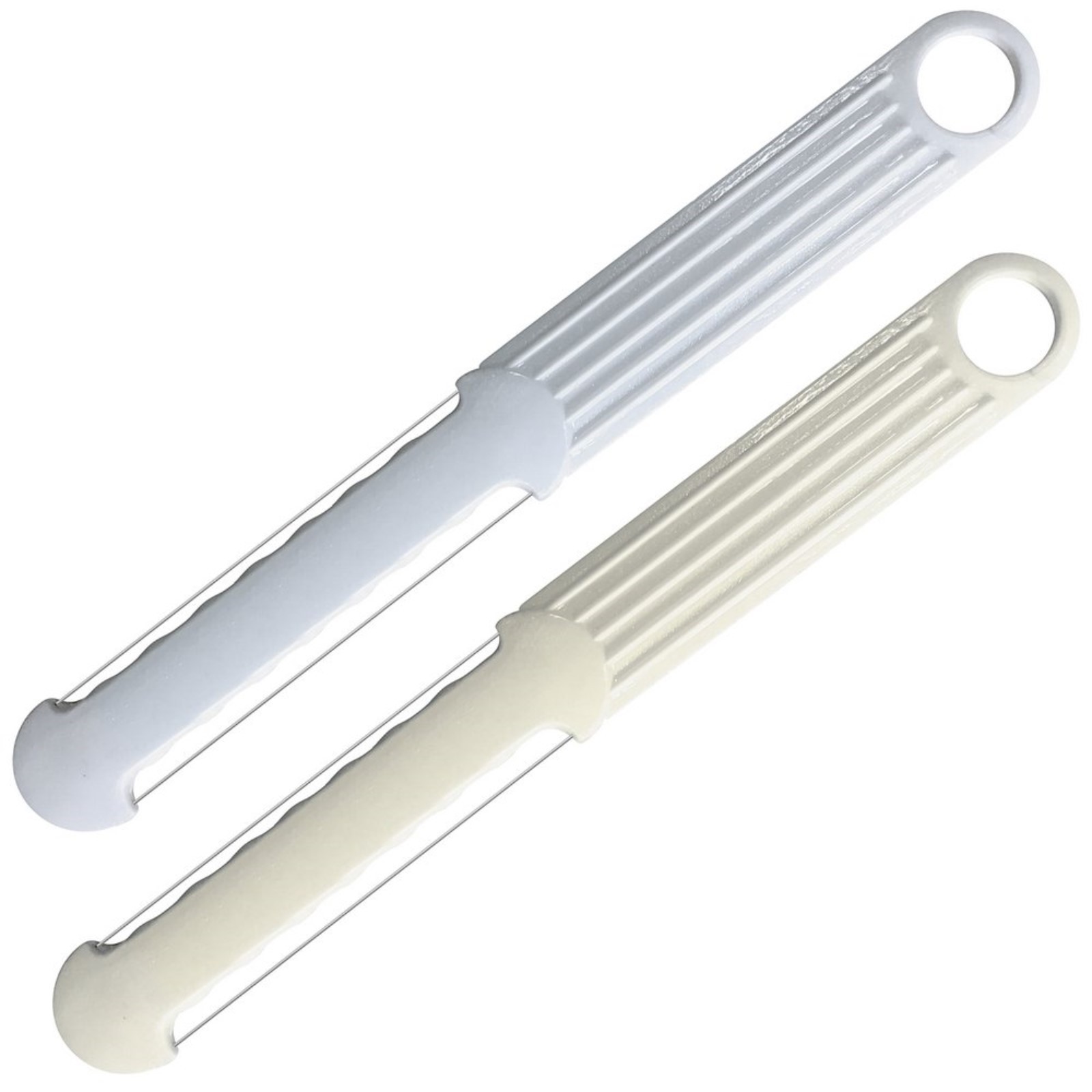 С сырорезкой вы легко нарежете сыр на аккуратные ломтики. Струны с обеих сторон изделия зафиксированы на разной высоте, что позволяет получать ломтики разной толщины.