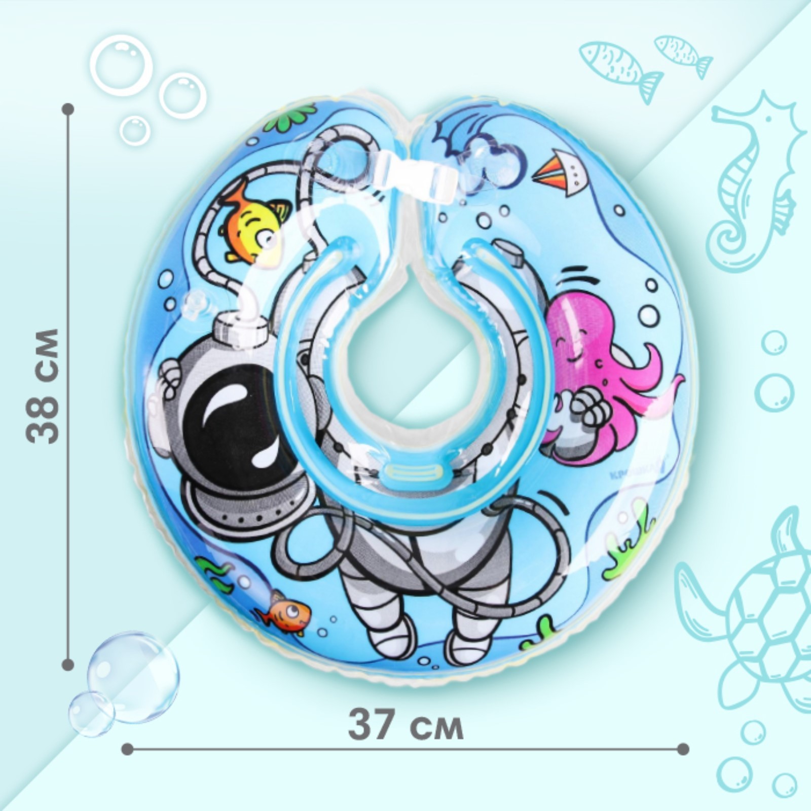 Круг для плавания новорожденных на шею «подводник», надувной, с ручками, цвет голубой, крошка я