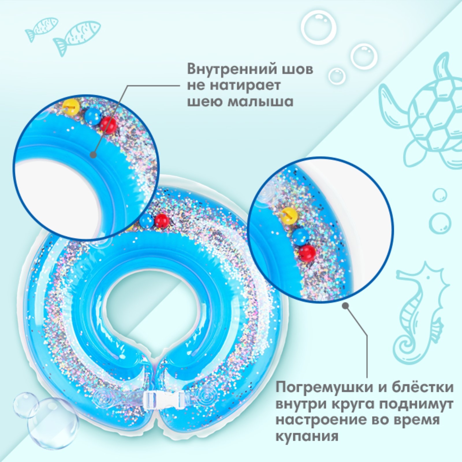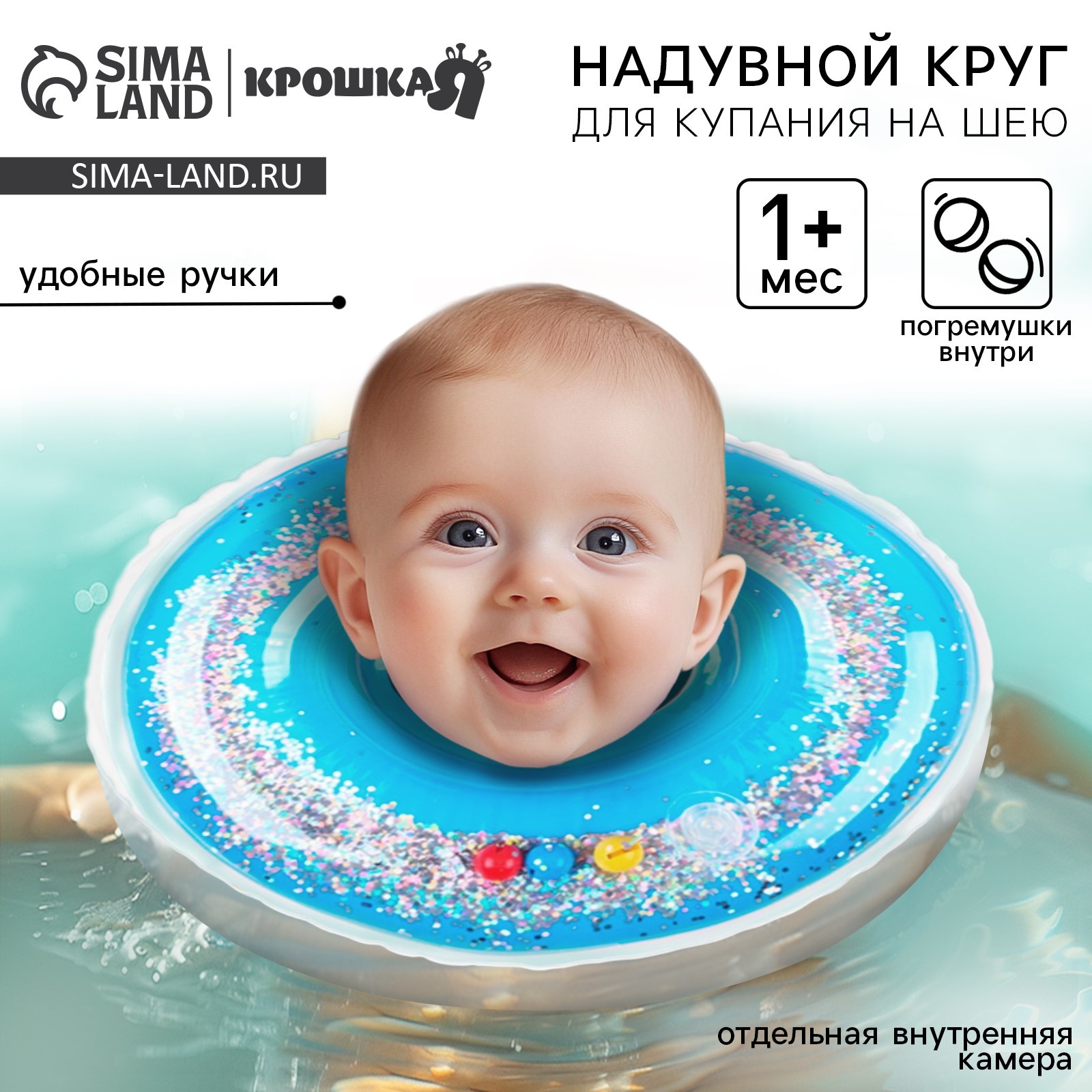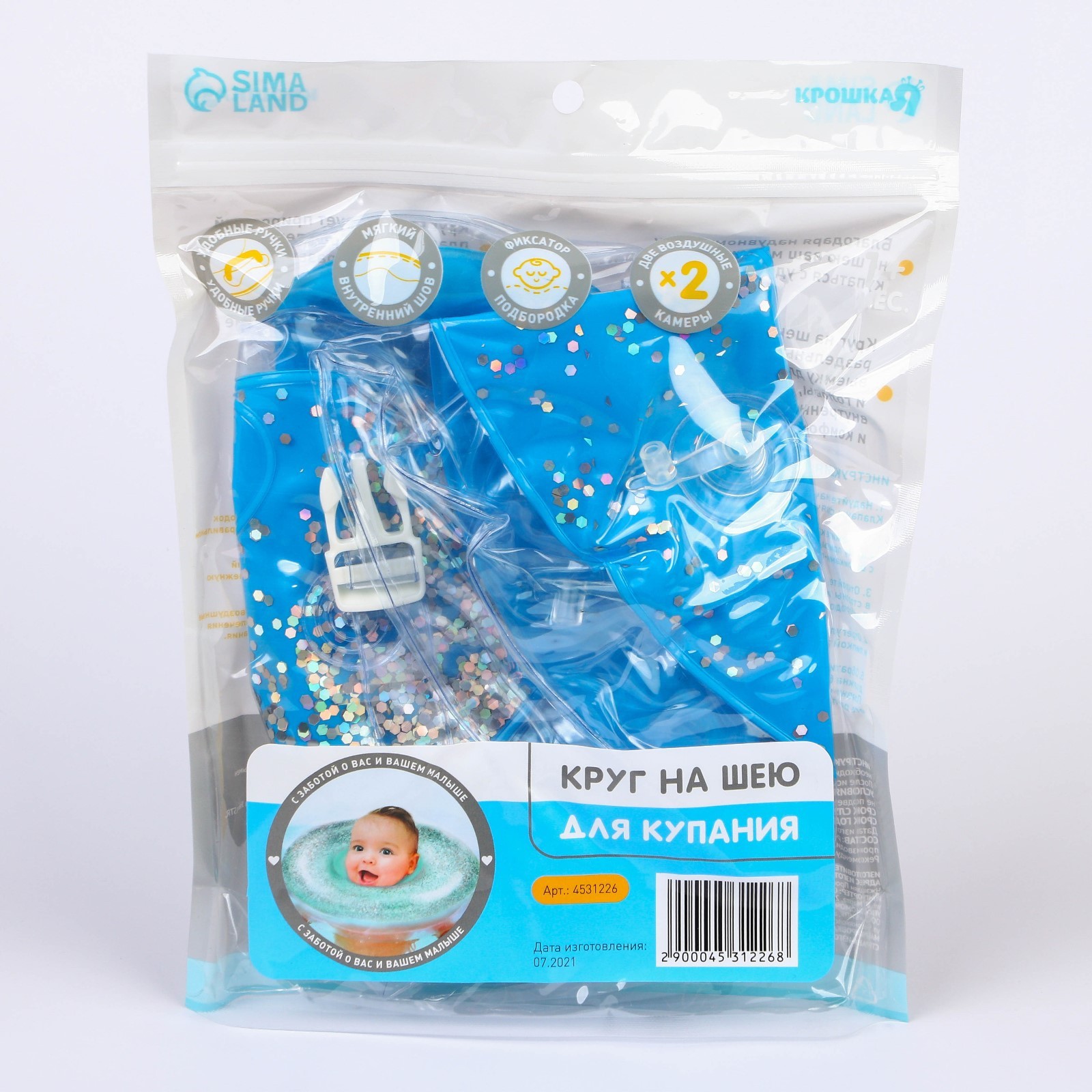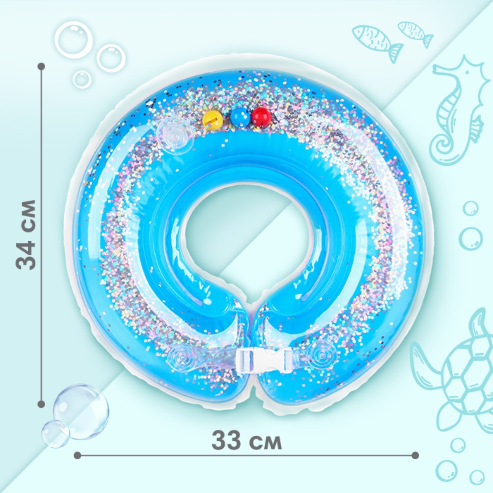 Круг для плавания новорожденных на шею «блестки», надувной, с ручками, цвет голубой, крошка я. Цвет: Голубой Тип круга: На шею Возраст, лет: 0.01 - 3 С ручками: Да Возраст: От 1 месяца Количество камер: 2 Внутренний диаметр, см: 9 Maксимальная нагрузка, кг: 18 Внешний диаметр, см: 34 Материал: Пластик Материал: ПВХ Навес: Нет Особенности: С игрушками Особенности: Окошко Температурное ограничение: Нет Эксклюзивный дизайн: Да  развернуть описание ▼