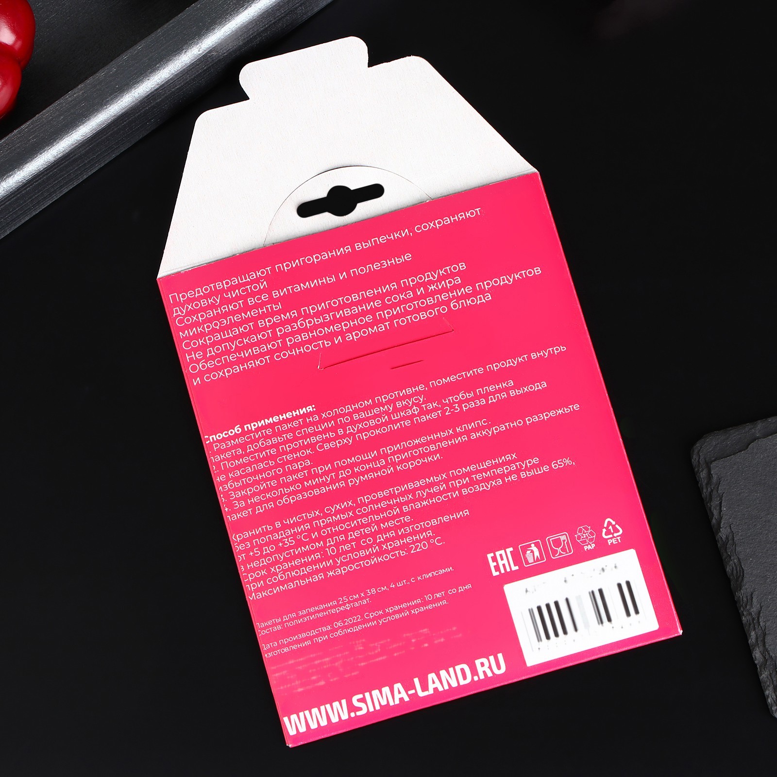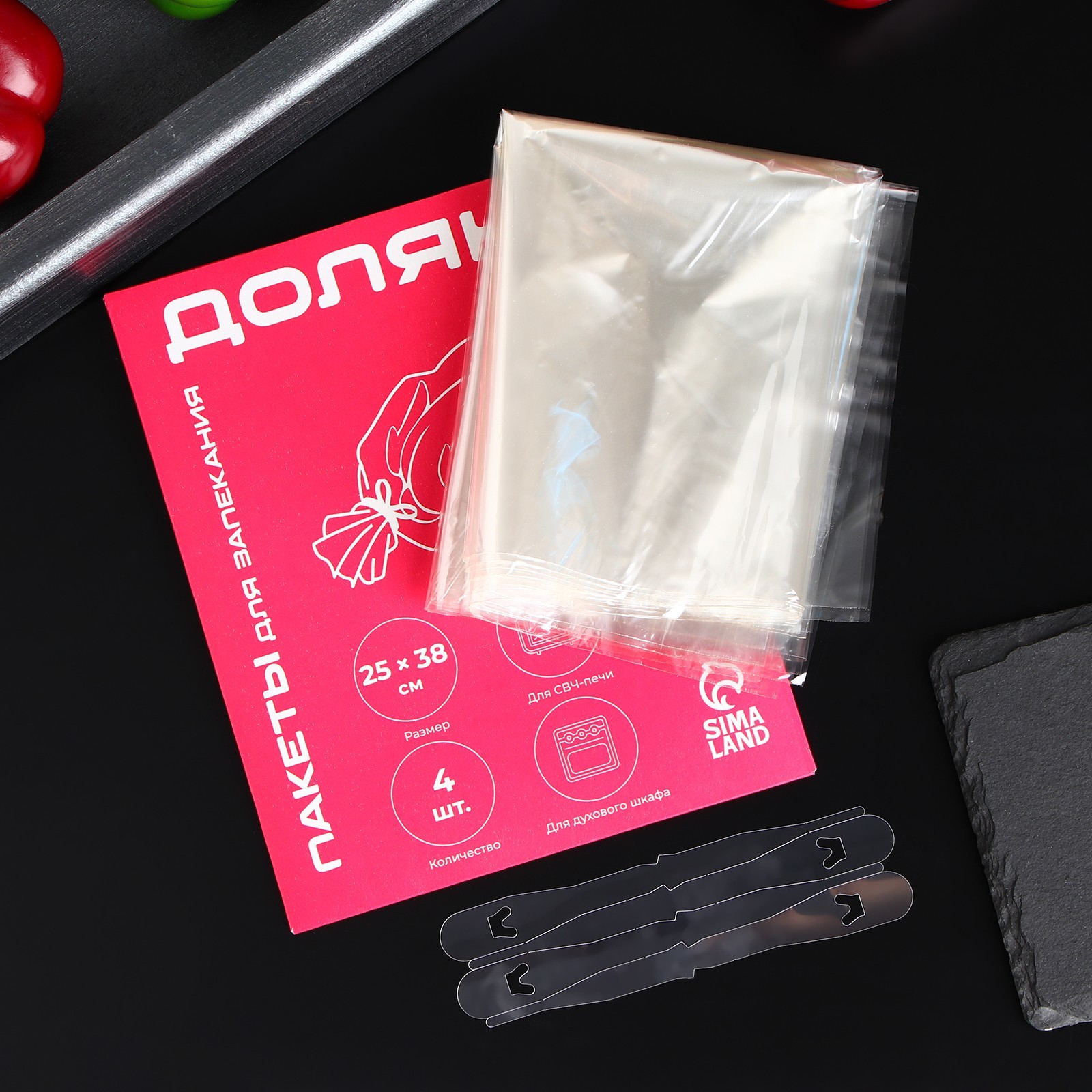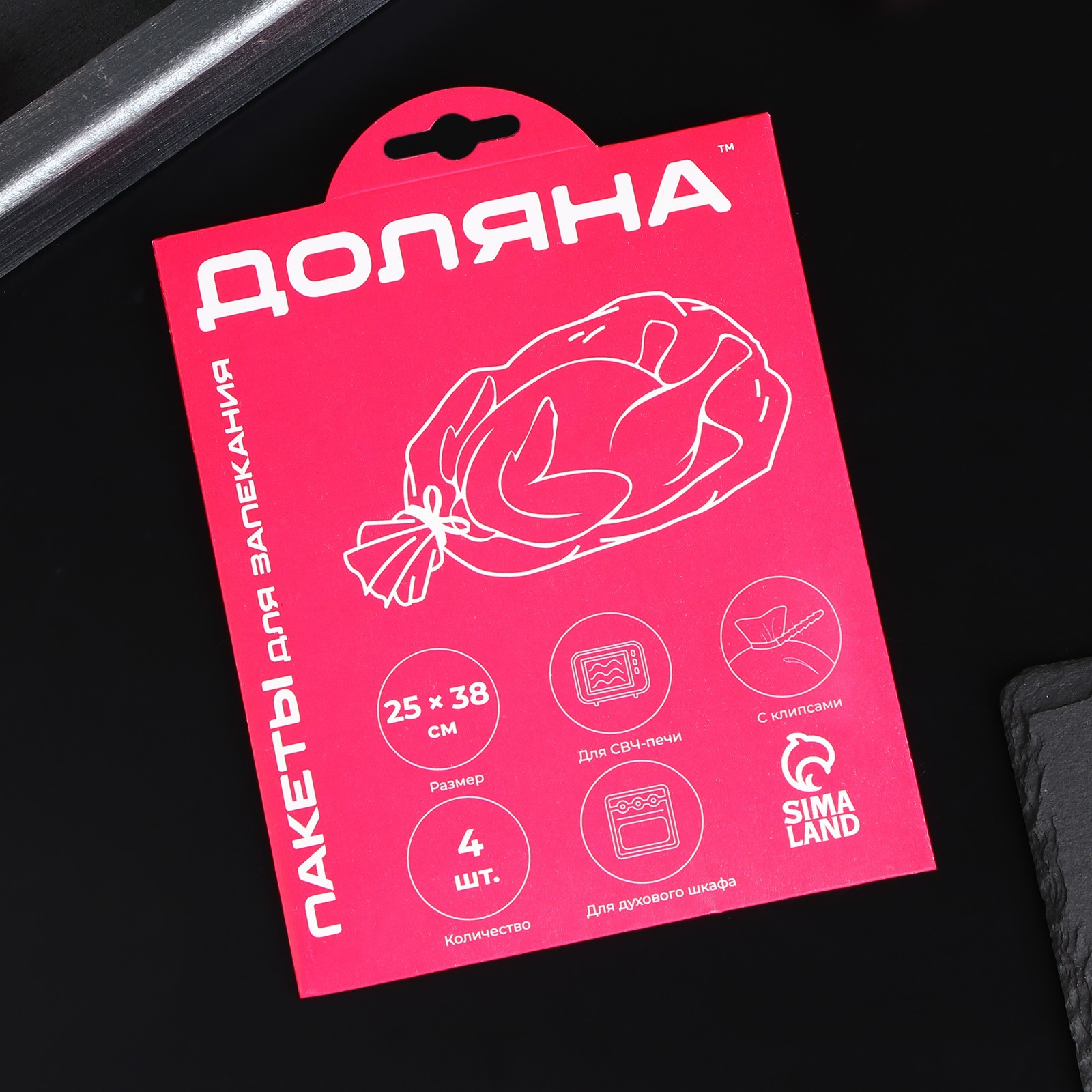 Пакеты для запекания доляна, 25x38 см, 4 шт, с клипсами