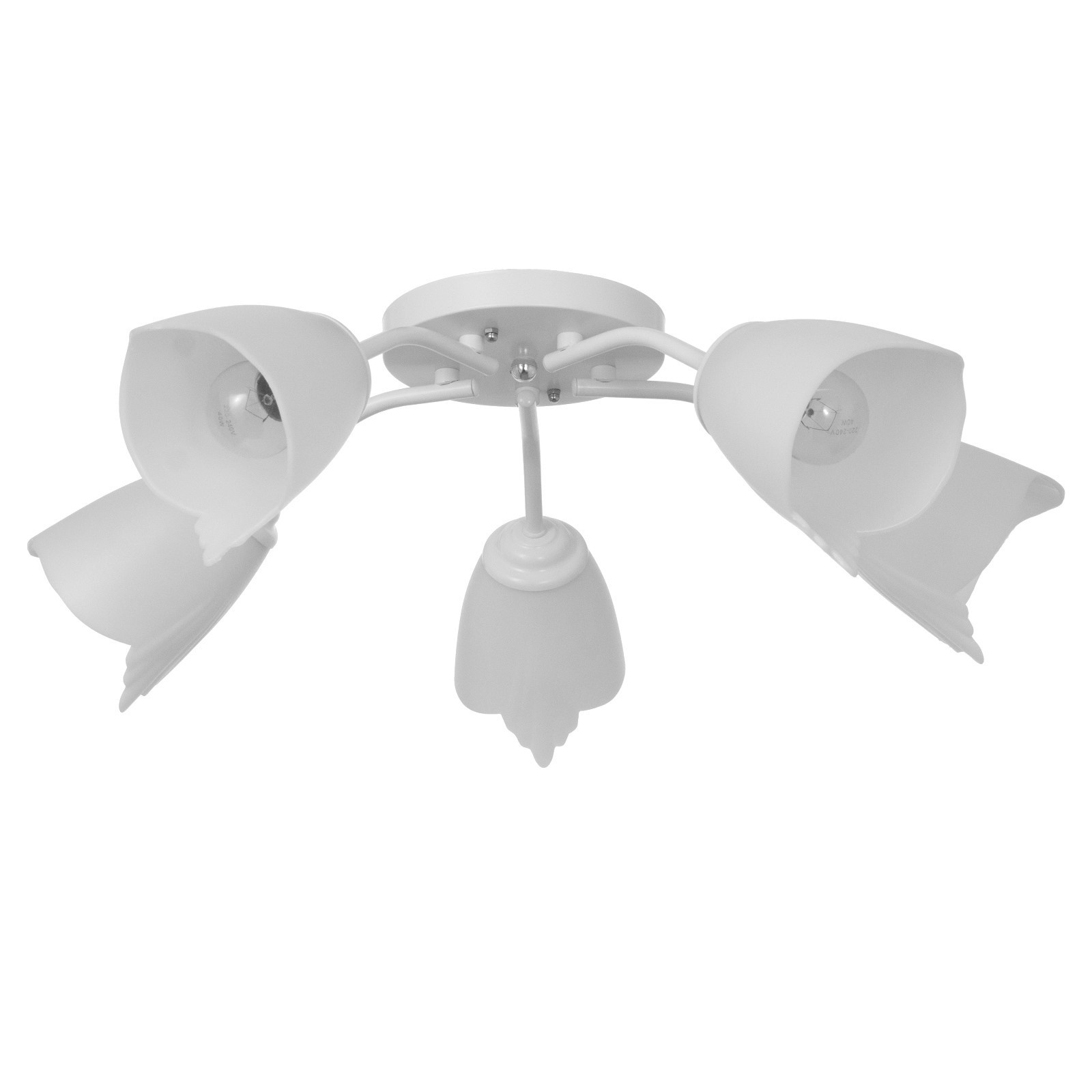 Вид лампы:Энергосберегающая|Количество ламп:5|Стиль:Эконом|Цоколь:E27|Длина, см:27|Ширина, см:19|Высота, см:13|Гарантийный срок, мес.:6|Минимальная высота от потолка, см:13|Максимальная высота от потолка, см:13|Мощность на цоколь, Вт:15|Площадь освещения, м :18|Степень защиты:IP20|Назначение по помещениям:Кафе, рестораны|Назначение по помещениям:Спальня|Назначение по помещениям:Кухня|Назначение по помещениям:Гостиная|Назначение по помещениям:Детская|Назначение по помещениям:Прихожая|Материал основания:Металл|Цвет основания:Белый|Тип рассеивателя:Плафон|Тип подвеса:Без подвеса (потолочный)|Оттенок рассеивателя:Светлые тона|Материал рассеивателя:Пластик|Управление светильником:Без пульта|Подходит для натяжных потолков:Да (при использования светодиодных ламп)|Плоская:Нет|Тип крепления:На планку|Форма рассеивателя:Конусный|Направление рассеивателя:В стороны|Цвет рассеивателя:Белый|Стиль:Детский|Стиль:Минимализм|Тип источника освещения:Лампа не в комплекте|Страна:Россия