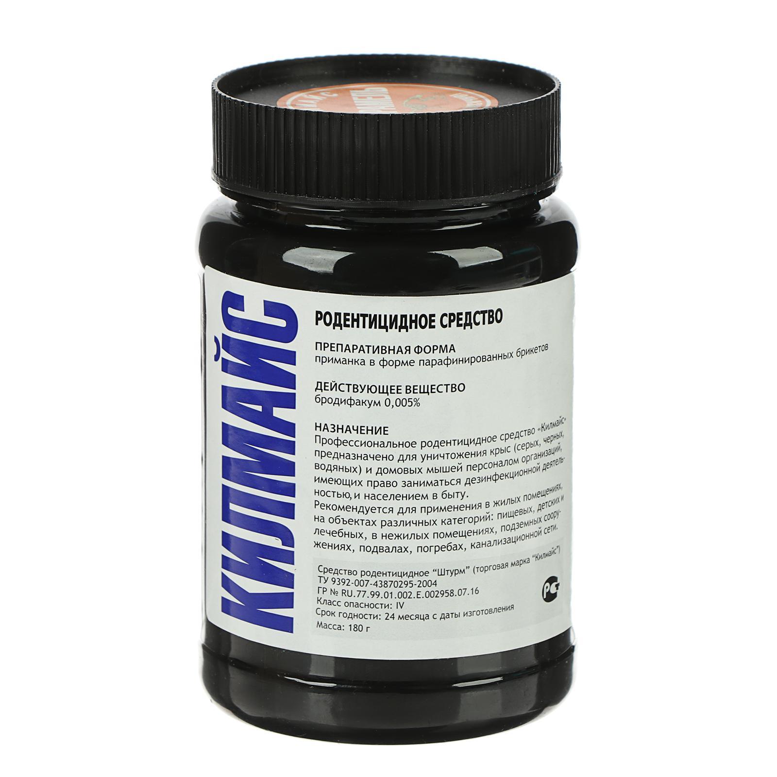 Средство от грызунов килмайс парафинированные брикеты, банка 180 г, карамель