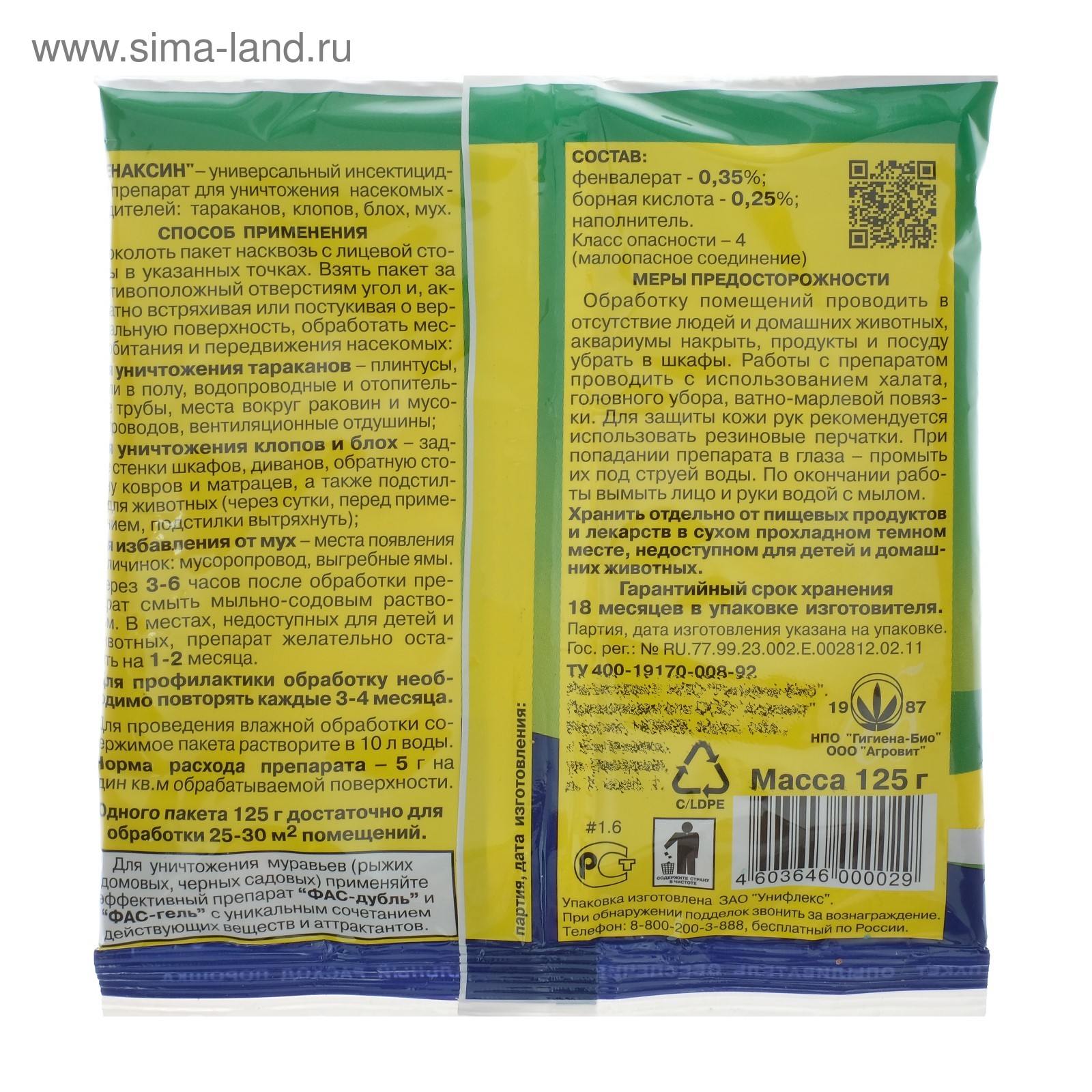 Средство от насекомых "фенаксин", 125 г