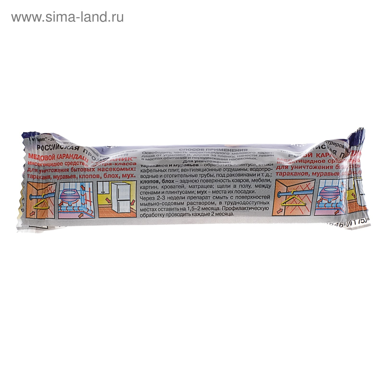 Мелок от тараканов и ползающих насекомых "титаник", 20 г. Инсектицидное средство Титаник представляет собой меловой карандаш произвольного сечения белого, желтого, голубого, фиолетового цвета. Проверенное временем, эффективное (остаточная активность до 2 месяцев), удобное средство подходит для уничтожения бытовых насекомых. Назначение: средство предназначено для уничтожения тараканов, муравьев, клопов, блох и обработки мест посадки мух на объектах различных категорий как персоналом организаций, имеющих право заниматься дезинфекционной деятельностью, так и населению в быту. Состав: циперметрин – 0, 1%, фипронил – 0, 04%, мел, каолин, гипс. Инструкция: Освободить часть мелового карандаша от упаковки и, держа за пленку, нанести в местах обитания и передвижения насекомых. Вид средства: Мелок Температурное ограничение: Нет Тип средства: Инсектицид  развернуть описание ▼