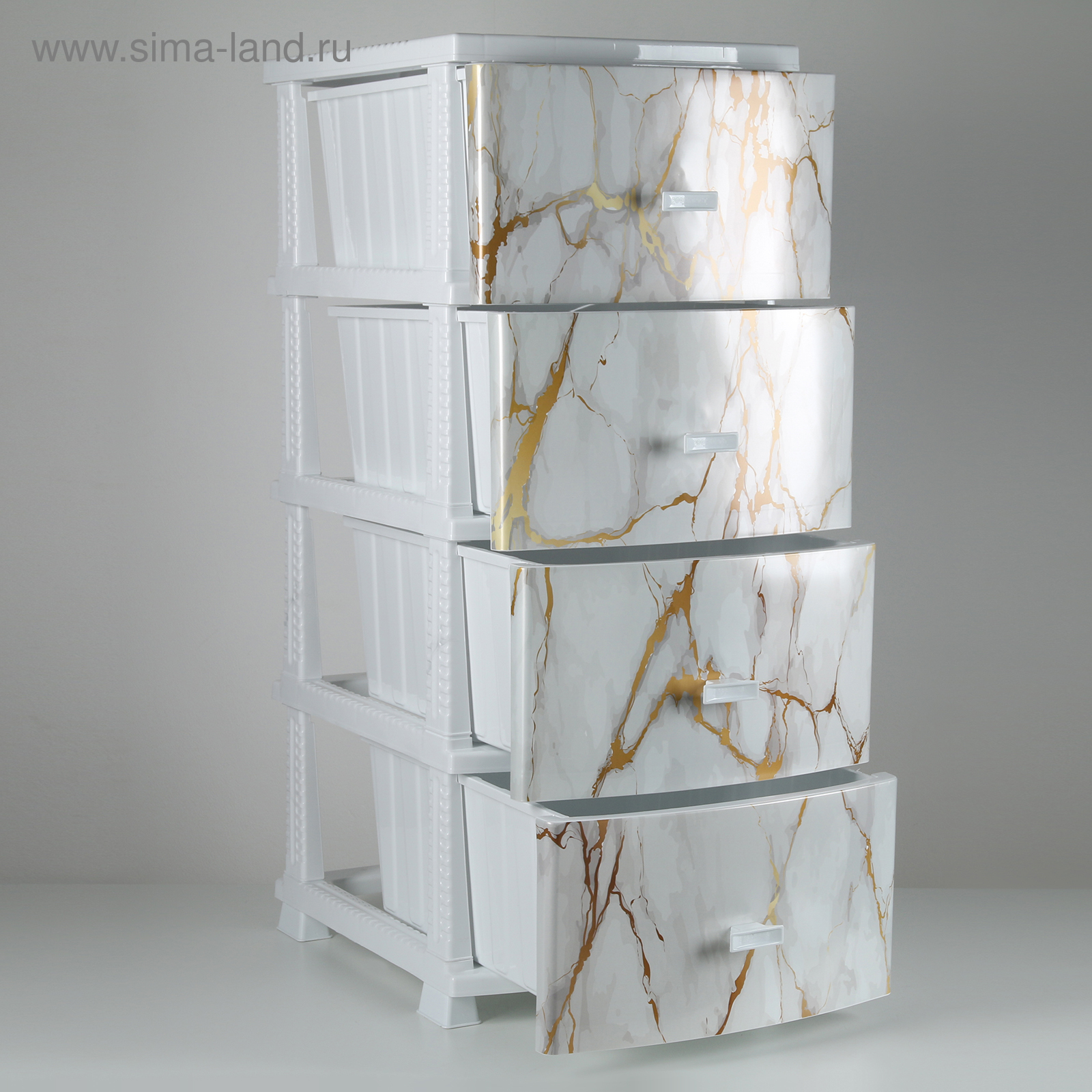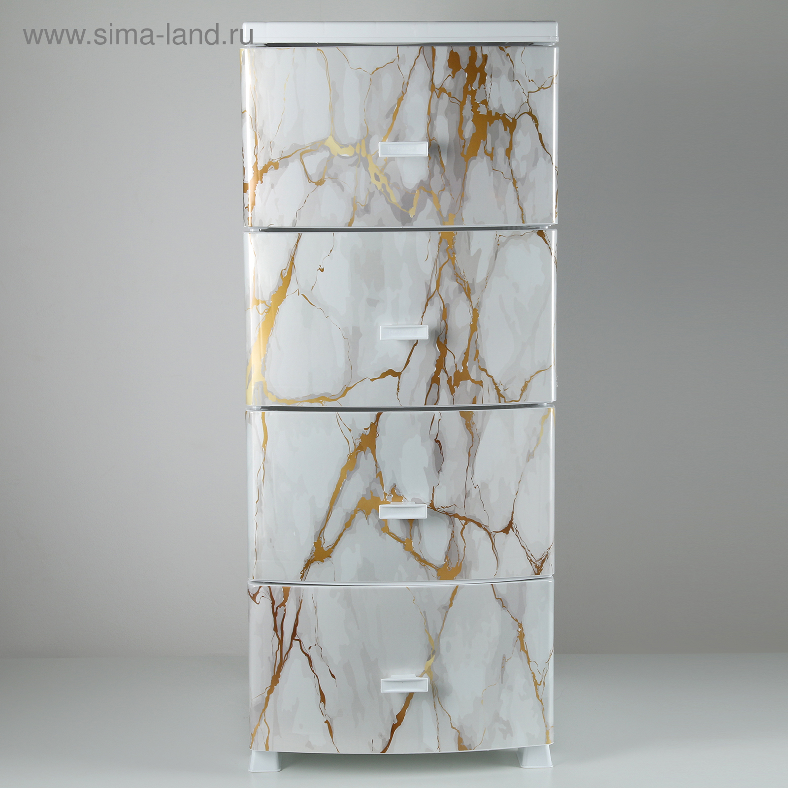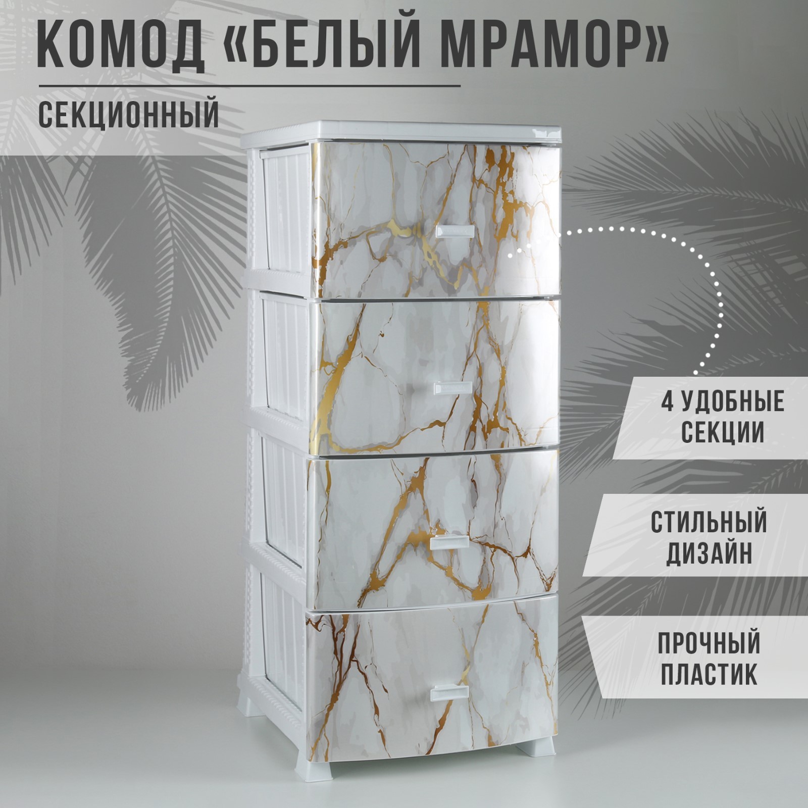Комод 4-х секционный «декор. белый мрамор», цвет белый
