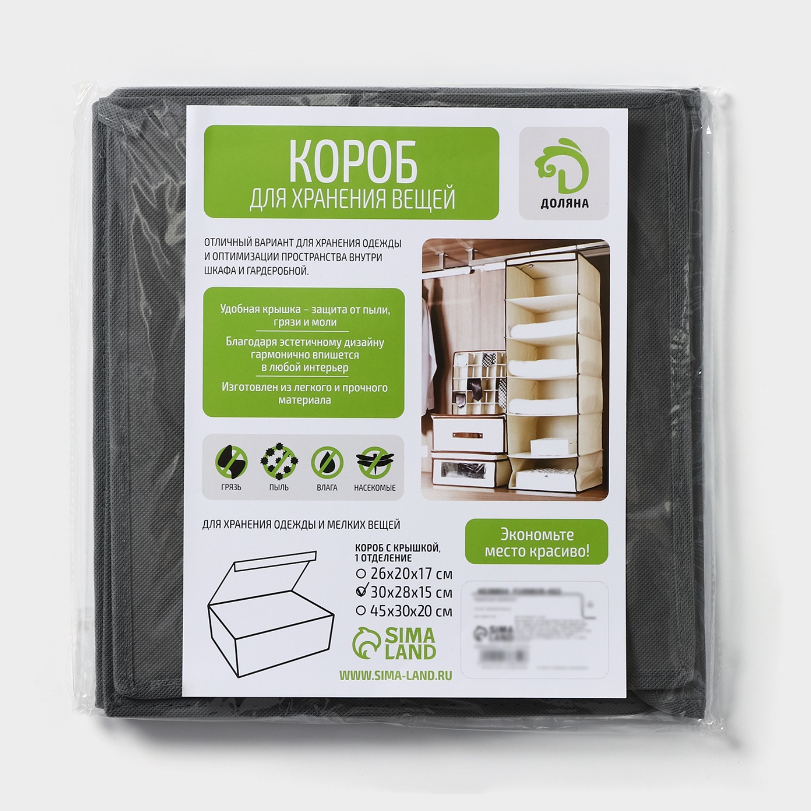 Короб стеллажный для хранения с крышкой доляна «нея», 30x28x15 см, цвет серый