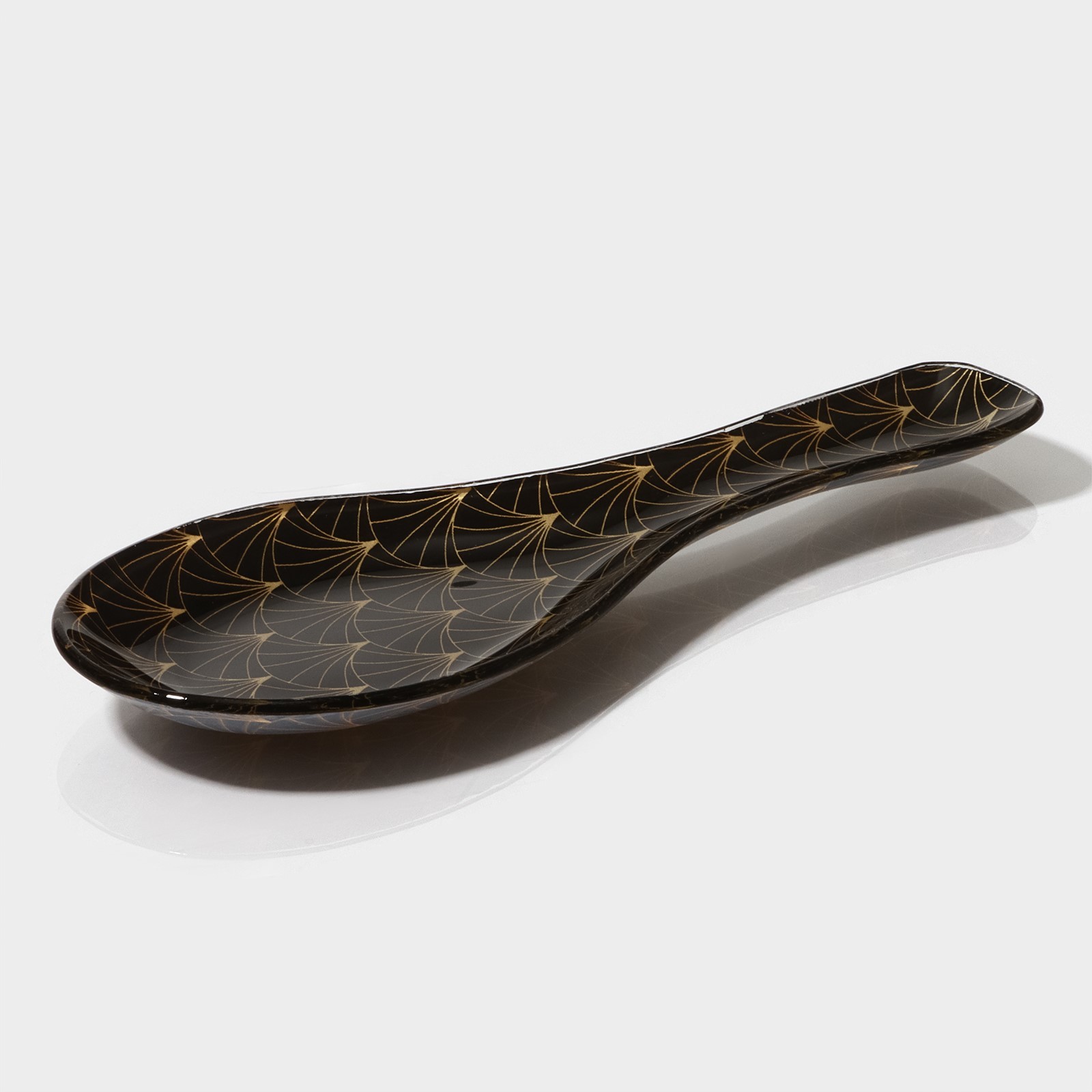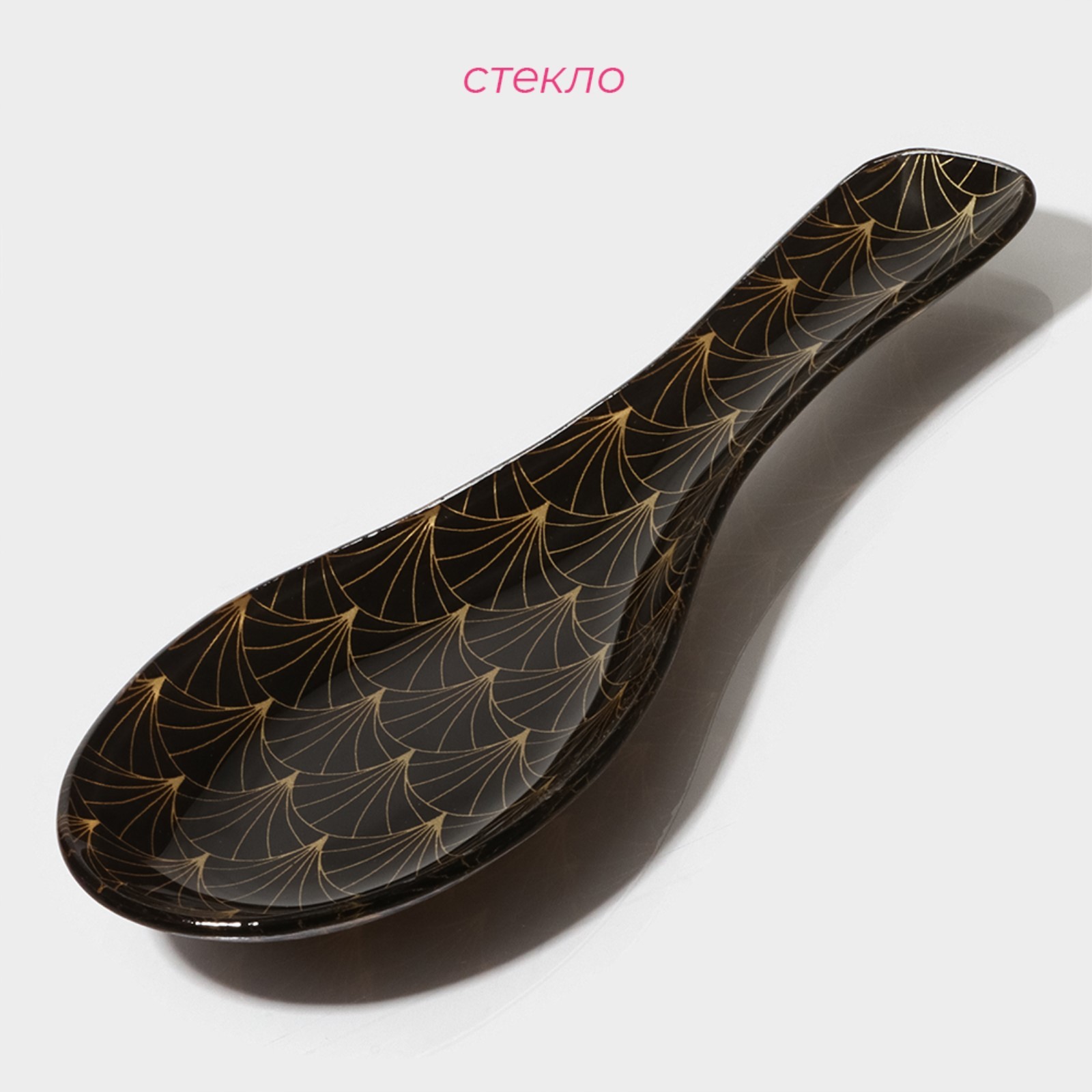 Подставка стеклянная под ложку доляна «золотое перо», 23,5x8,3 см, цвет чёрный